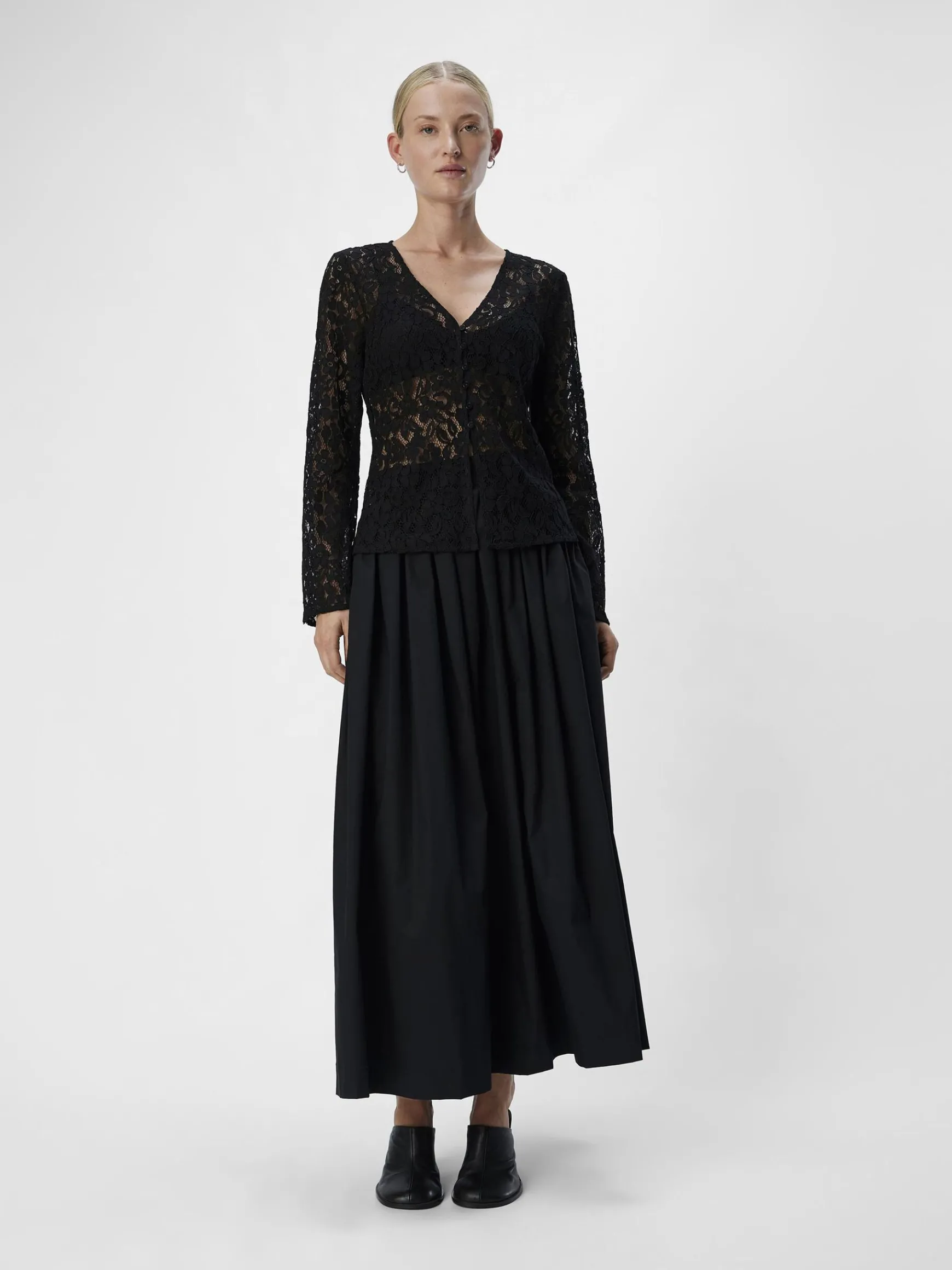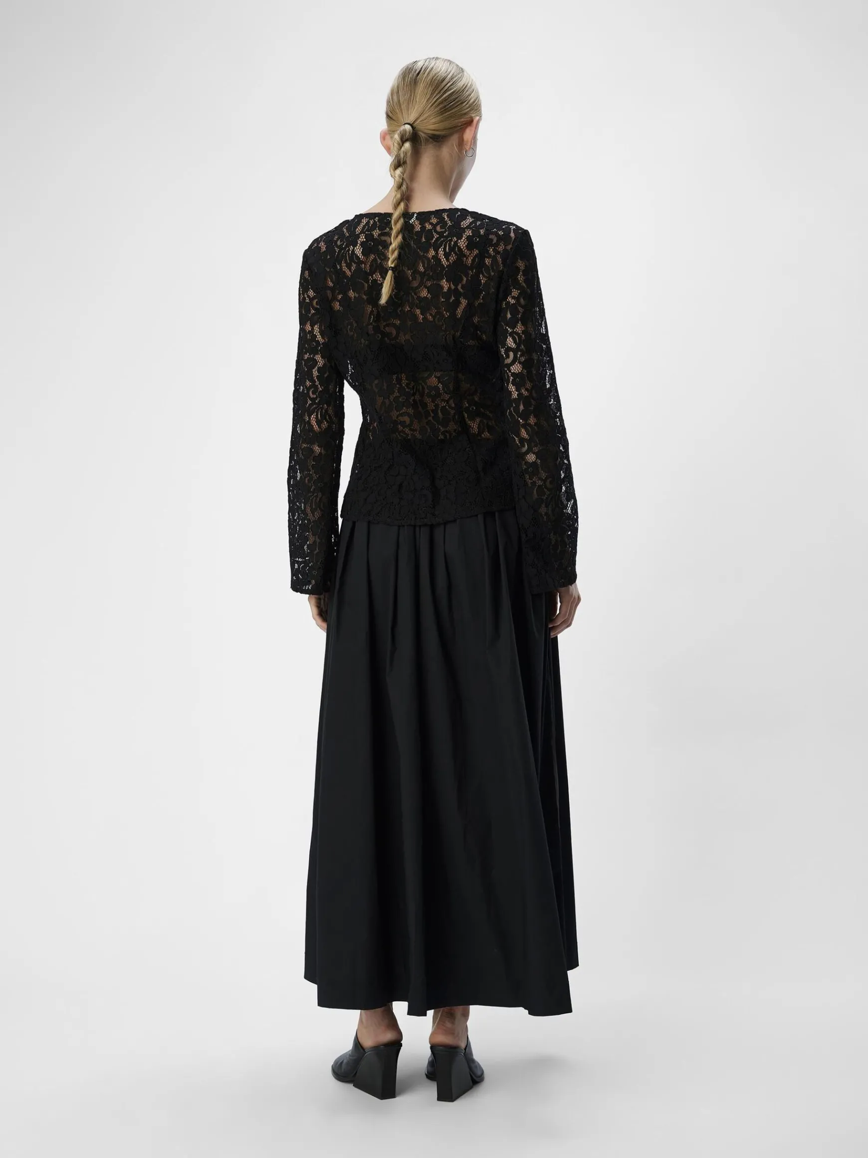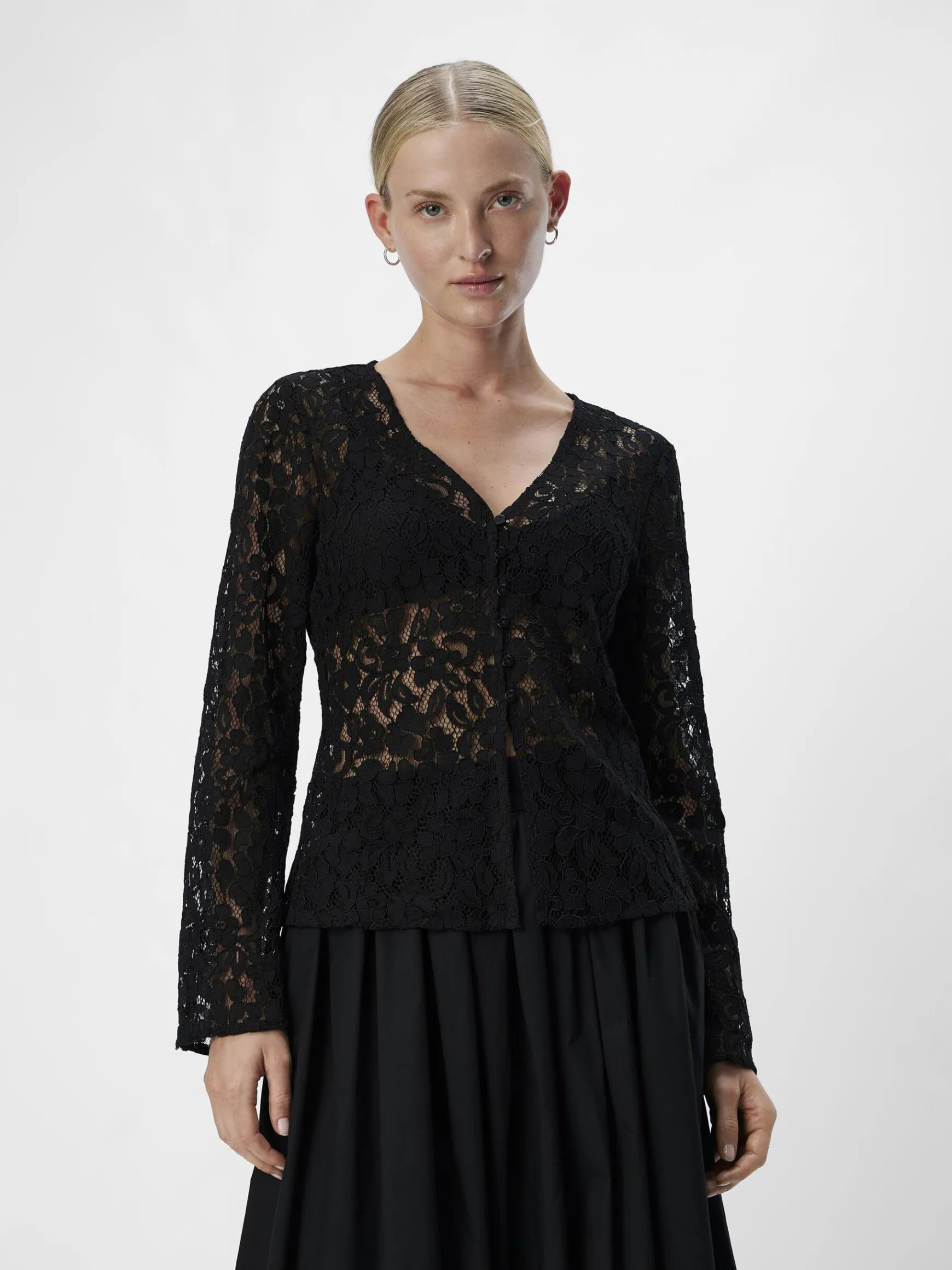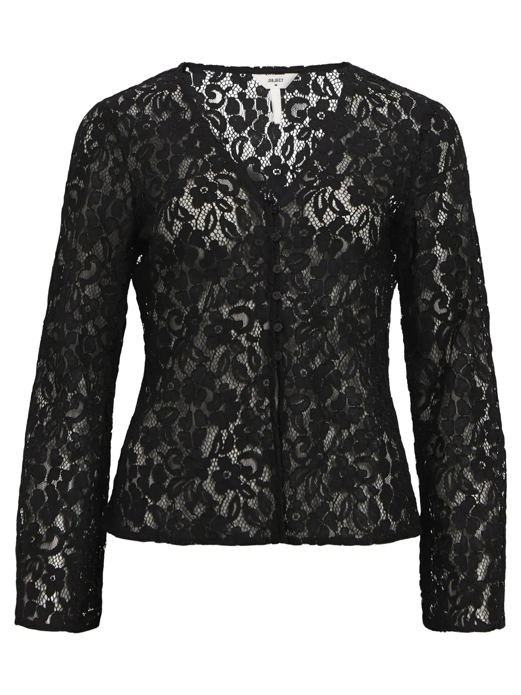 – Langærmet blondetop – V-hals- Blomsterdesign- Slim fitStylenavn: OBJRITTA