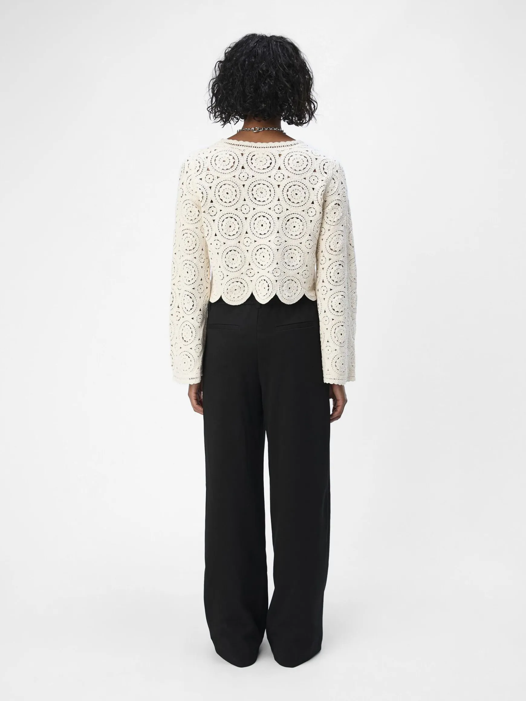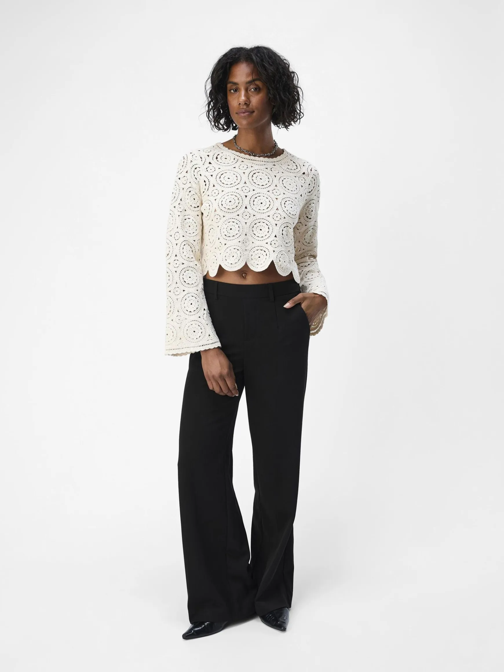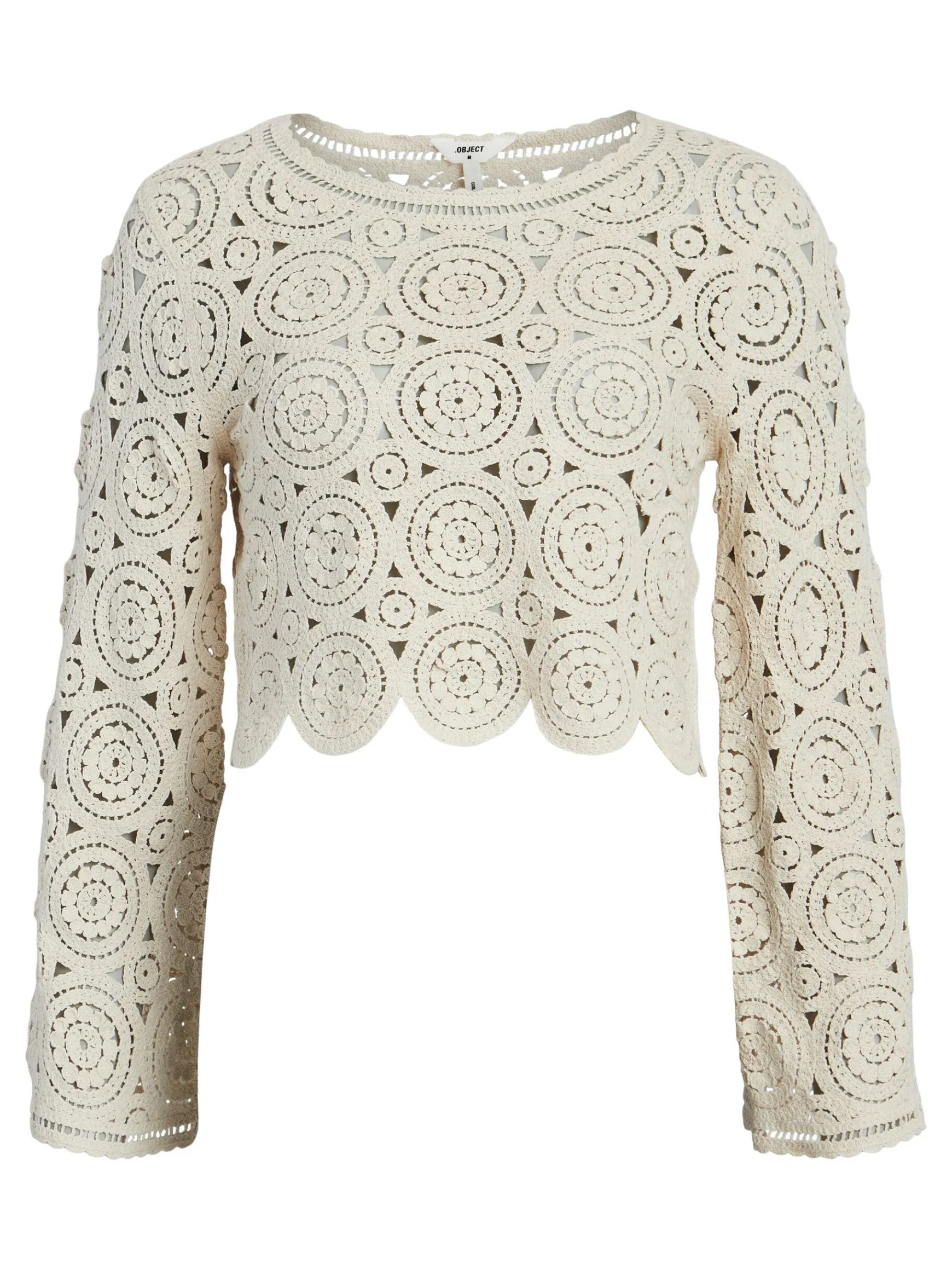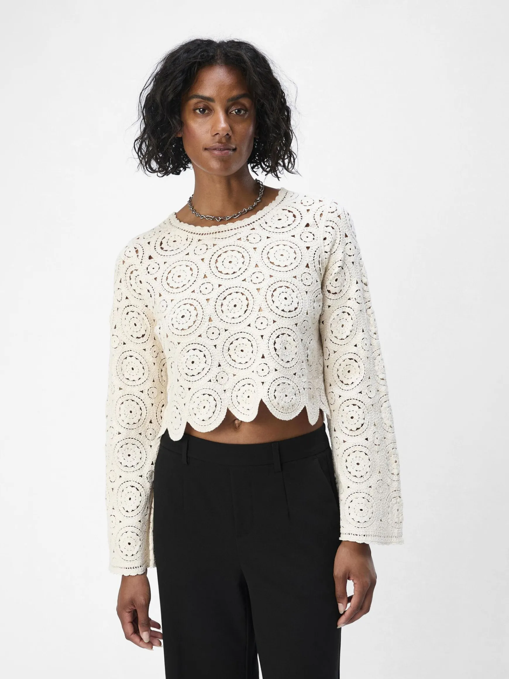 – Broderet trøje med cirkulære detaljer- Uforet åbent vævet design- BølgekantLange ærmer med let sænkede skuldre- Cropped fit