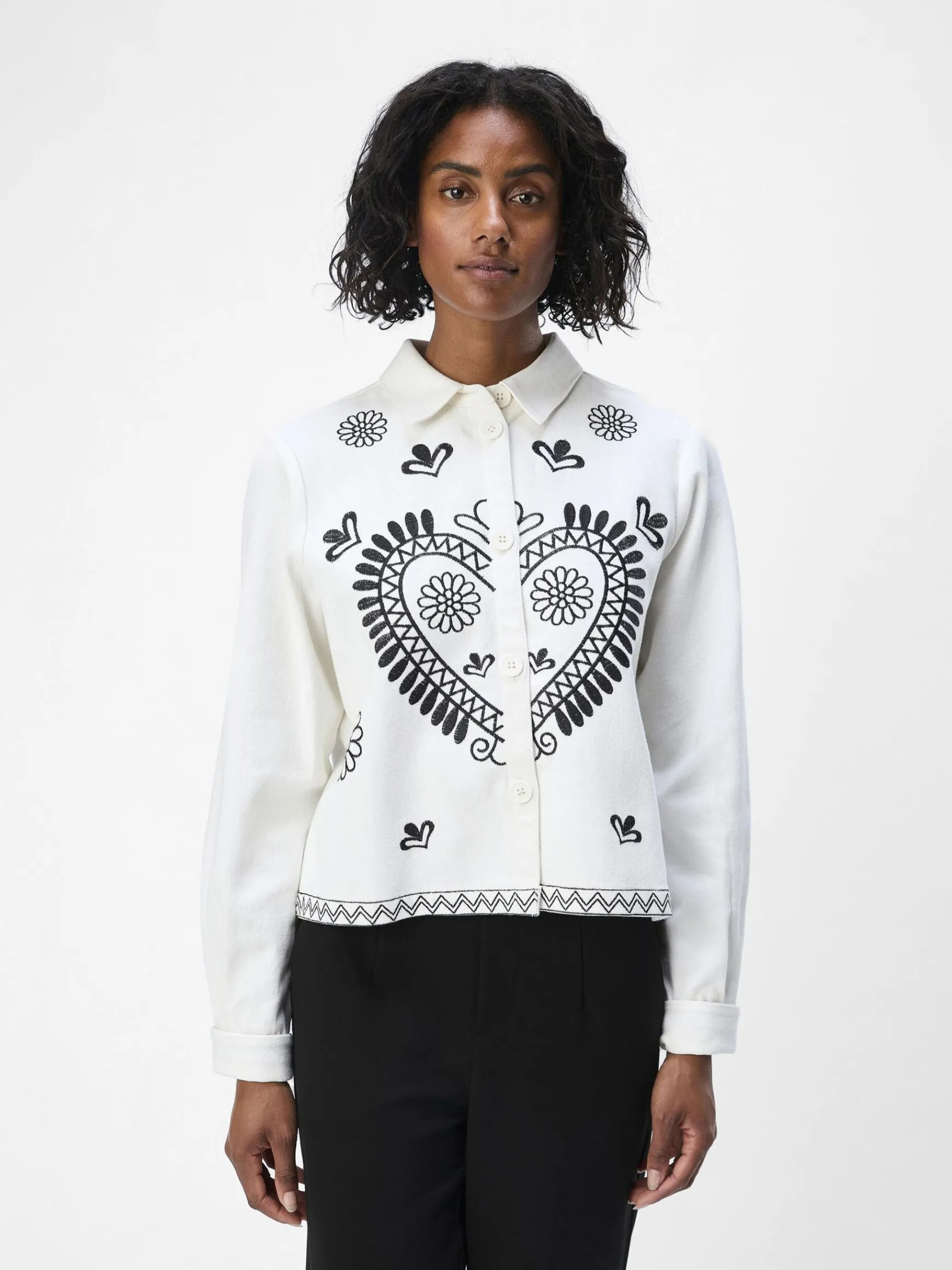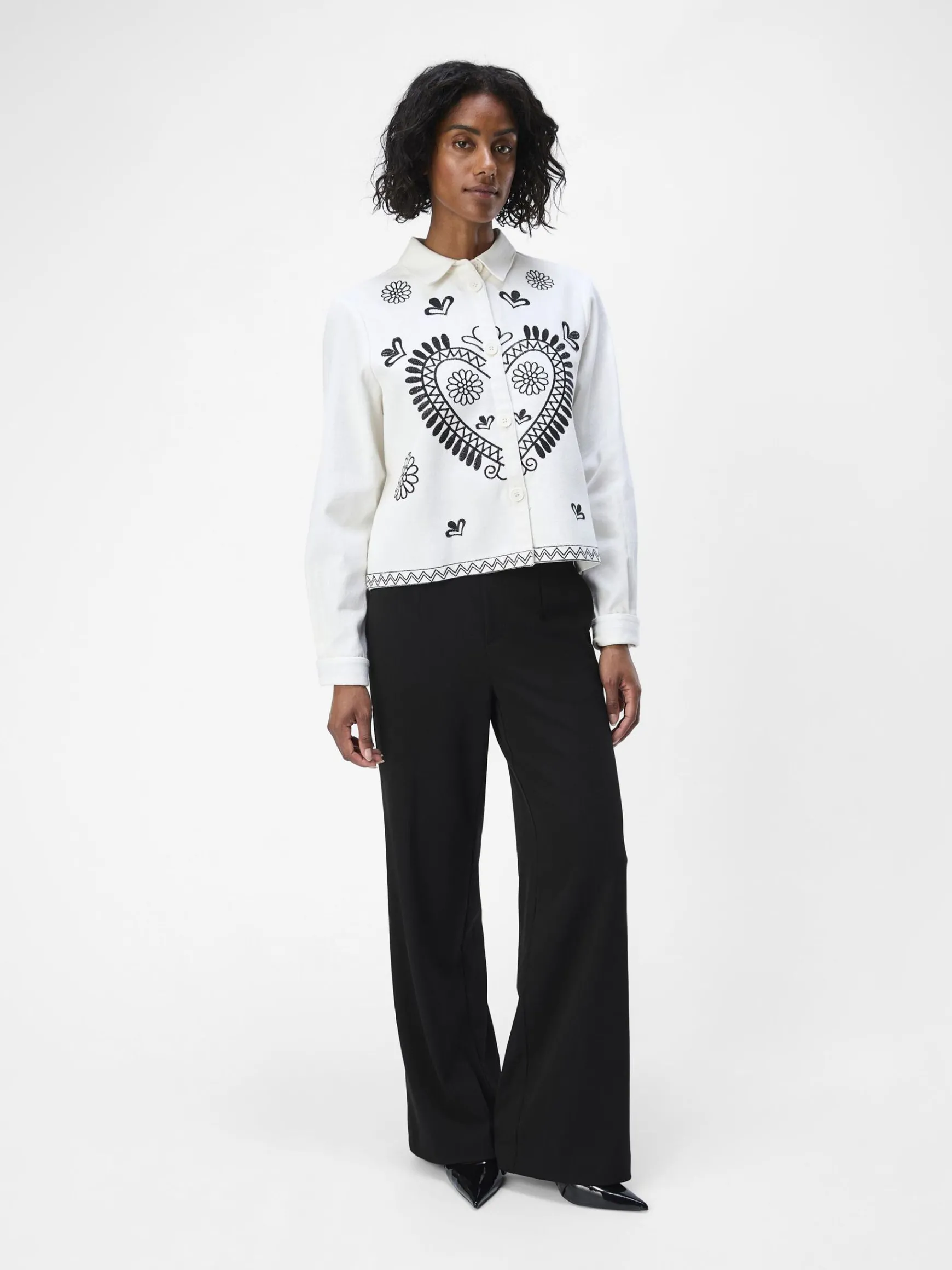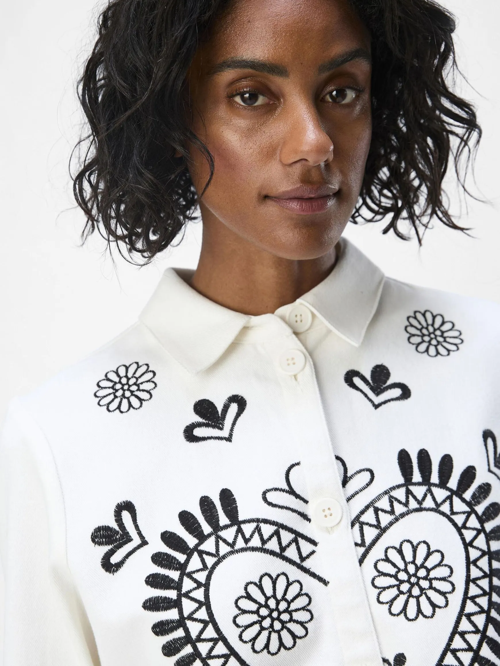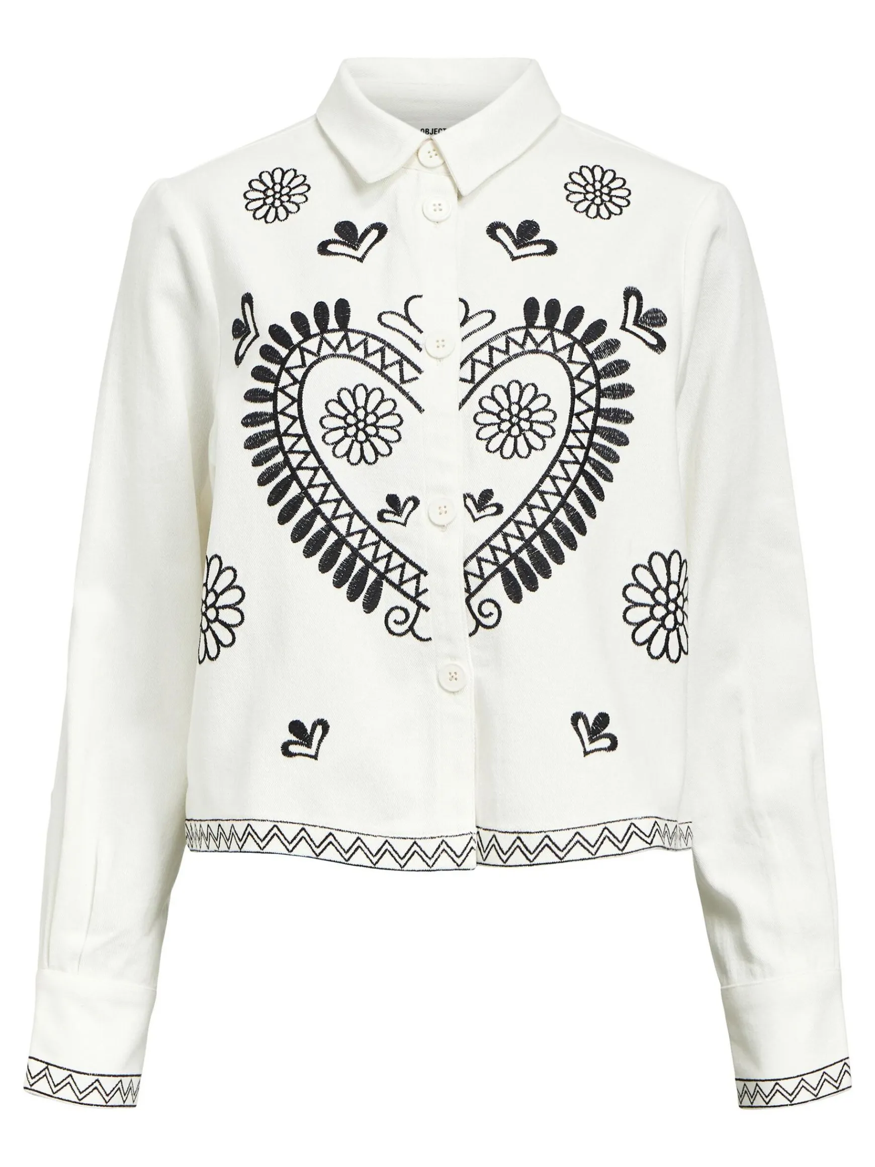 – Broderet langærmet skjorte- Almindelig krave- Knapper foran- Almindelig pasform- Modellen er iført størrelse 36