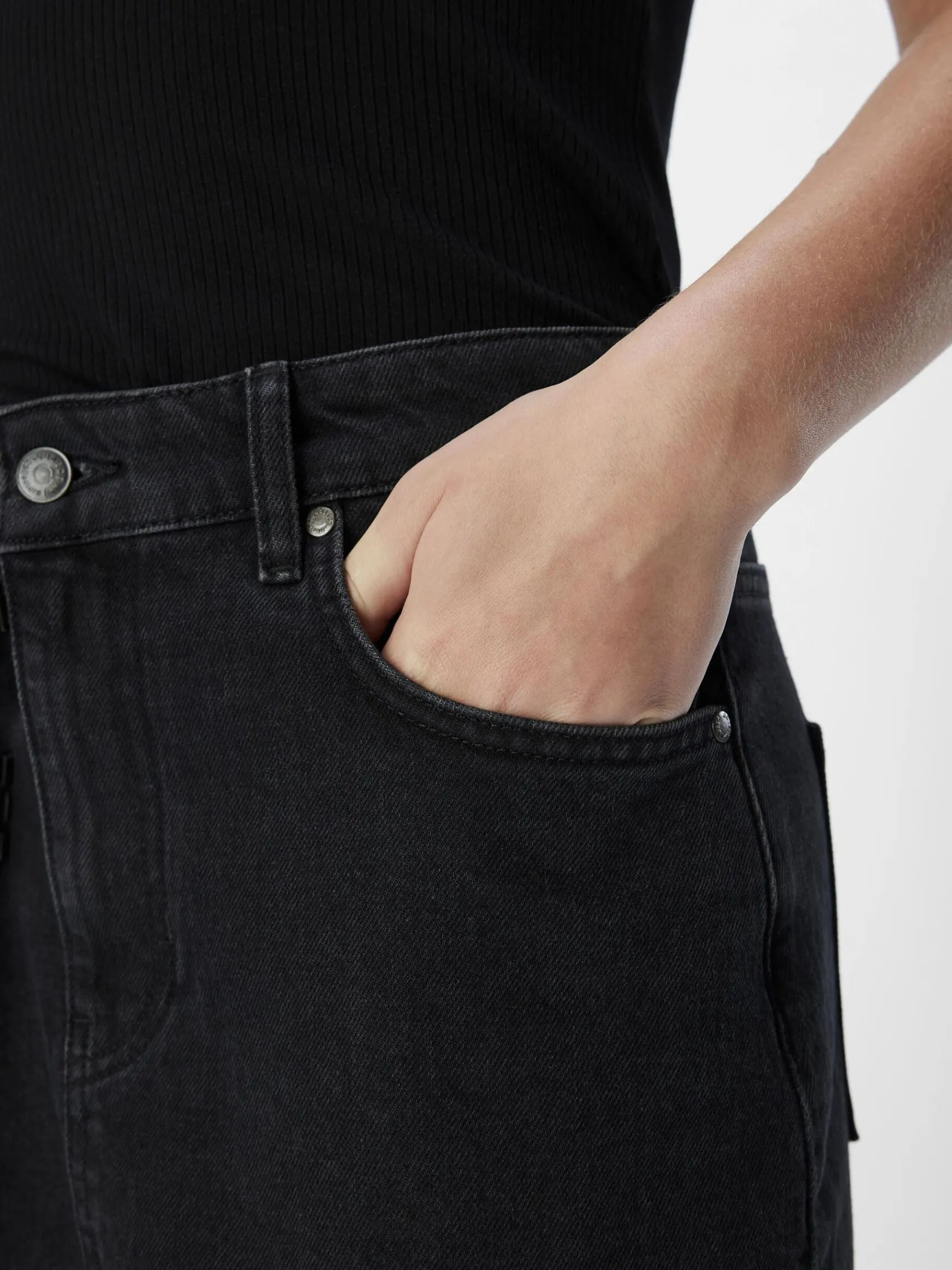 -Denim-midinederdel med mellemhøj talje-Design med 5 lommer-Slidsdetalje foran-Lynlåsgylp med knaplukning-Bæltestropper-Modellen er iført størrelse 36-Lavet med mere ansvarlige materialer