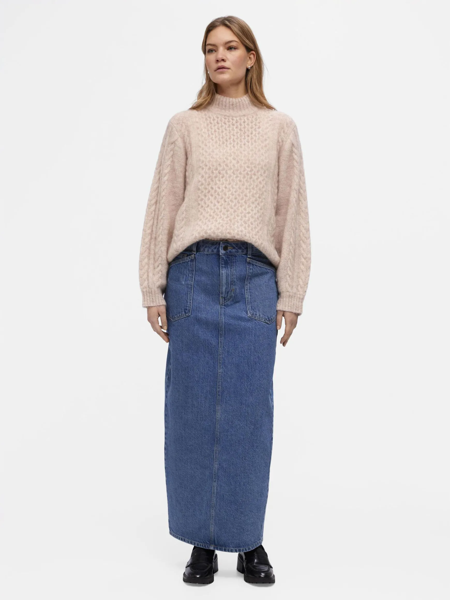 – Lang blyantnederdel i denim- Højtaljet med bæltestropper- Design med 5 lommer- Lynlåsgylp med nitteknaplukning- Jac…