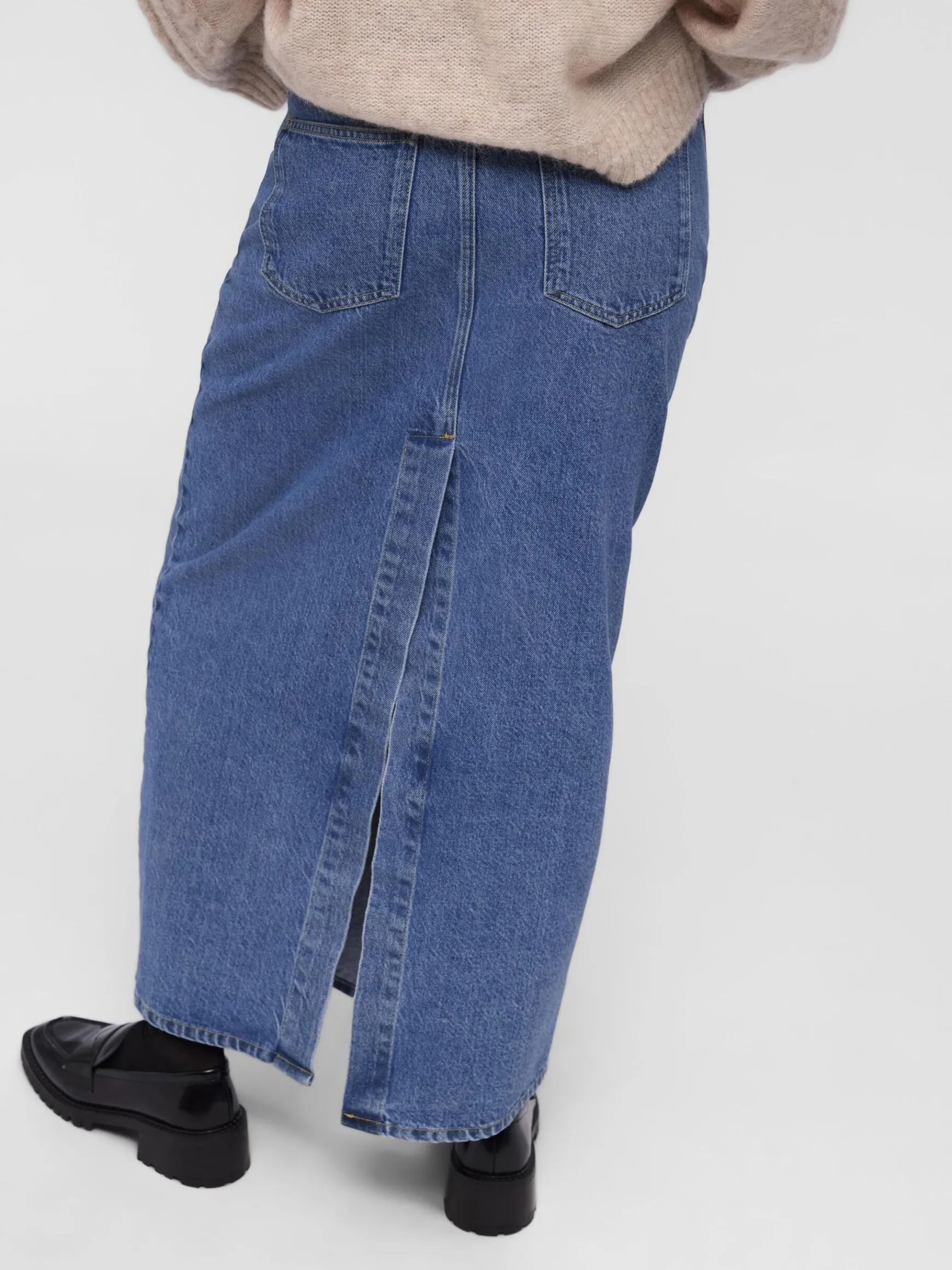 – Lang blyantnederdel i denim- Højtaljet med bæltestropper- Design med 5 lommer- Lynlåsgylp med nitteknaplukning- Jacron-patch- Slim fit