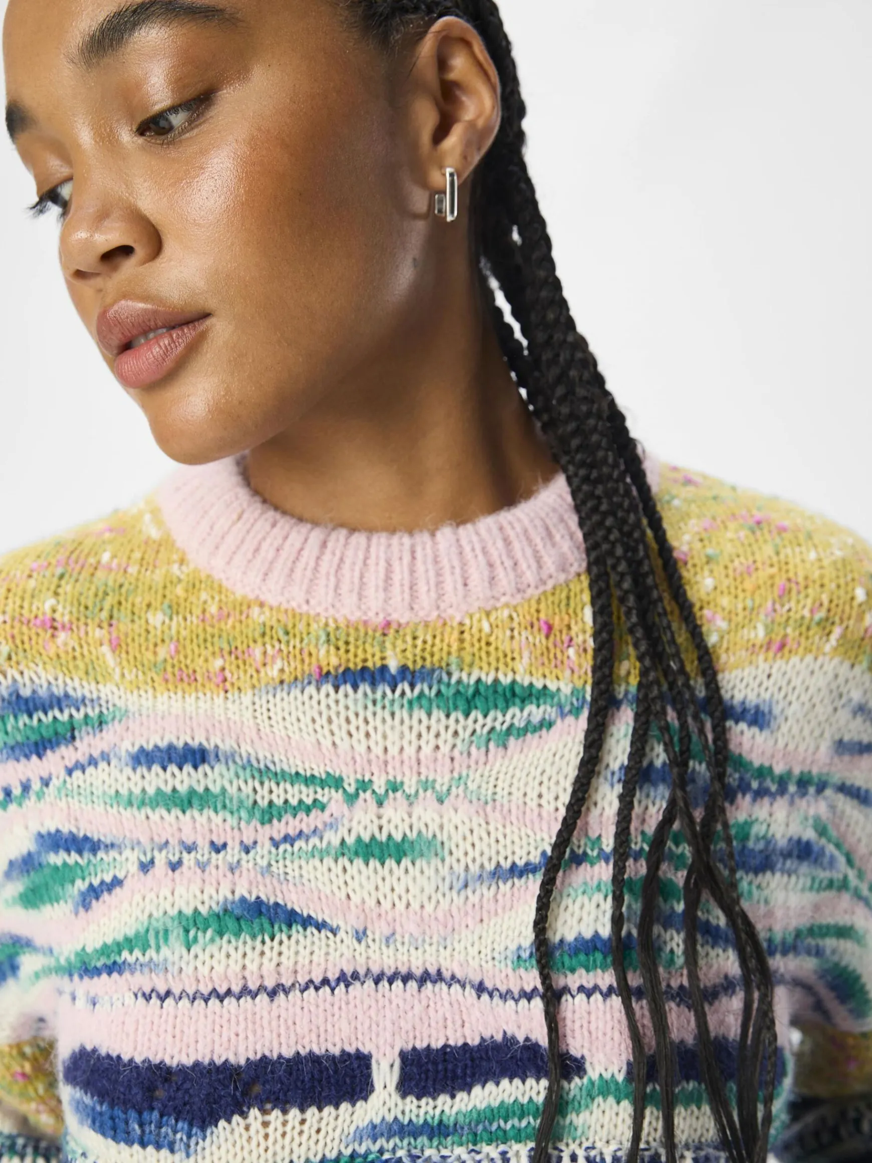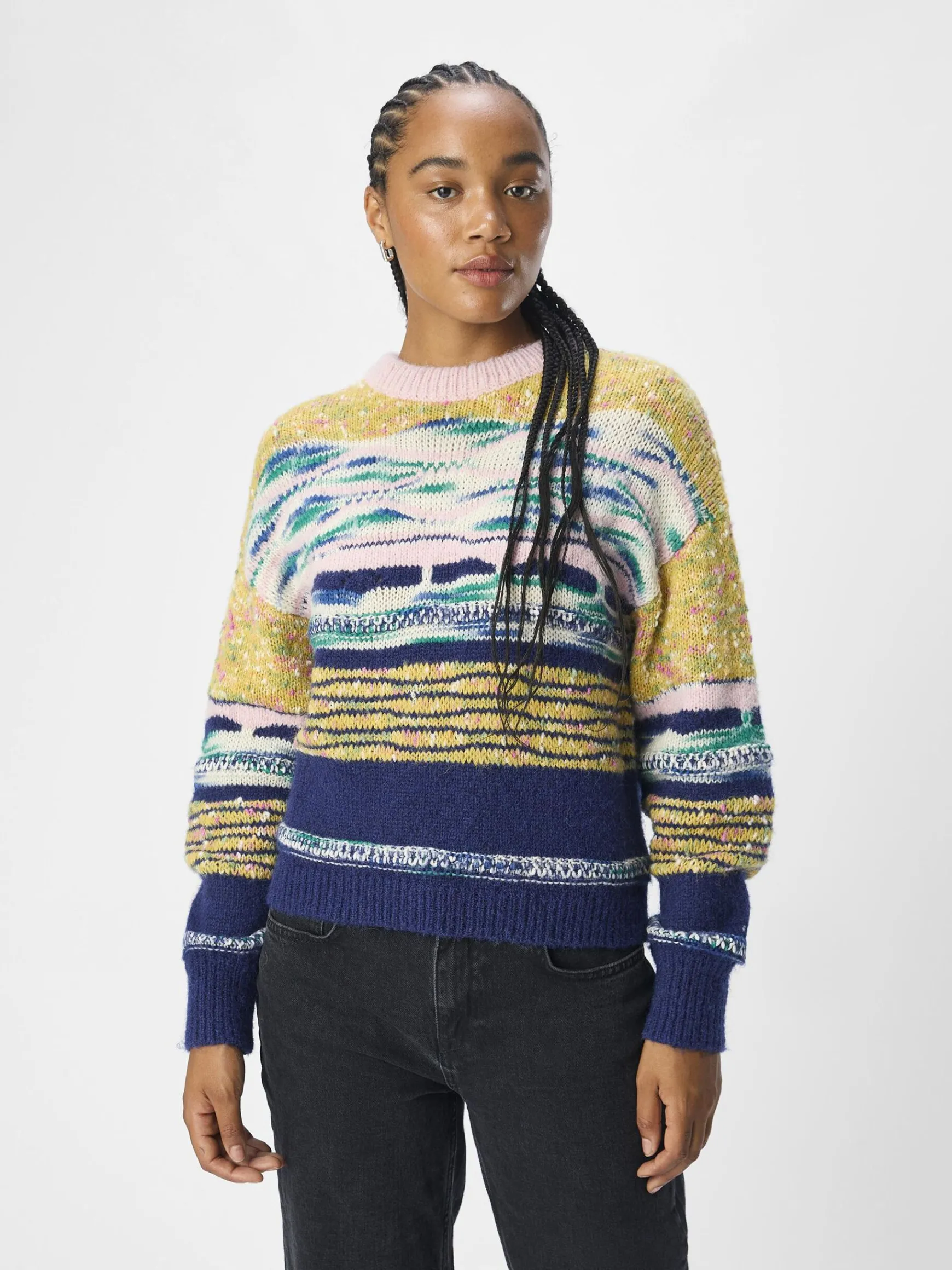 – Trøje med intarsia-strikket design- Rund halsudskæring- Sænkede skuldre- Lange ærmer- Ribstrikket kant- Almindelig pasform