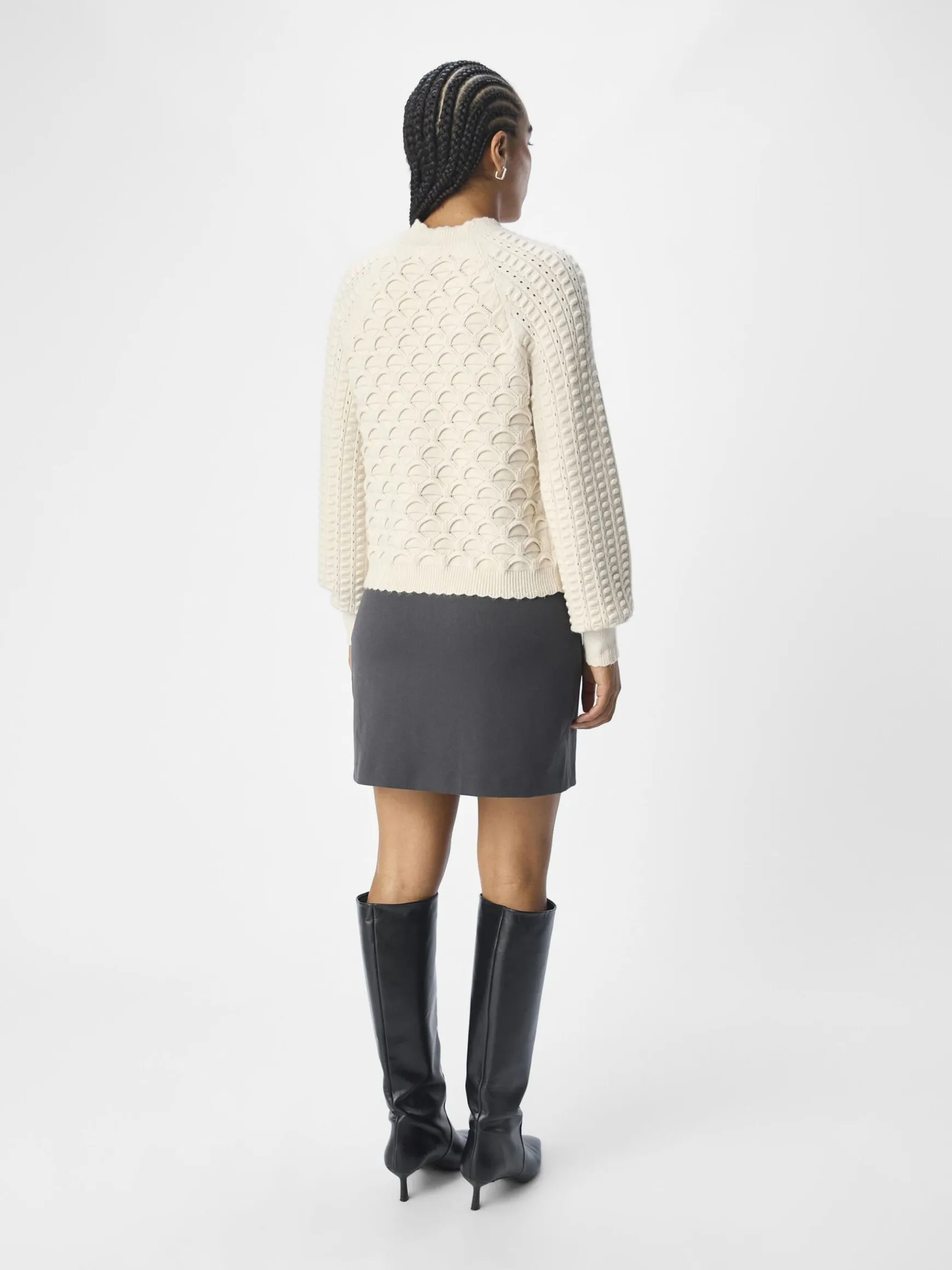 – Strikket trøje med tekstureret detalje- Høj hals- Raglan-skulder- Lange voluminøse ærmer- Finribbede tætsiddende ærmekanter- Bølgekant- Regular fit