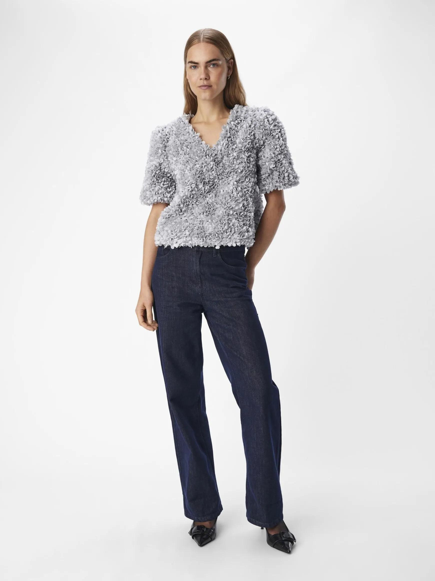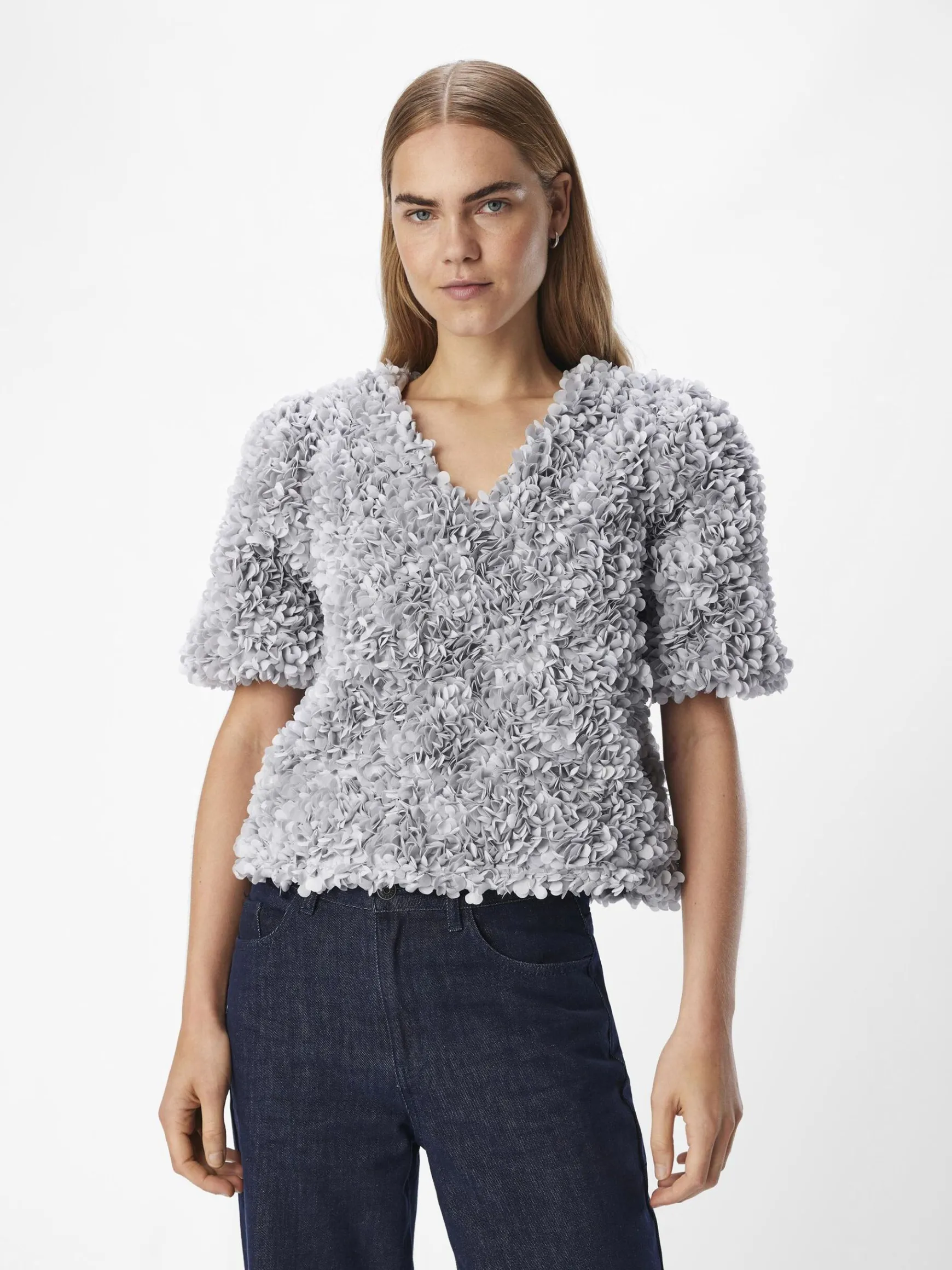 – Top med all-over blomsterblad-detalje – V-hals- Korte ærmer- Foret- Almindelig pasformINDEHOLDER GENANVENDT POLYESTER…