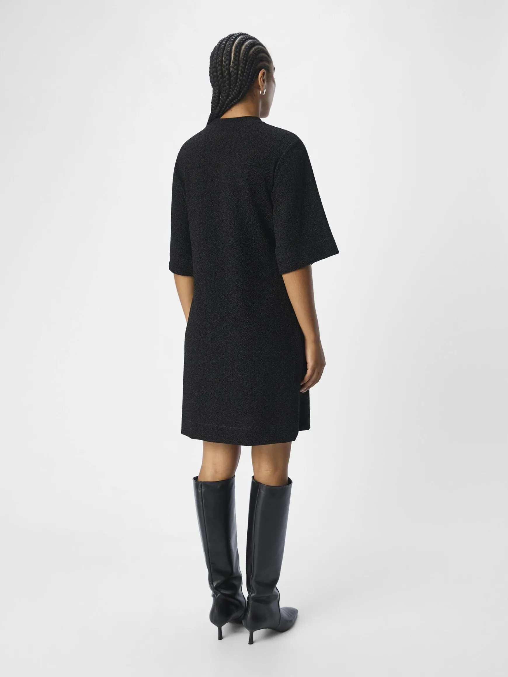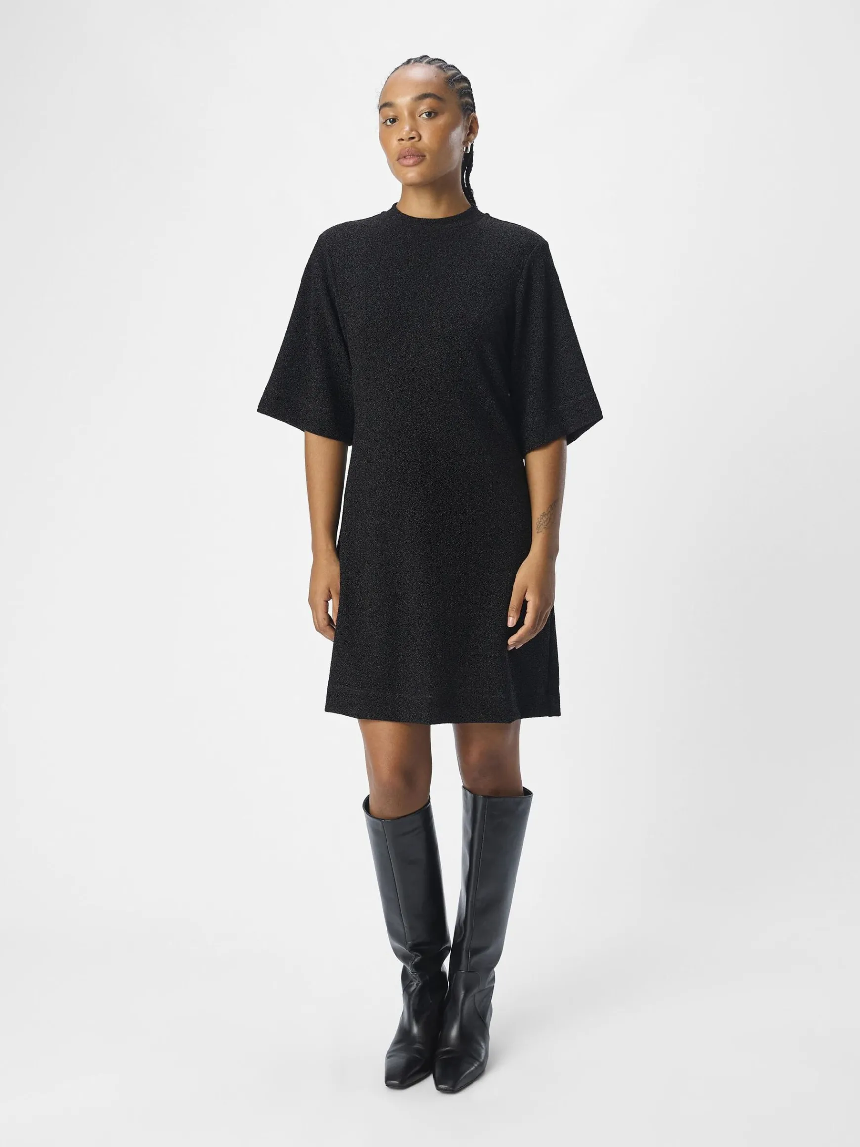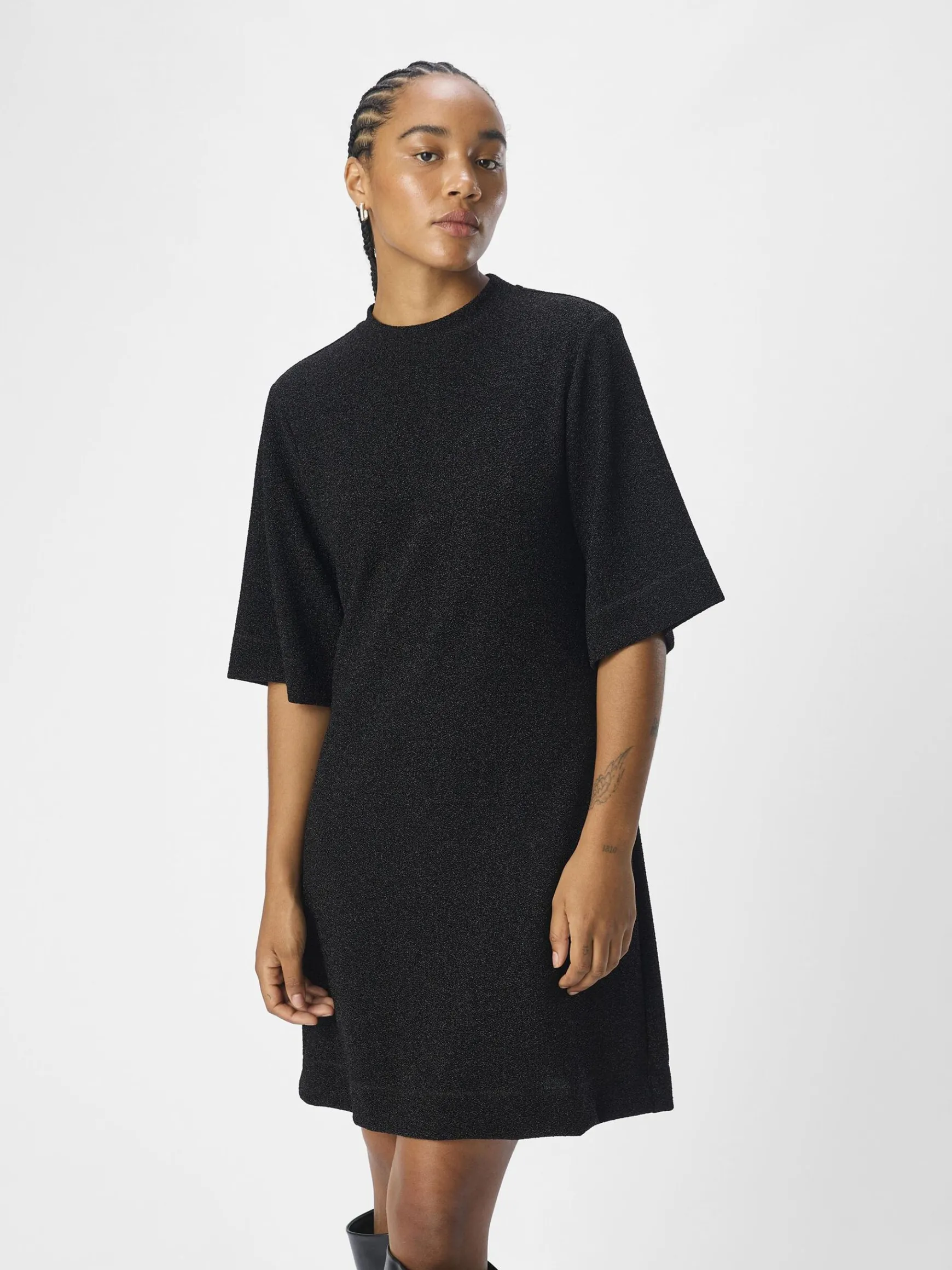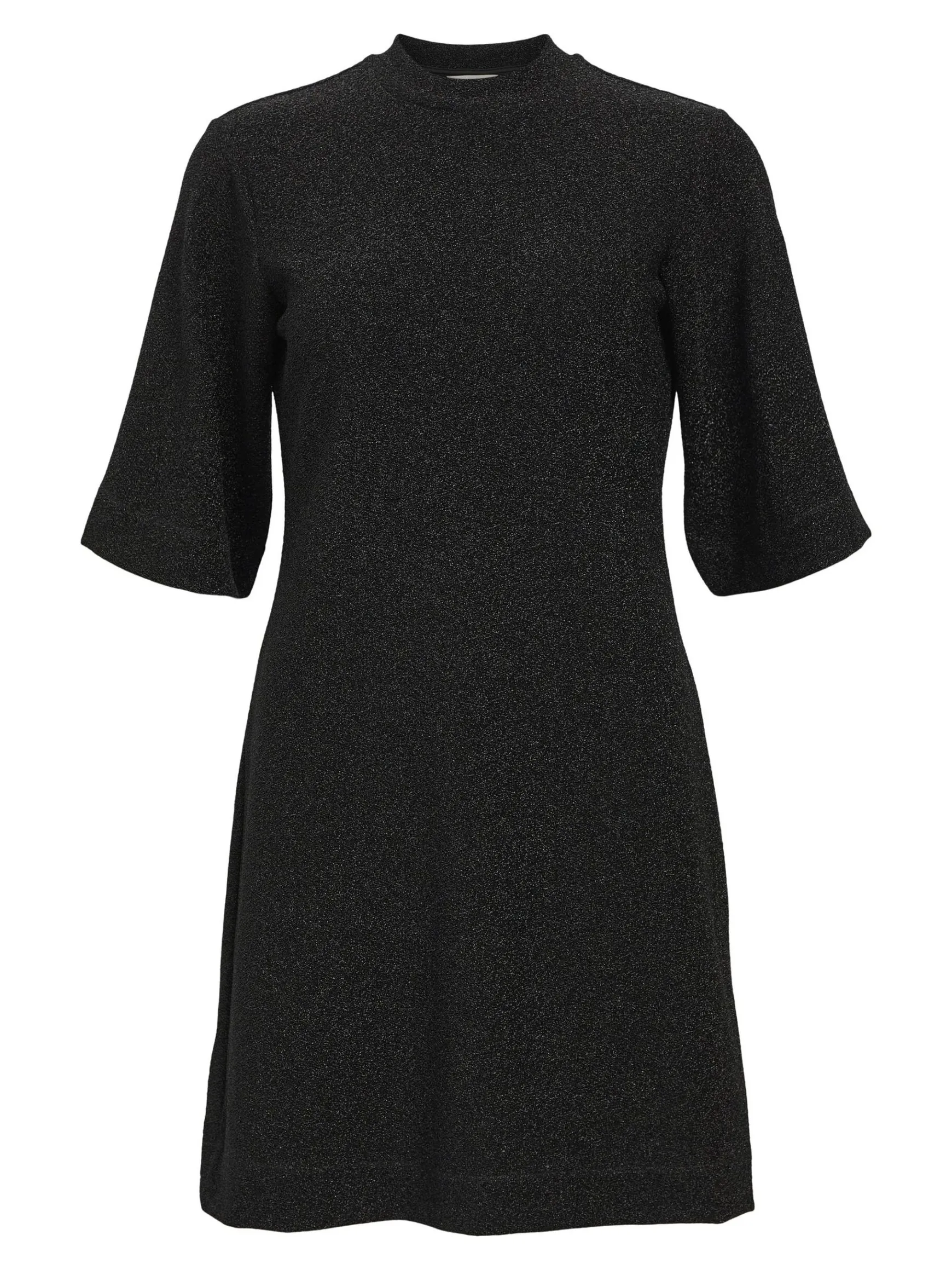 – Kortærmet glimmer-minikjole- Rund halsudskæring- Uforet- Almindelig pasform