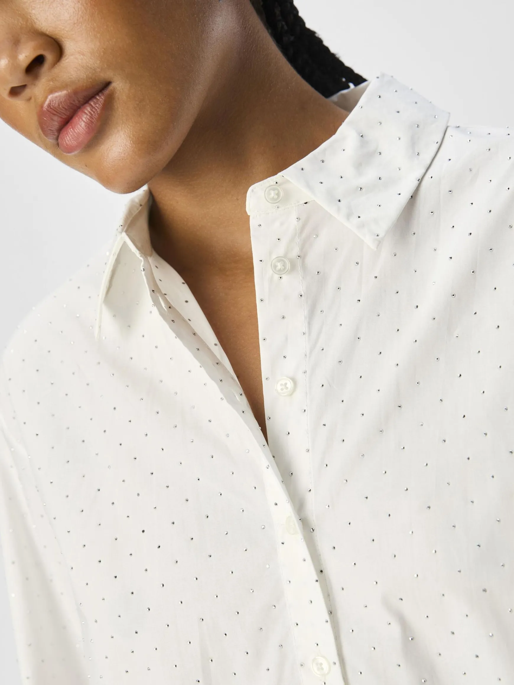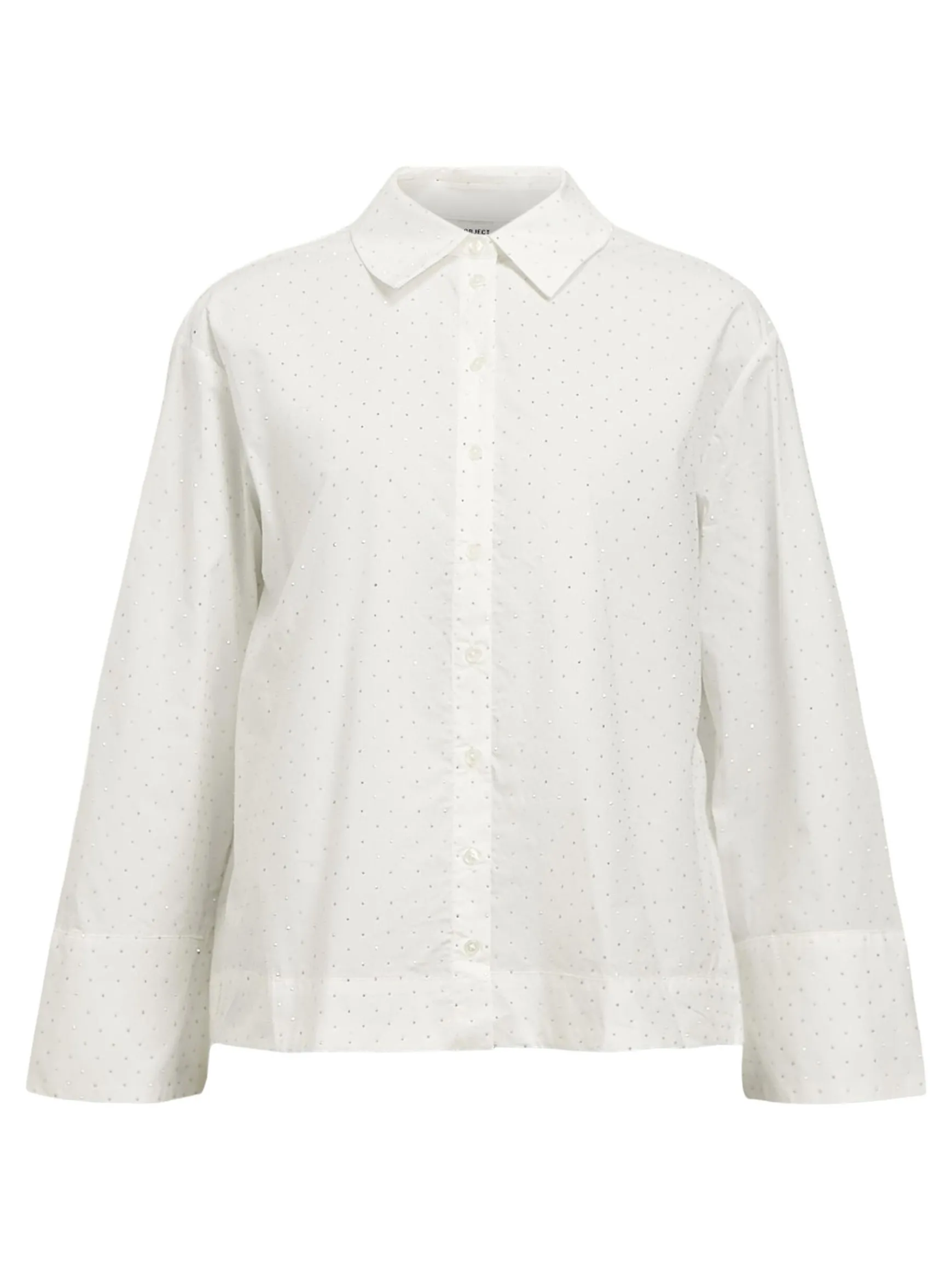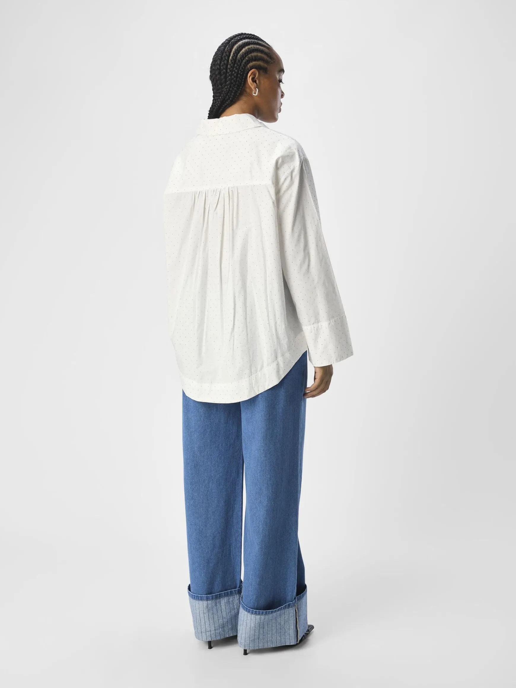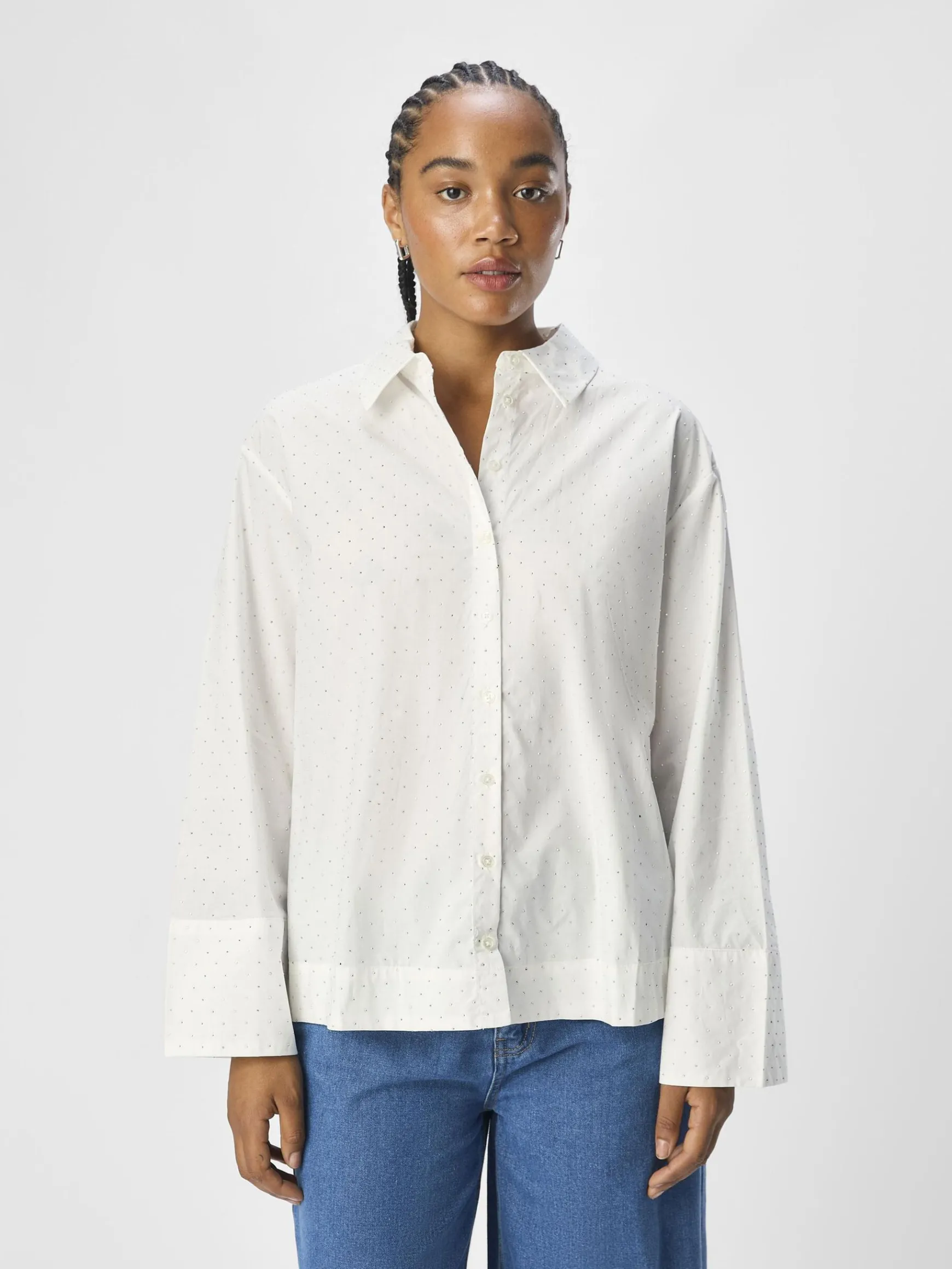 – Stribet glitterskjorte- Almindelig krave- Sænkede skuldre- Lange ærmer- Oversized manchetter- Knapper foran- Løs pasform