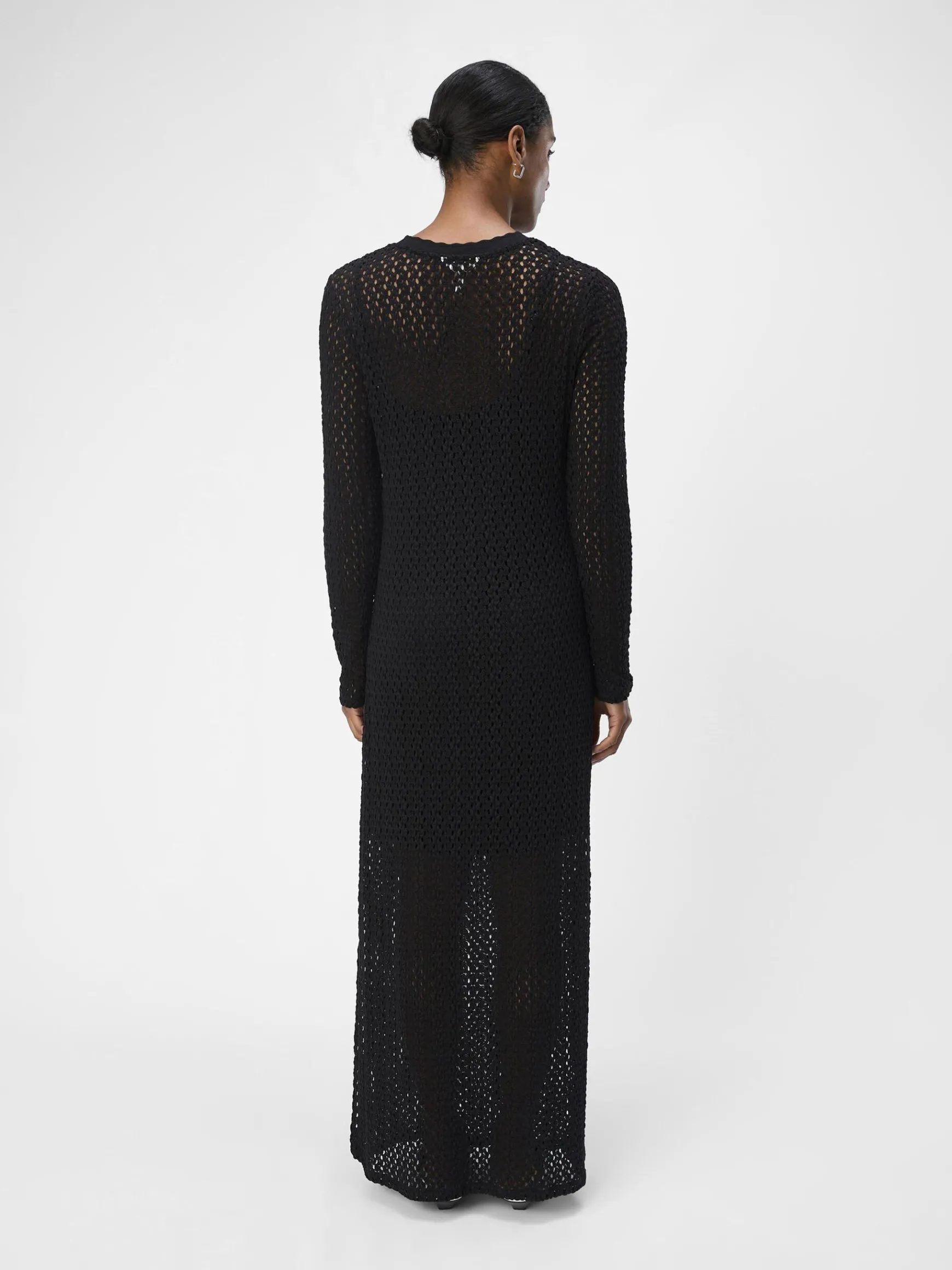 – Hæklet maxikjole- Rund hals- Lange ærmer- Aftageligt halvfor- Slim fit