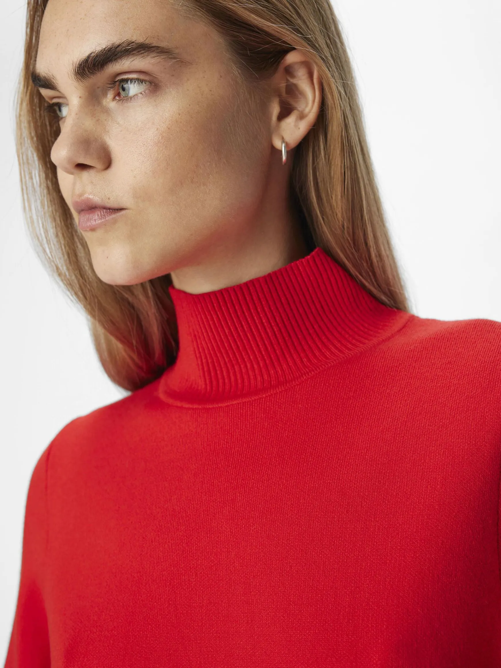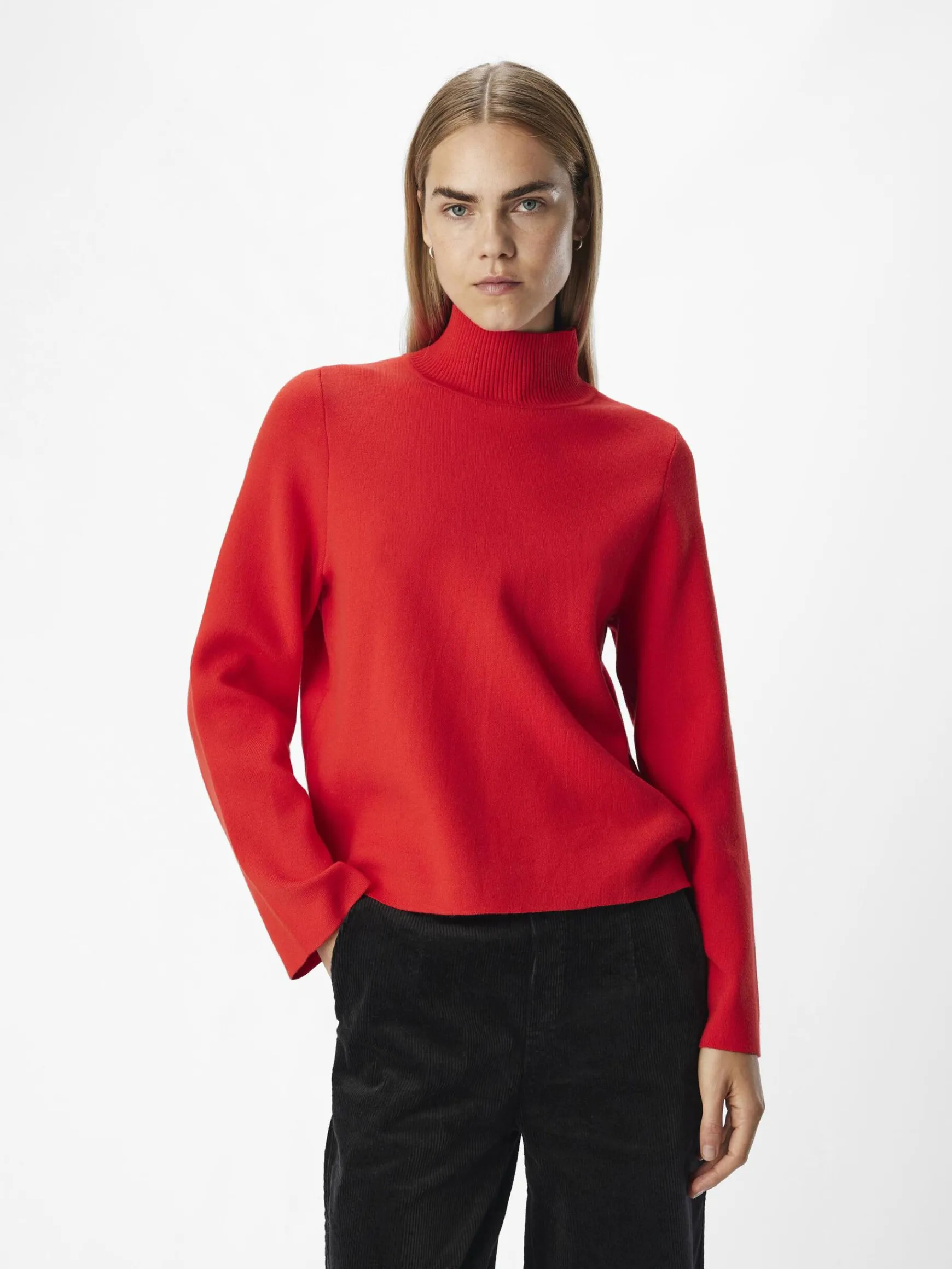 – Højhalset striktrøje- Lange vide ærmer- Ribstrikkede kanter- Blød at røre ved- Løs pasform- Modellen er iført størrelse 36- Fremstillet med mere ansvarligt stof