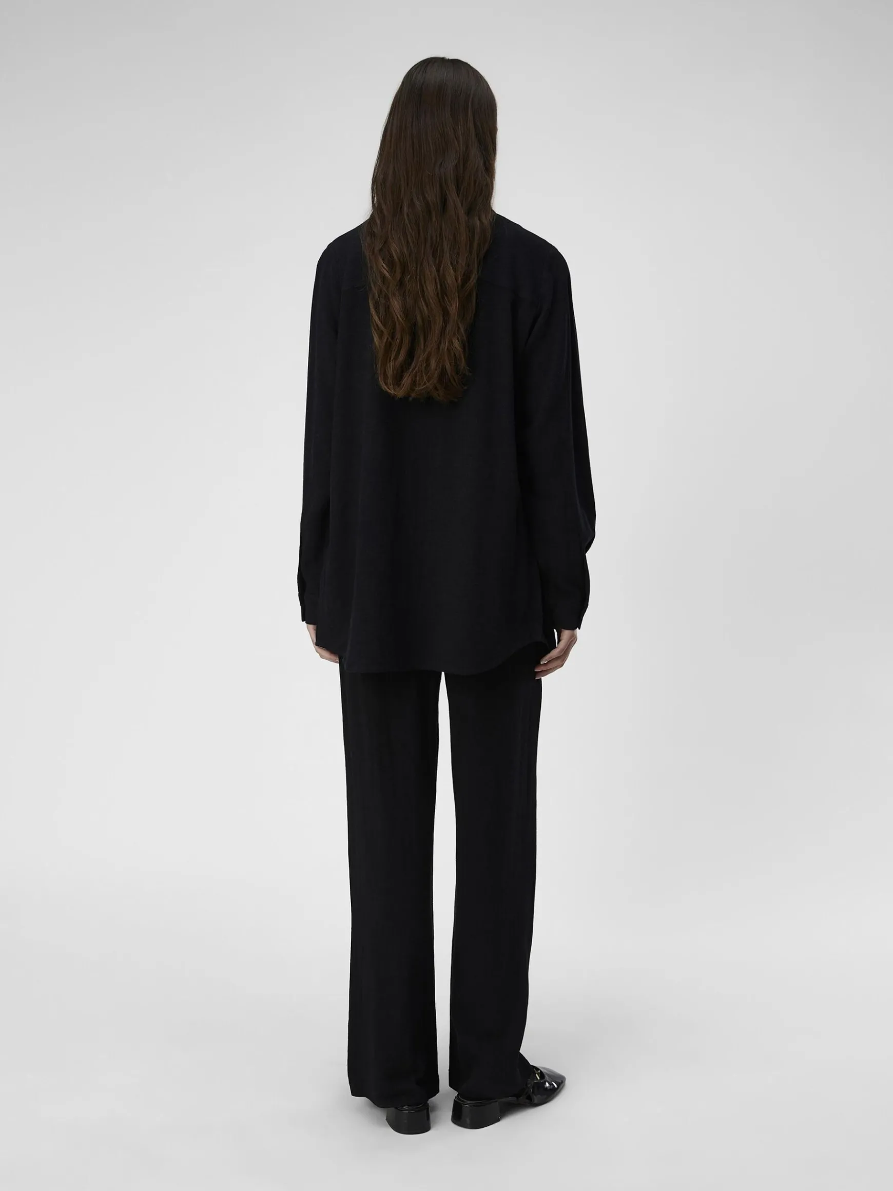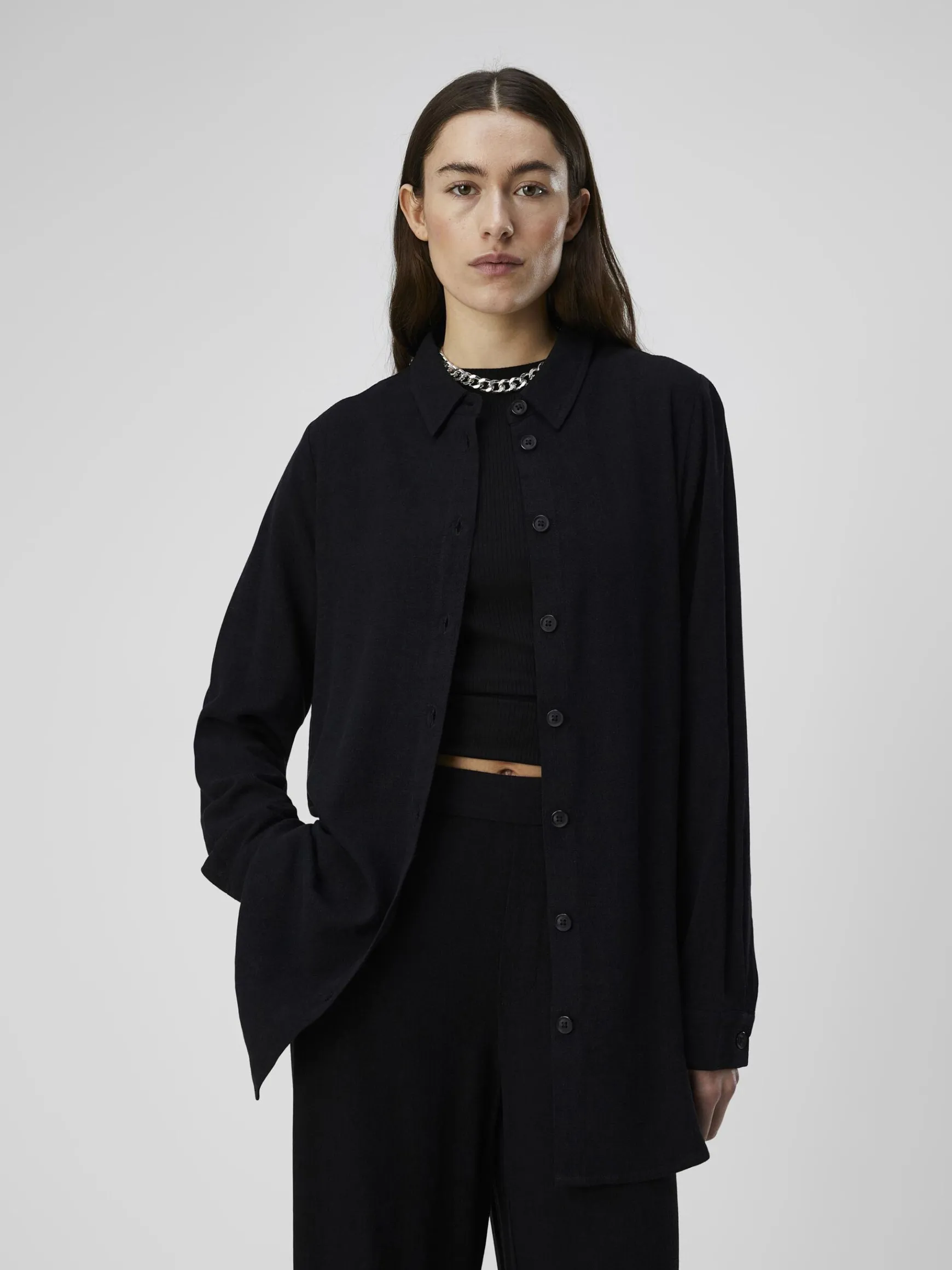 – Almindelig krave- Knapper foran- Sænkede skuldre- Lange ærmer- Manchetter med knap- Marmorknapper- Løs pasform- Fremstillet med mere ansvarligt stof- Modellen er iført størrelse 36- Denne models højde er 180 cm