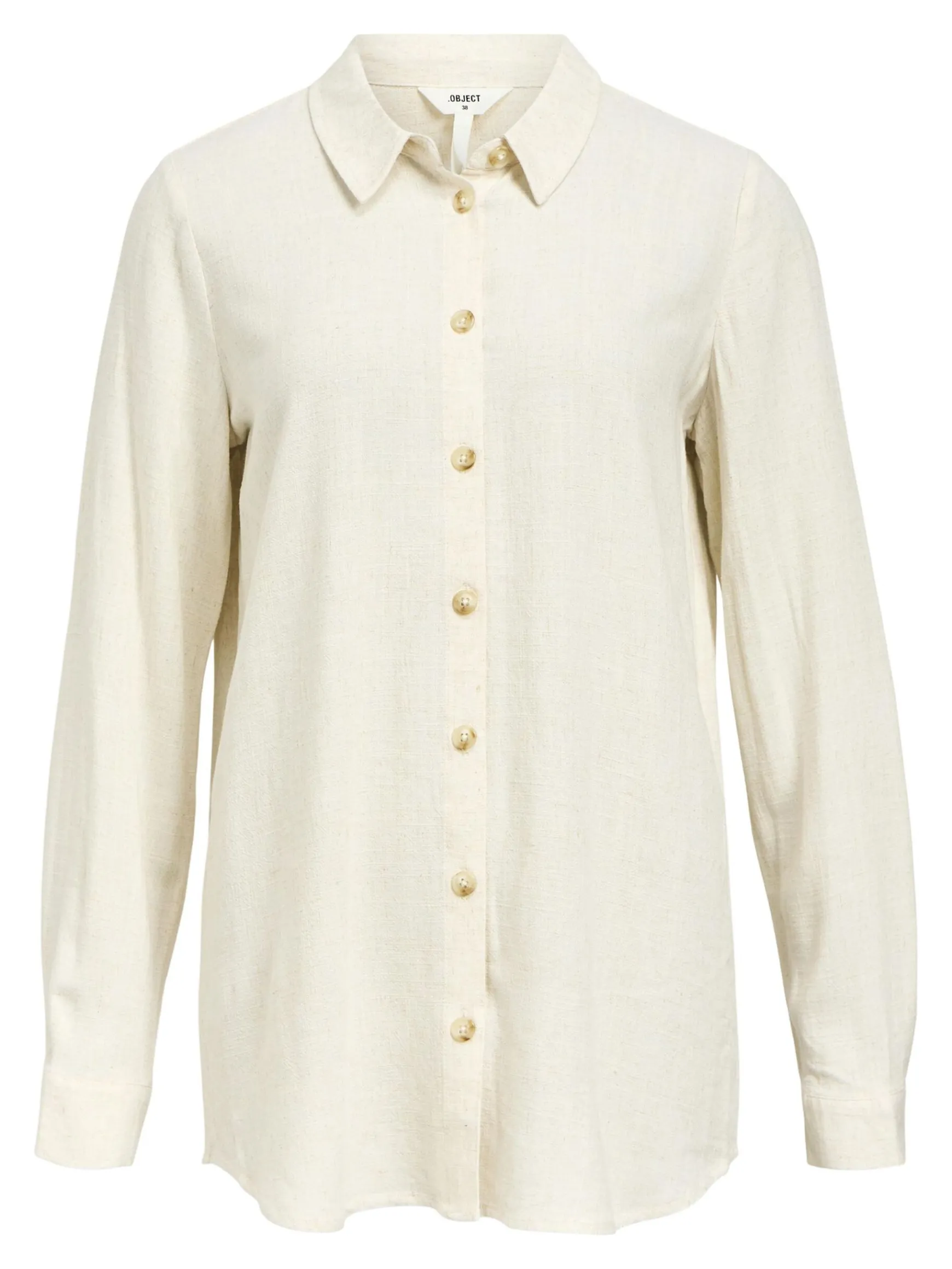– Almindelig krave- Knapper foran- Sænkede skuldre- Lange ærmer- Manchetter med knap- Marmorknapper- Løs pasform- Fre…