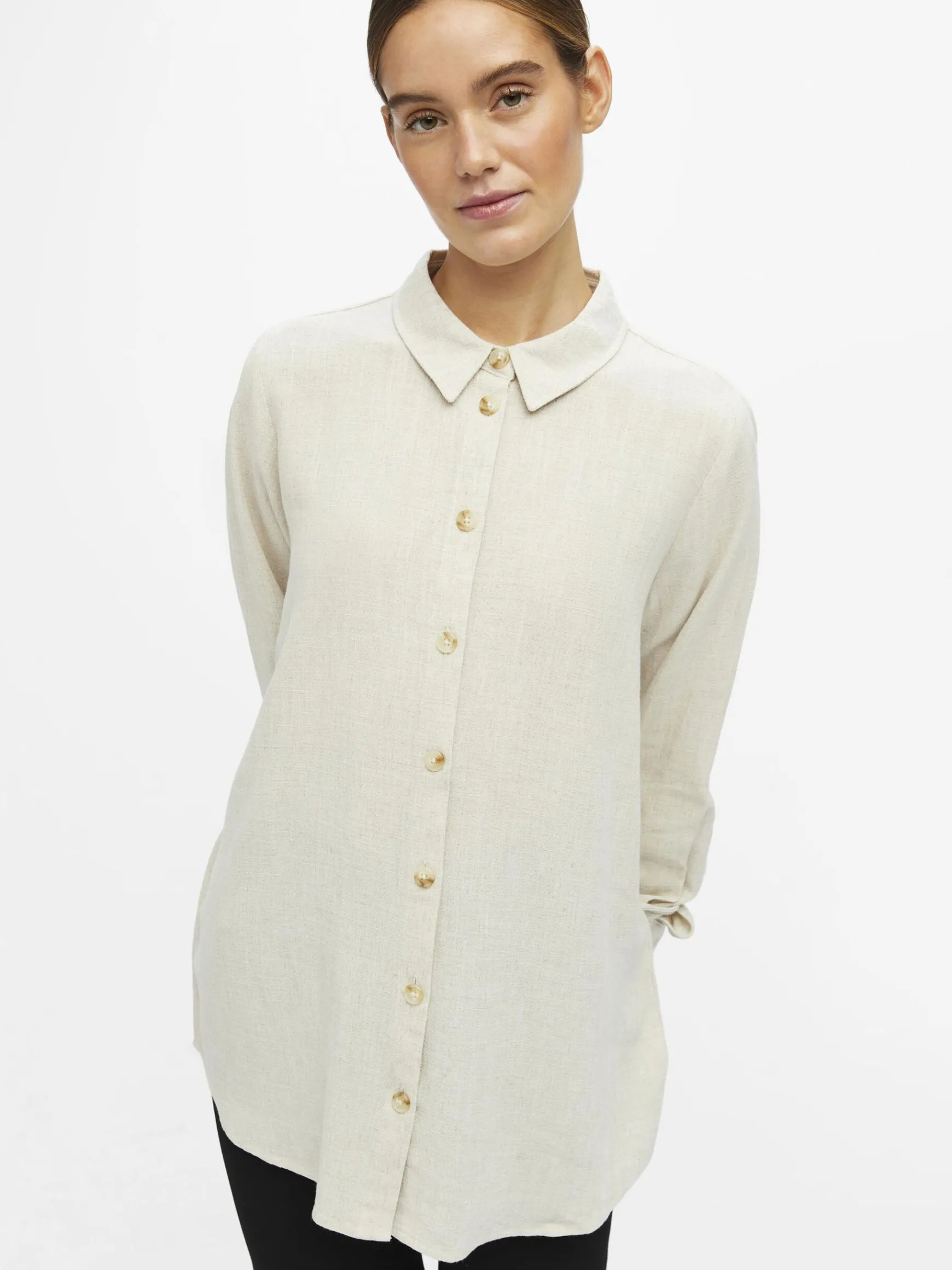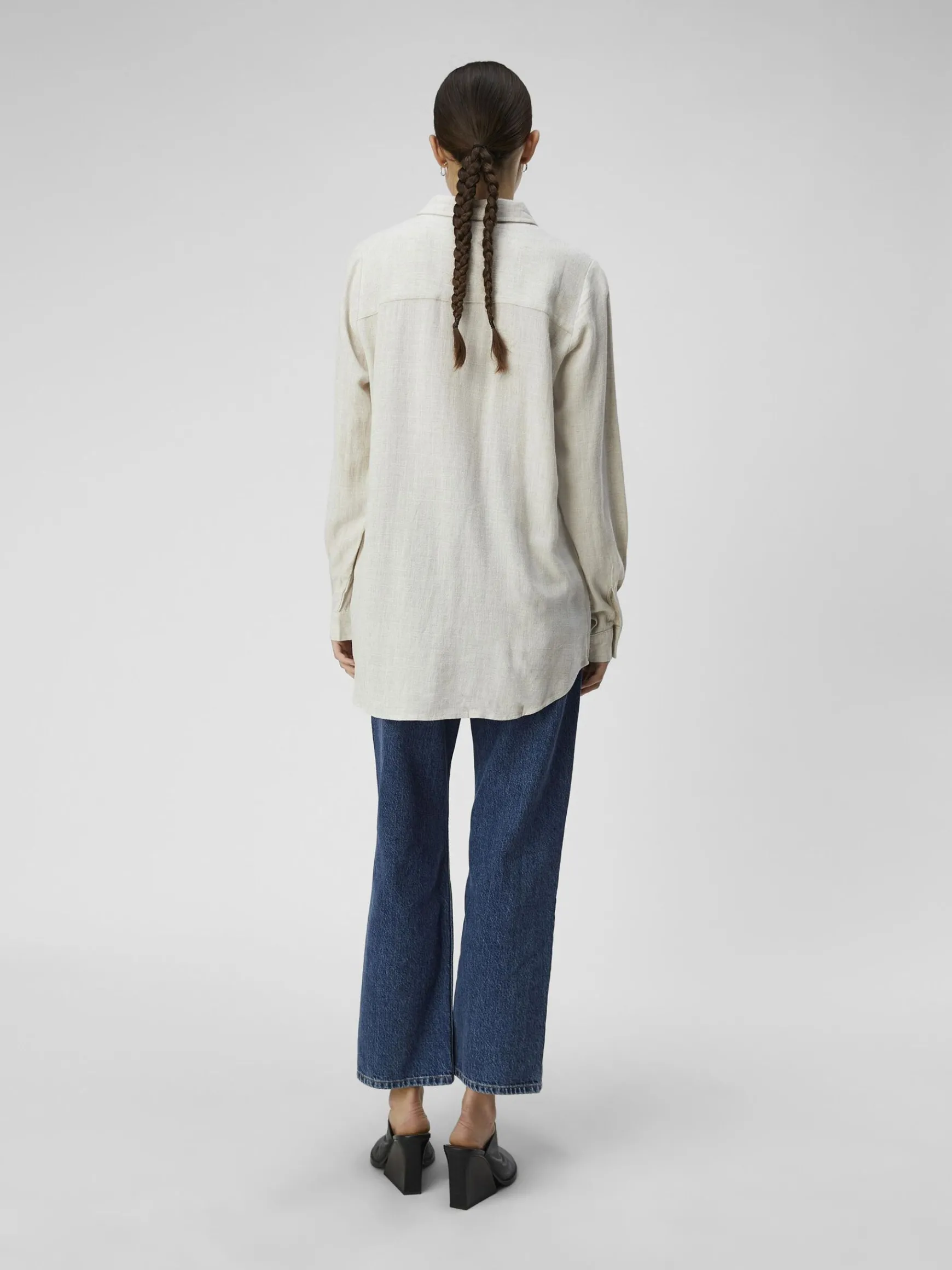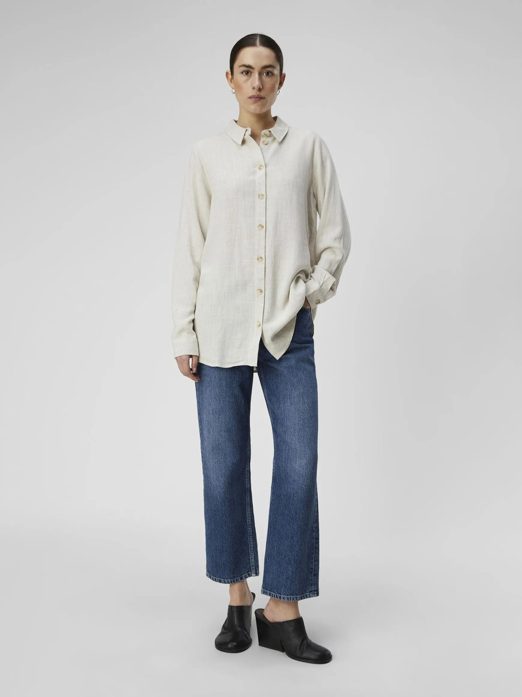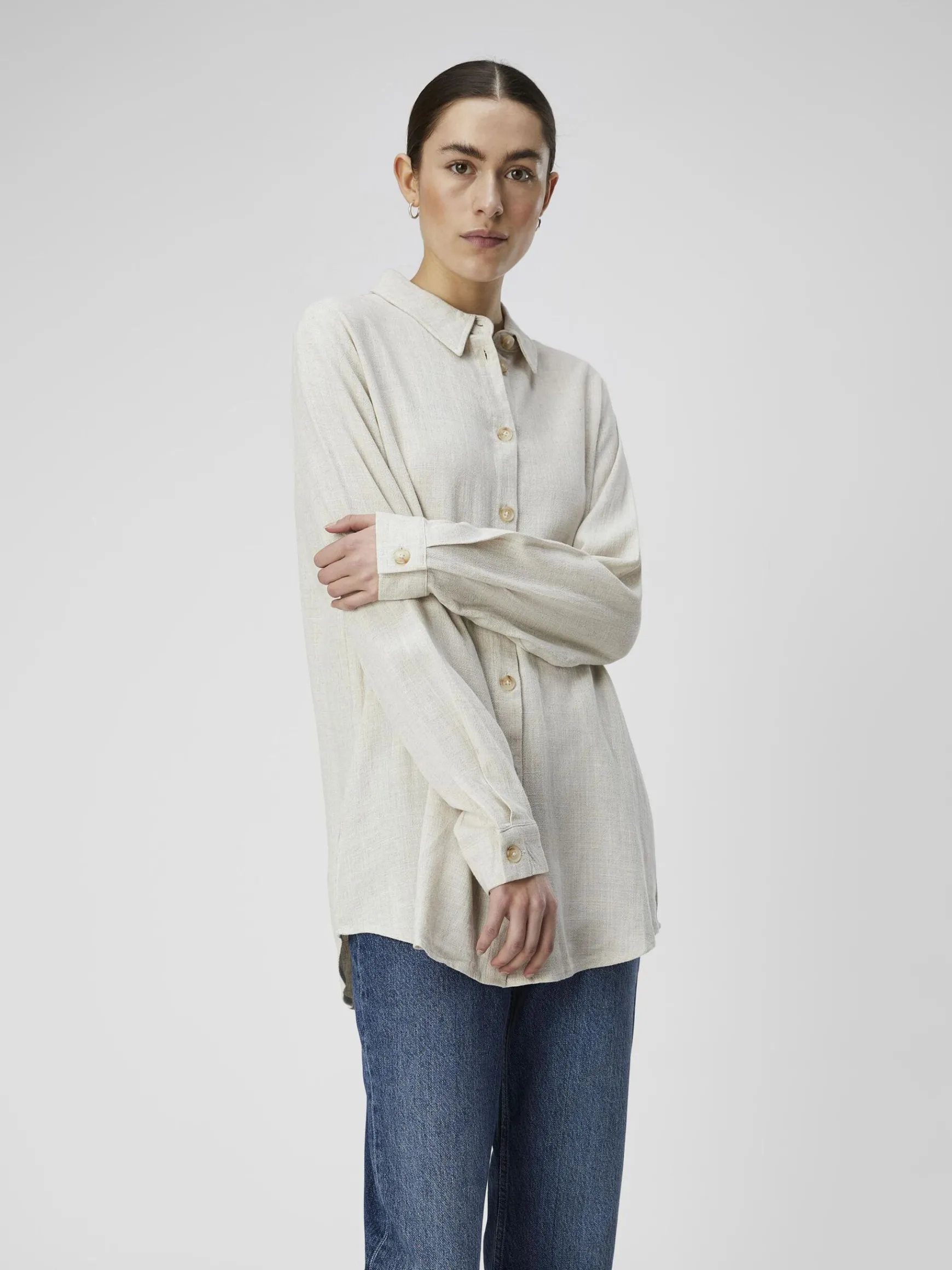 – Almindelig krave- Knapper foran- Sænkede skuldre- Lange ærmer- Manchetter med knap- Marmorknapper- Løs pasform- Fremstillet med mere ansvarligt stof- Modellen er iført størrelse 36- Denne models højde er 180 cm