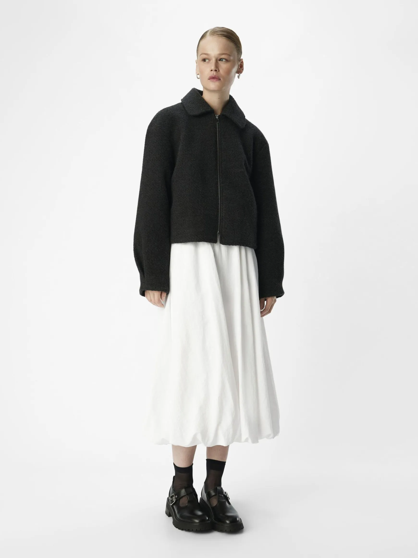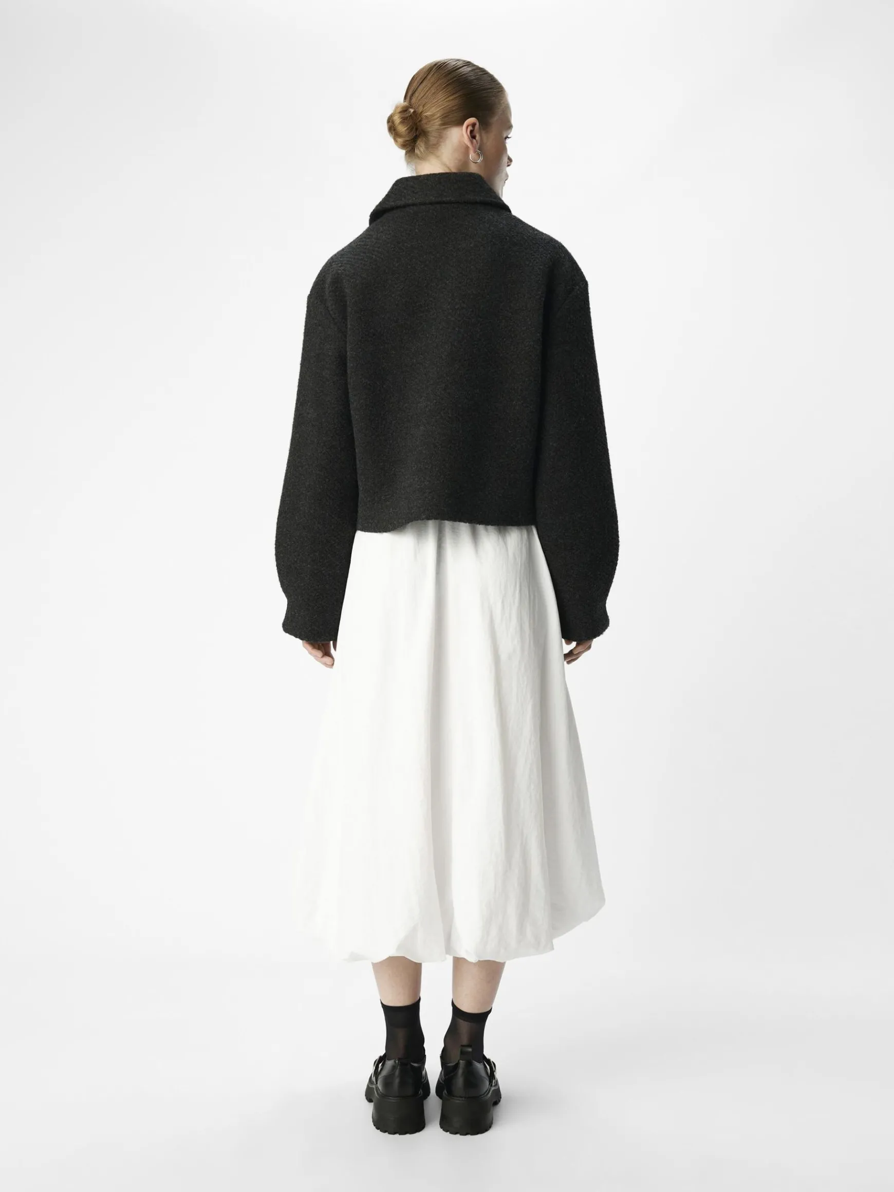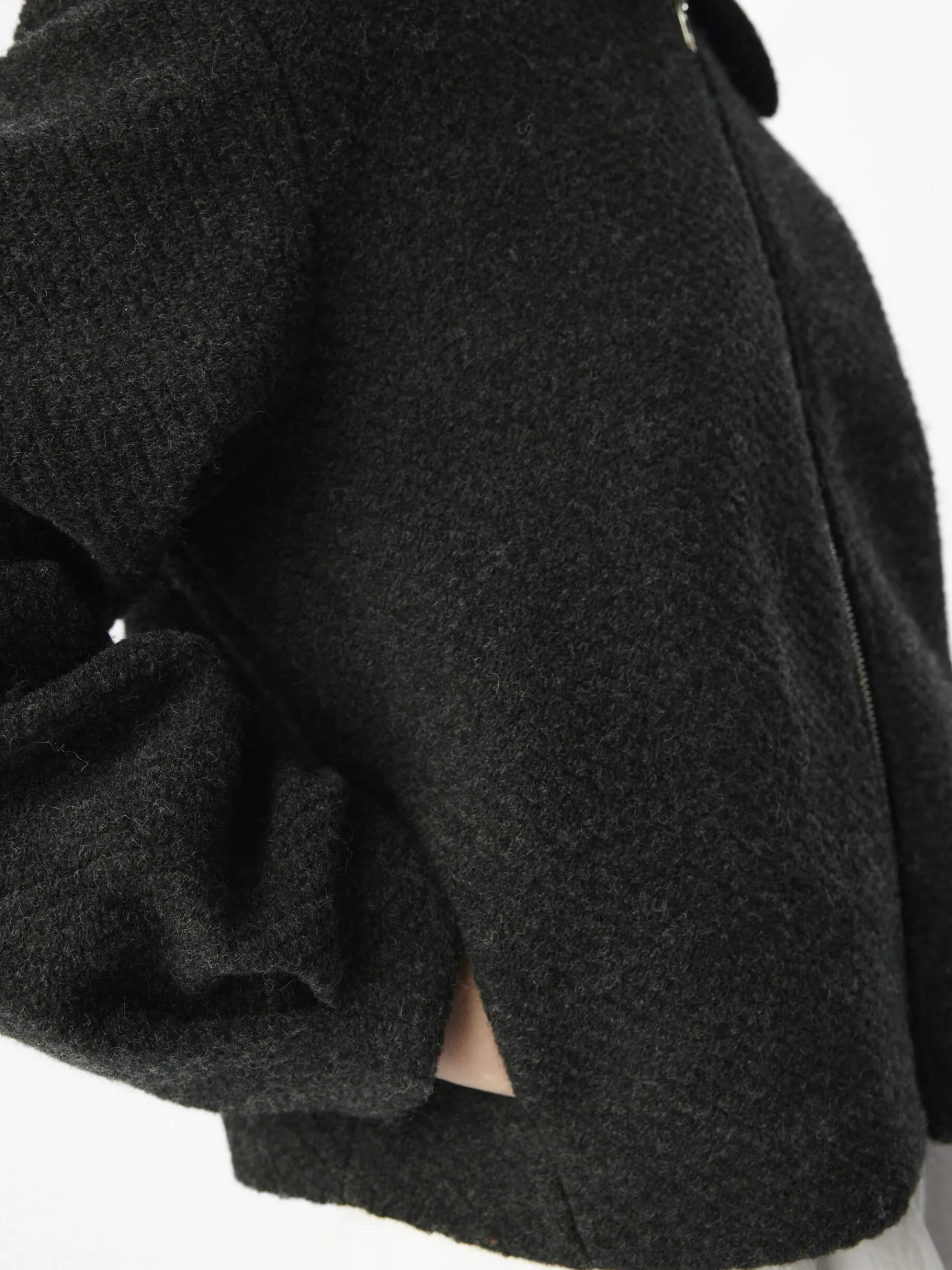 – Kort jakke i uldblanding- Rund krave- Lange ærmer- 2-vejs lynlås foran- Foret- Almindelig pasform