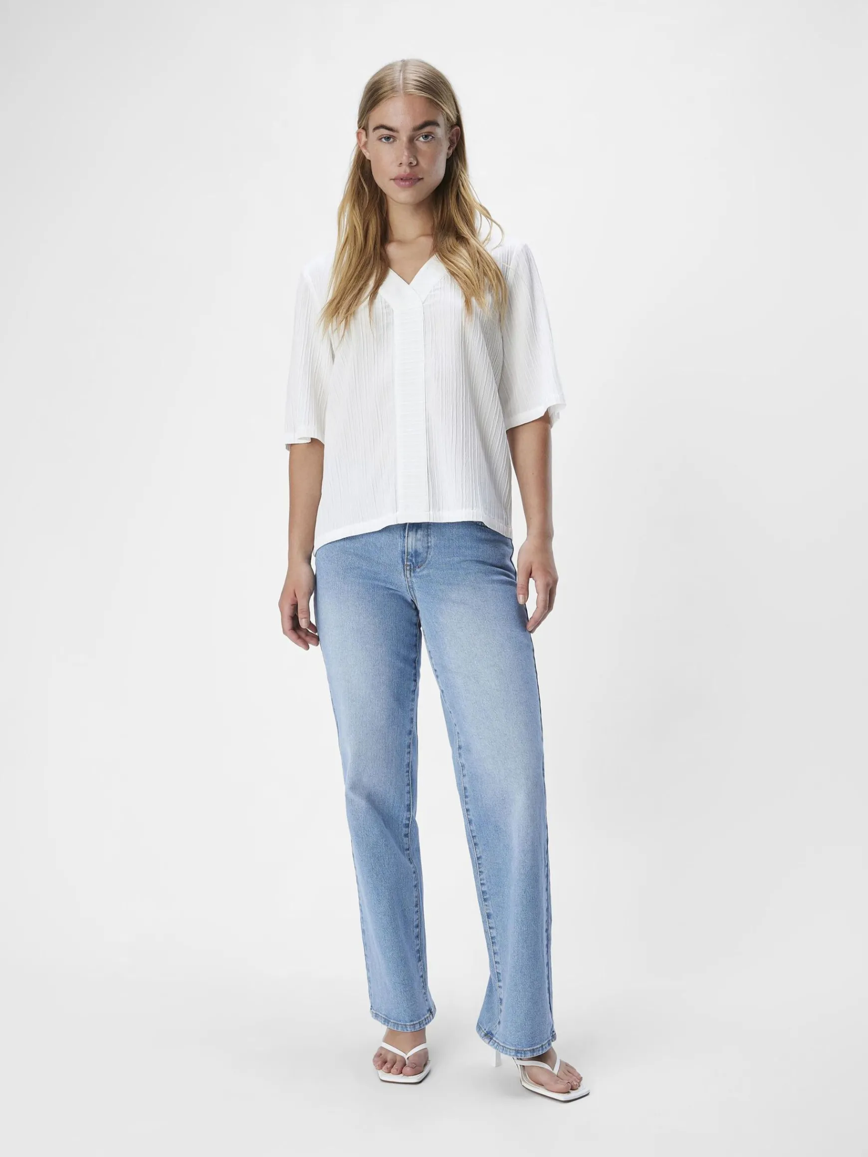 – Bluse med V-udskæring og rynkeeffekt- Korte ærmer- Sænkede skuldre- Almindelig pasformStylenavn: OBJANZU