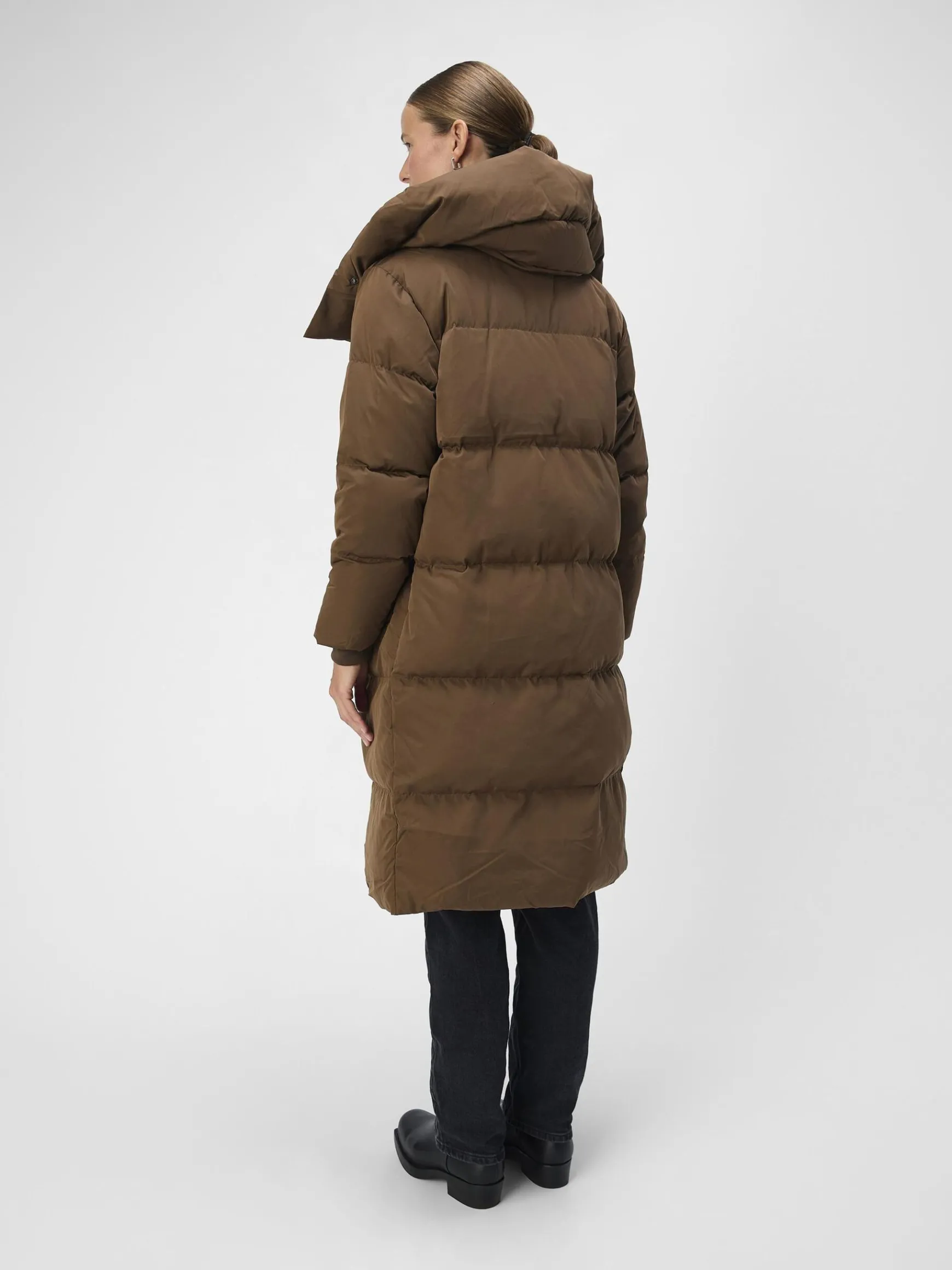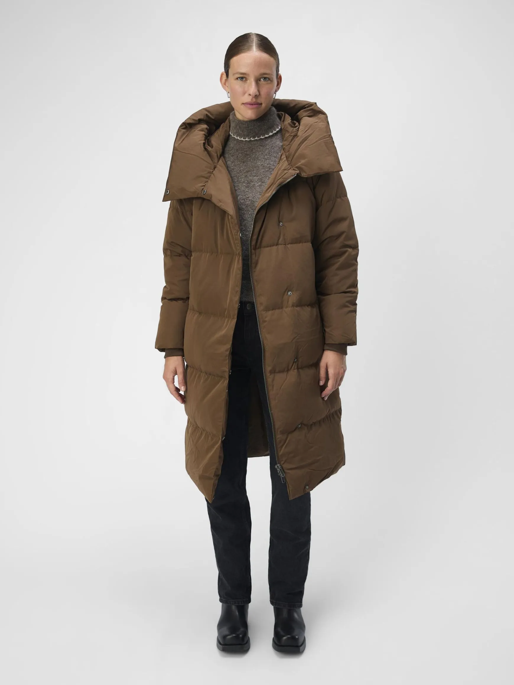 – Lang dunfrakke med hætte- To lommer- Vinter frakke- Kombineret lynlås- og knaplukning- Længde: 108 cm i str. 38- Ærmelængde: 63 cm i str. 38- Vores model er 178 cm høj og er iført str. 38