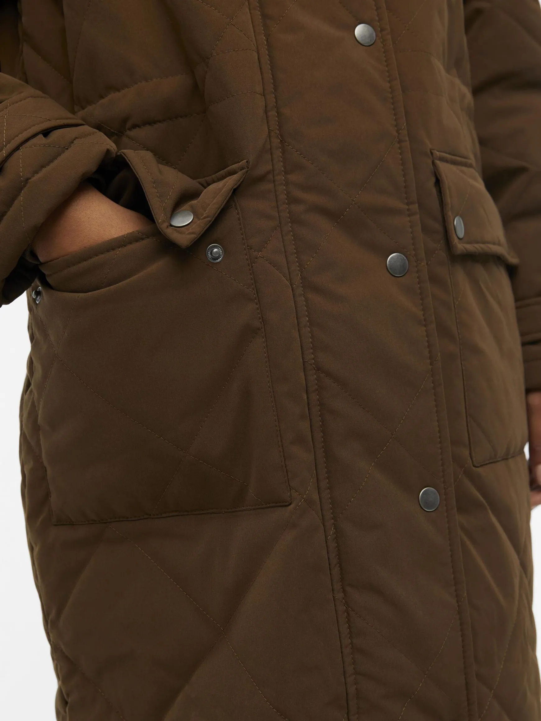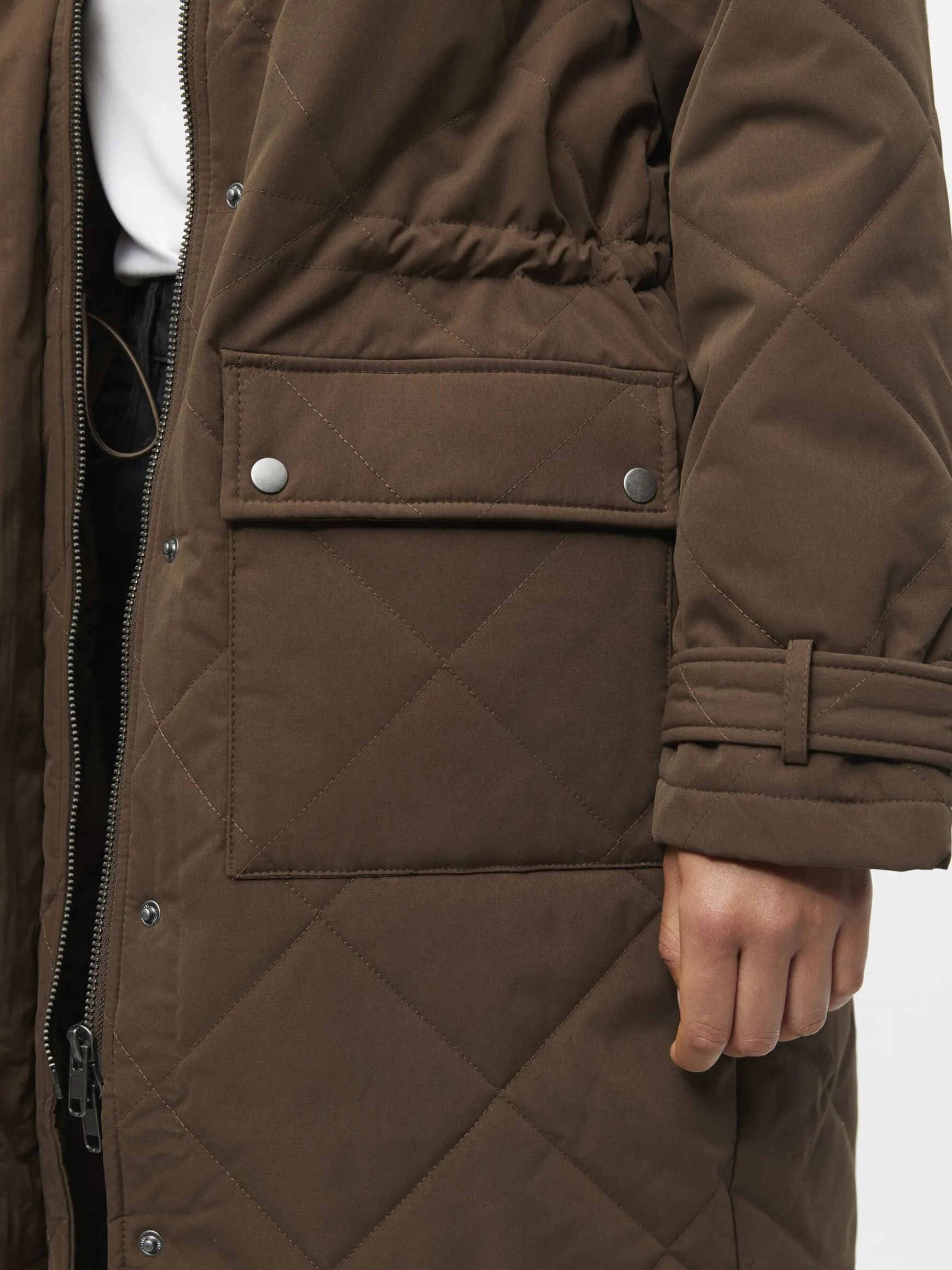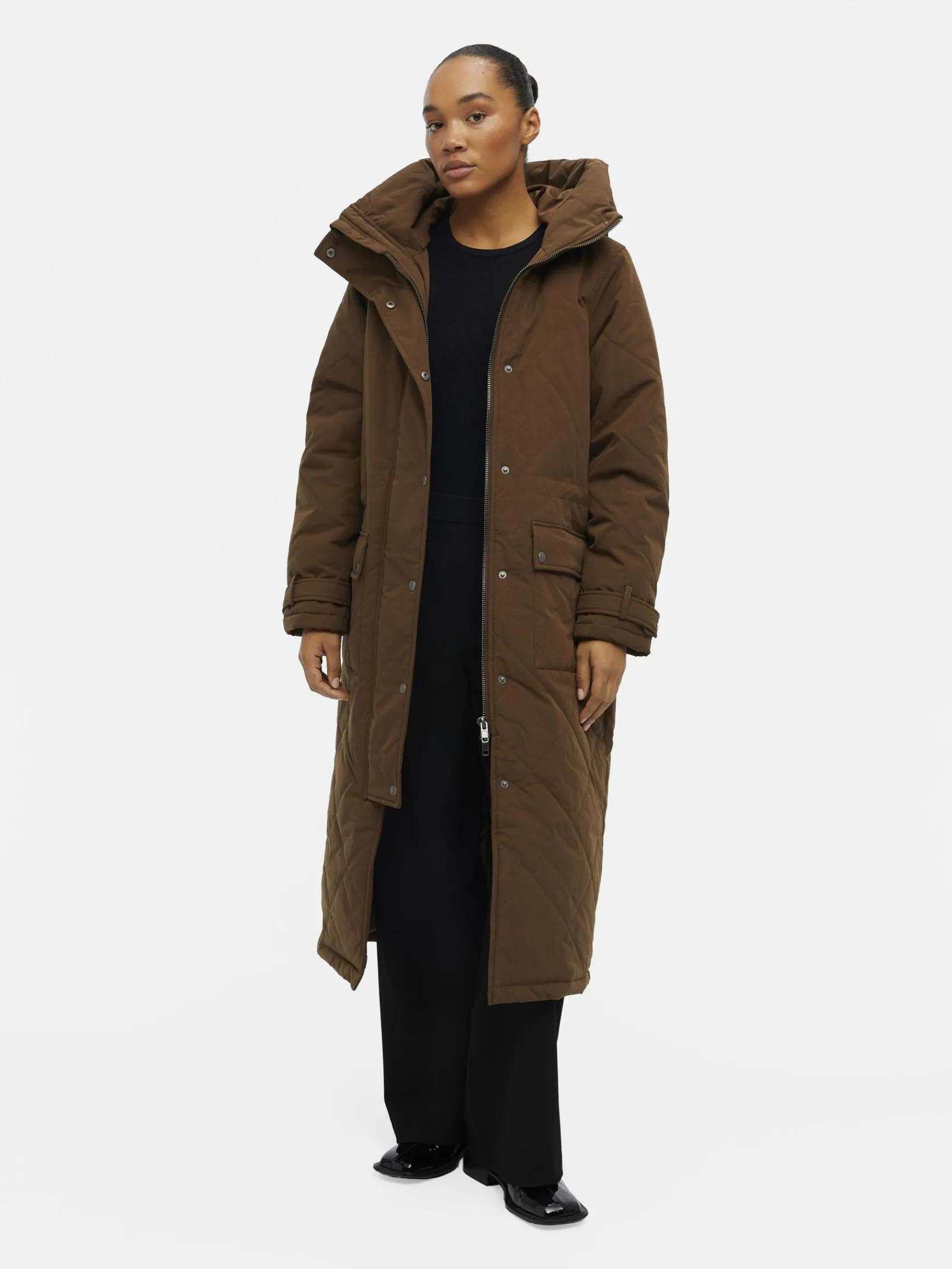 – Høj hals- Fastsyet hætte- Lynlås skjult af en stolpelukning- Lange ærmer med storm manchetter og spænde- Slids bagpå og foran med knaplukning- Foret- Regular fit