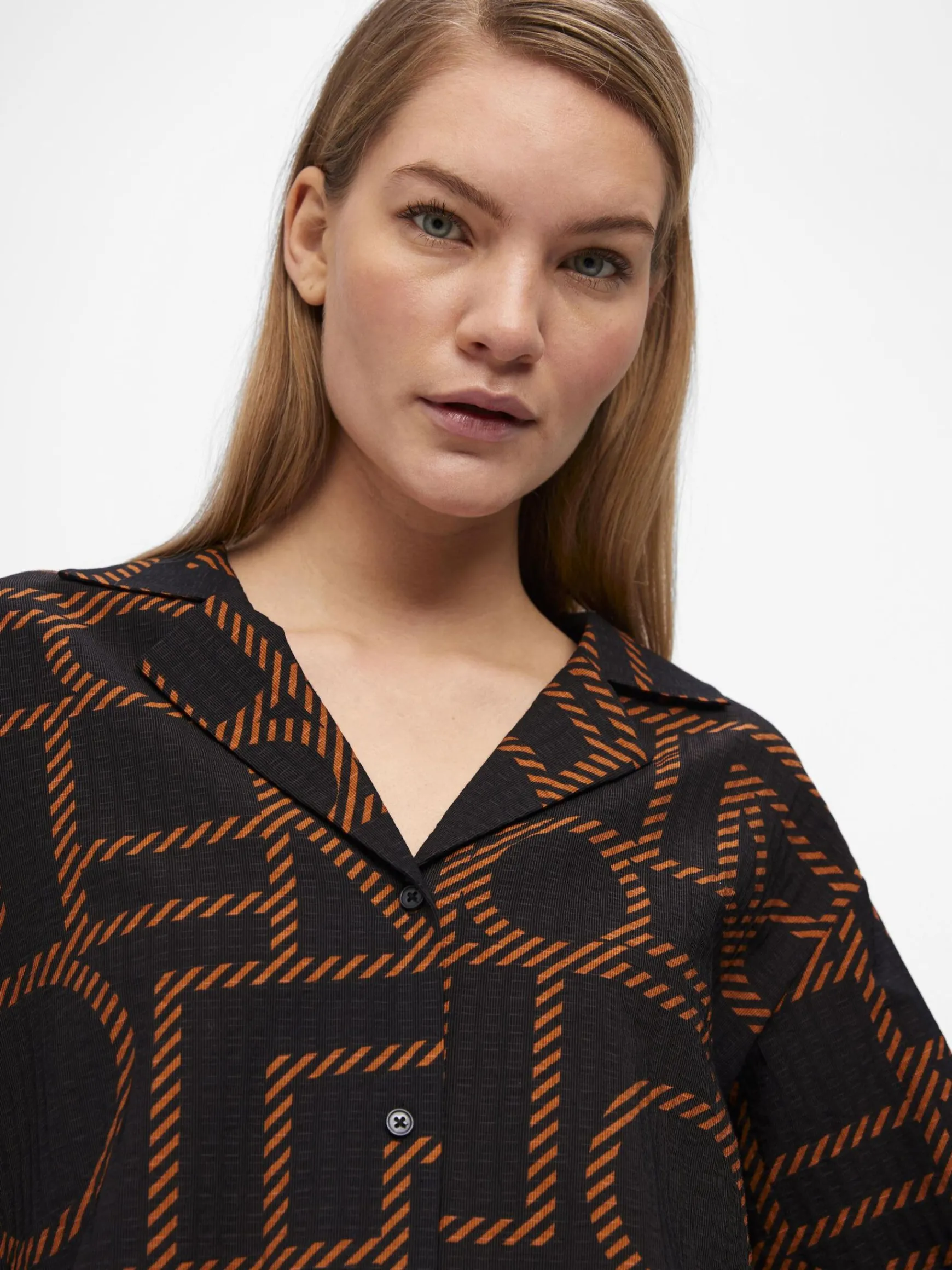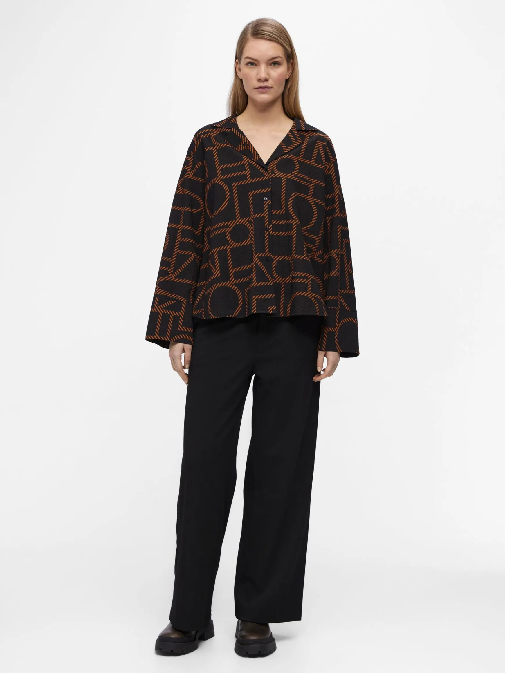 – Langærmet skjorte i loose fit- Spread-krave- Knapper foran- Betrukkede knapper- Lavet med mere ansvarlige materialer