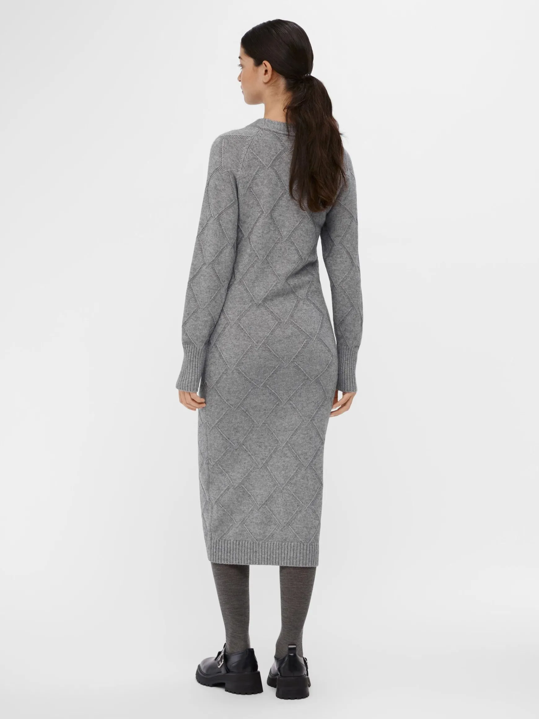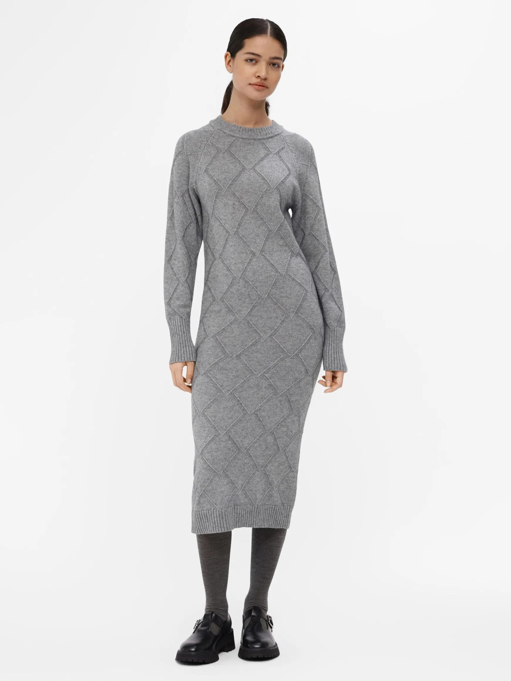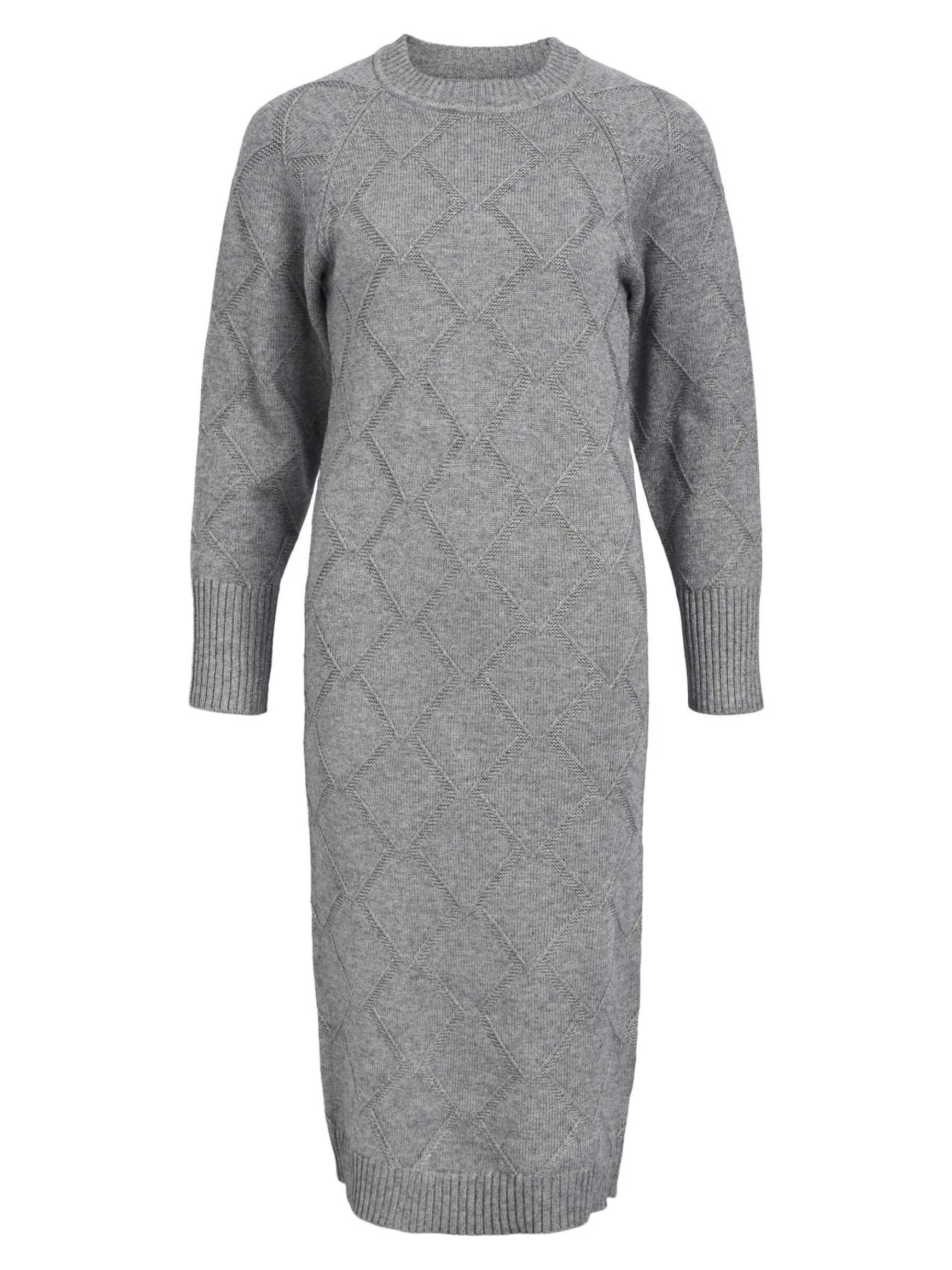 – Strikket langærmet midikjole- All-over gitter-design- Rund hals- Raglan-skuldre- Ribstrikket kant- Almindelig pasform- Fremstillet med mere ansvarligt stof