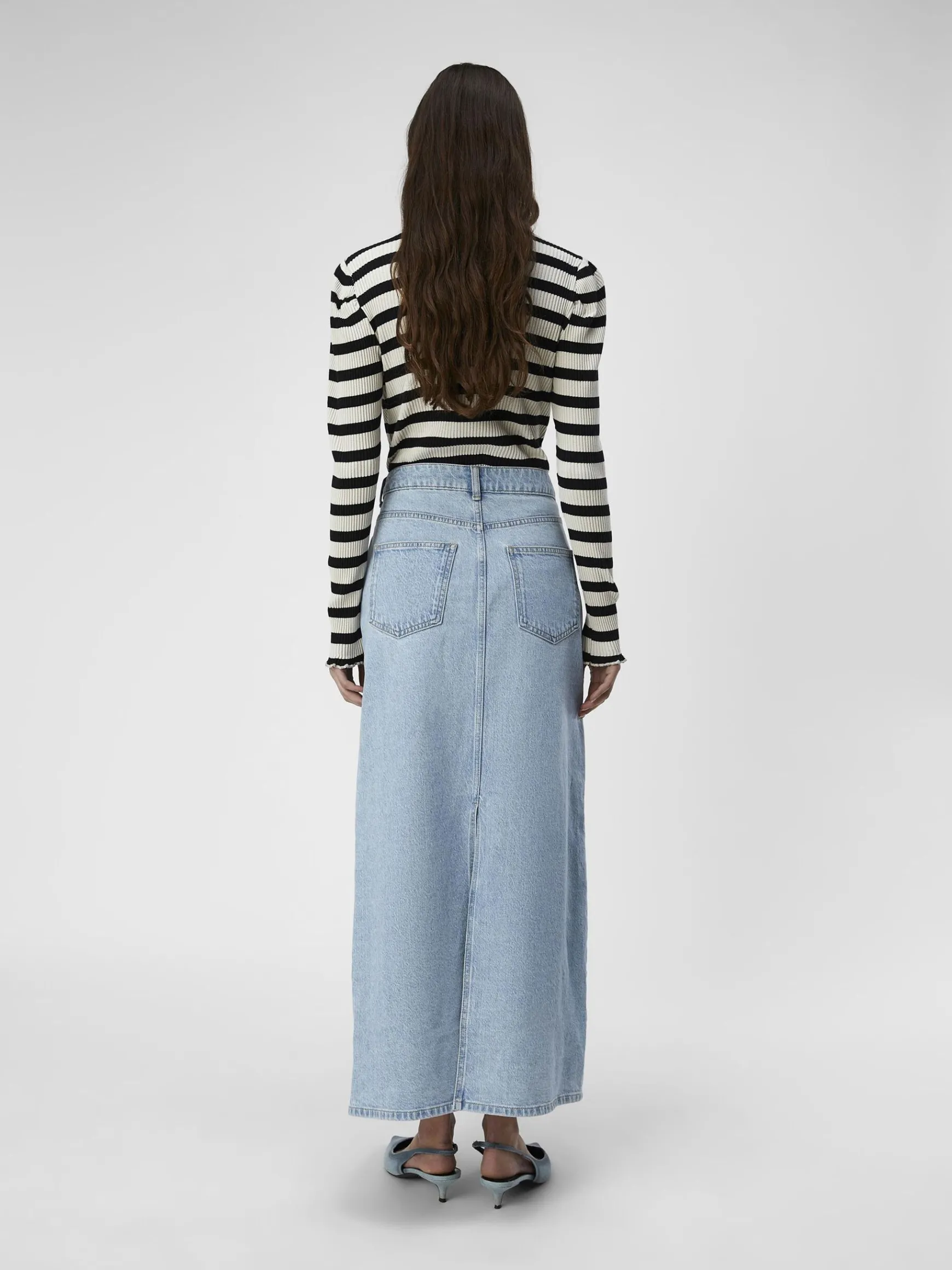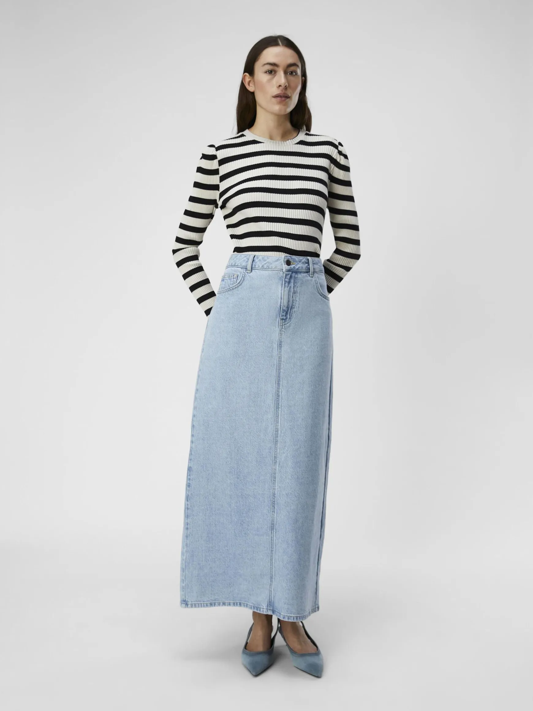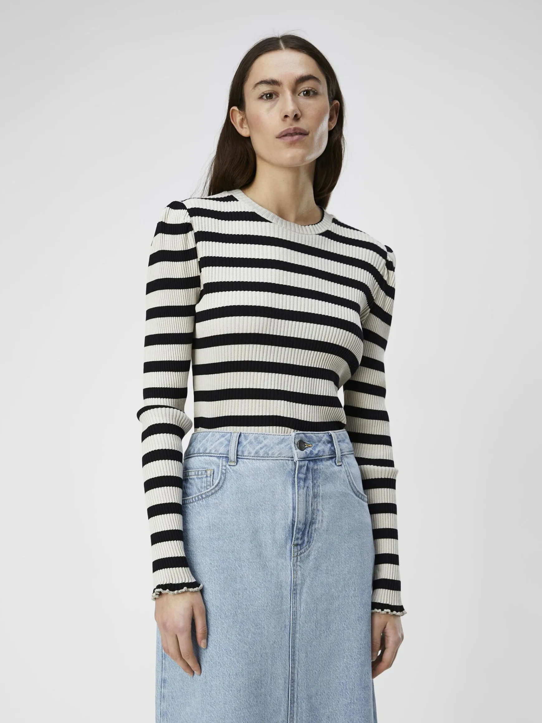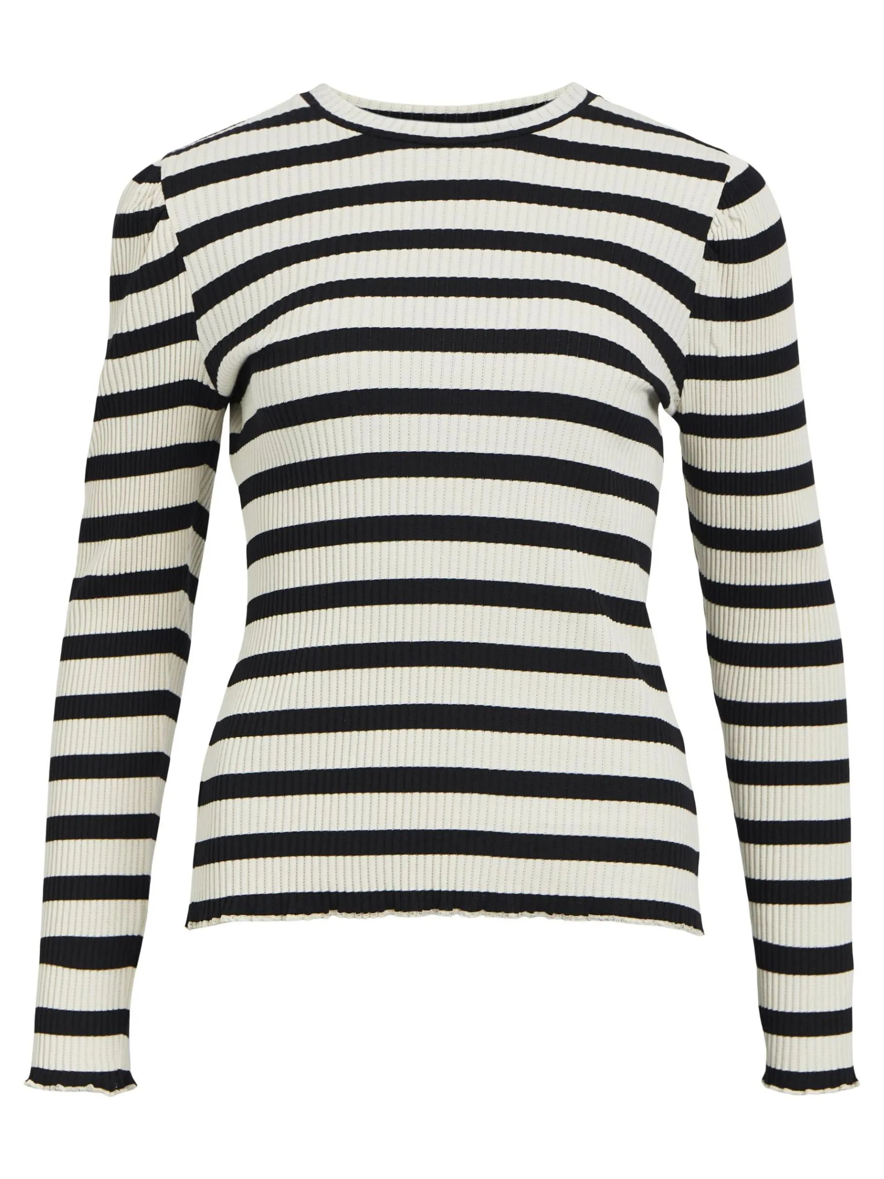 -Ribbet langærmet top-Stofsamlingseffekt i skuldrene-Salatkanter-Rund halsudskæring-Regular fitStylenavn: OBJKILLA