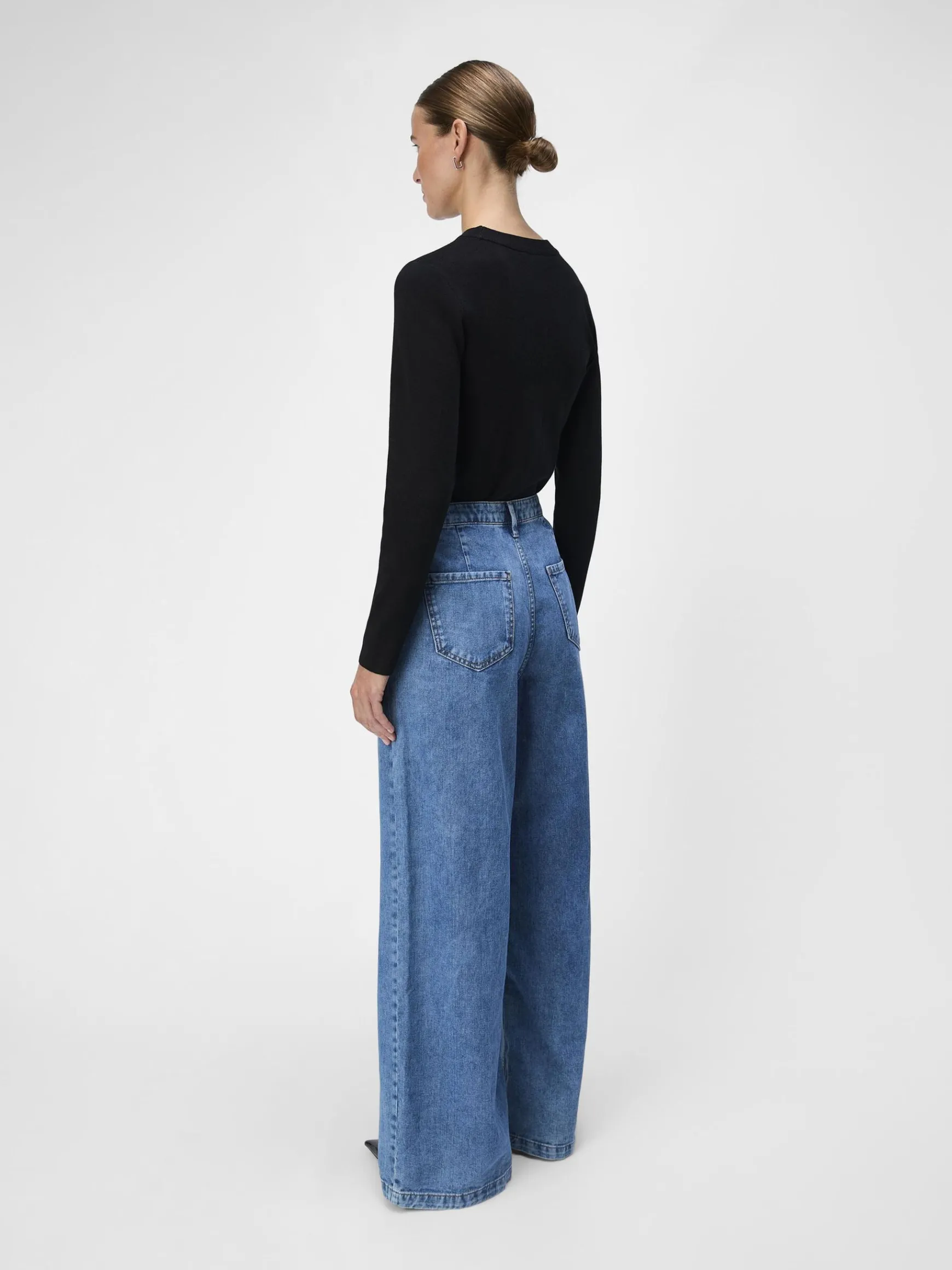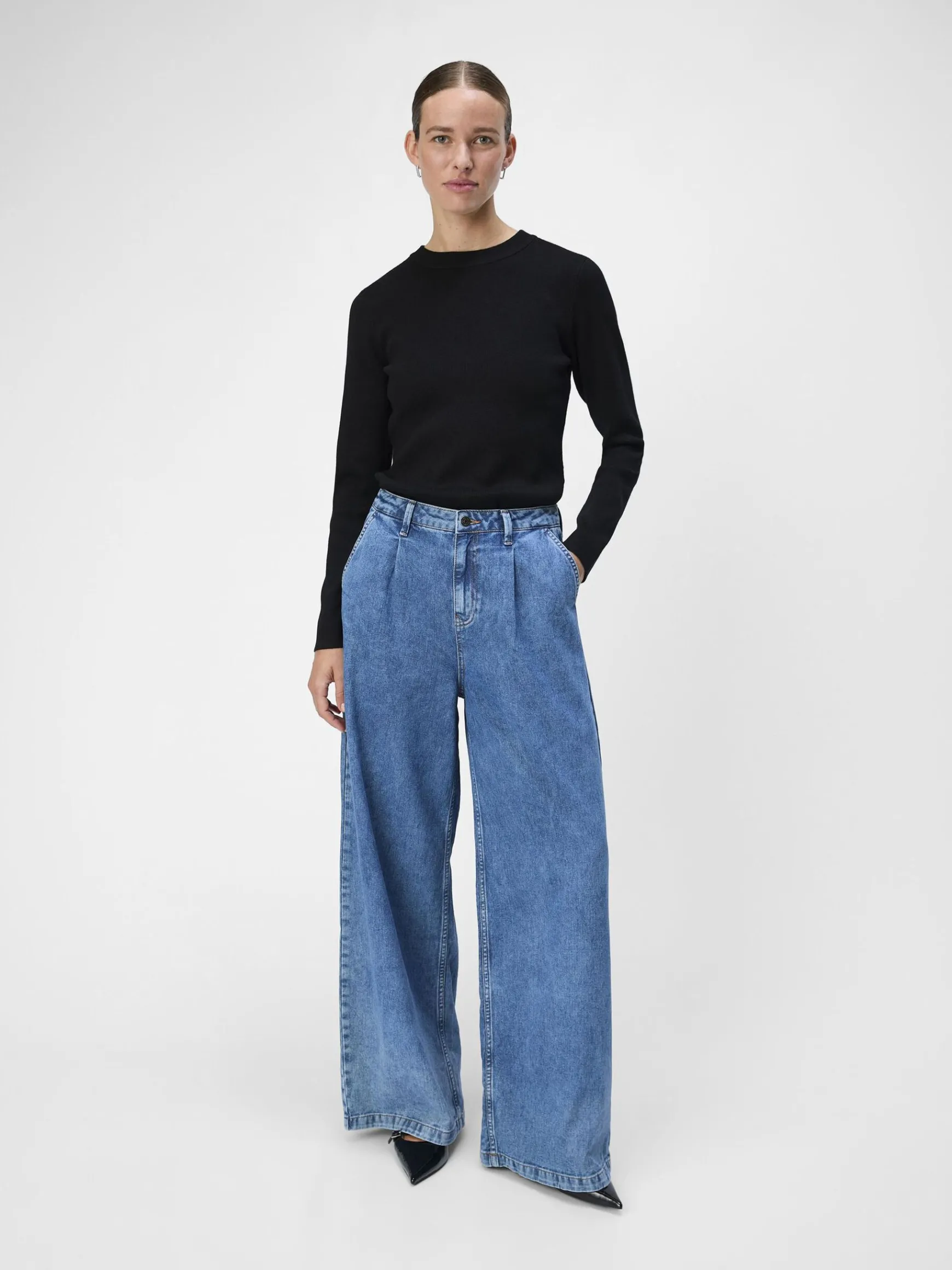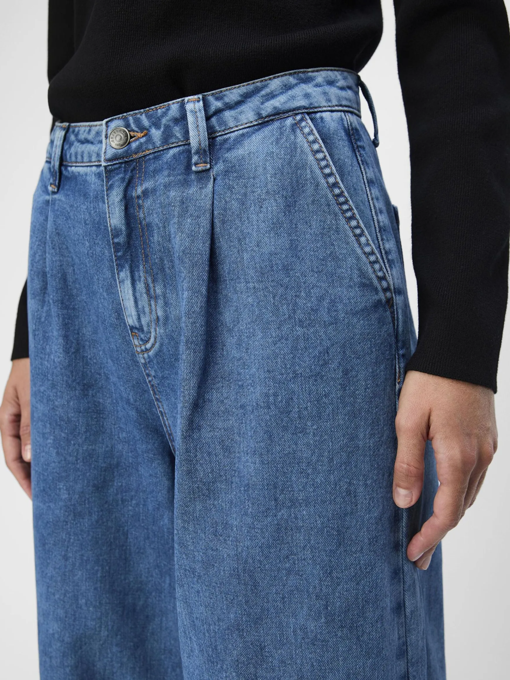 – Wide-fit jeans med plissédetalje foran- Mellemhøj talje- Bæltestropper- Skrå sidelommer- Patch-lomme bagpå- Wide leg fit
