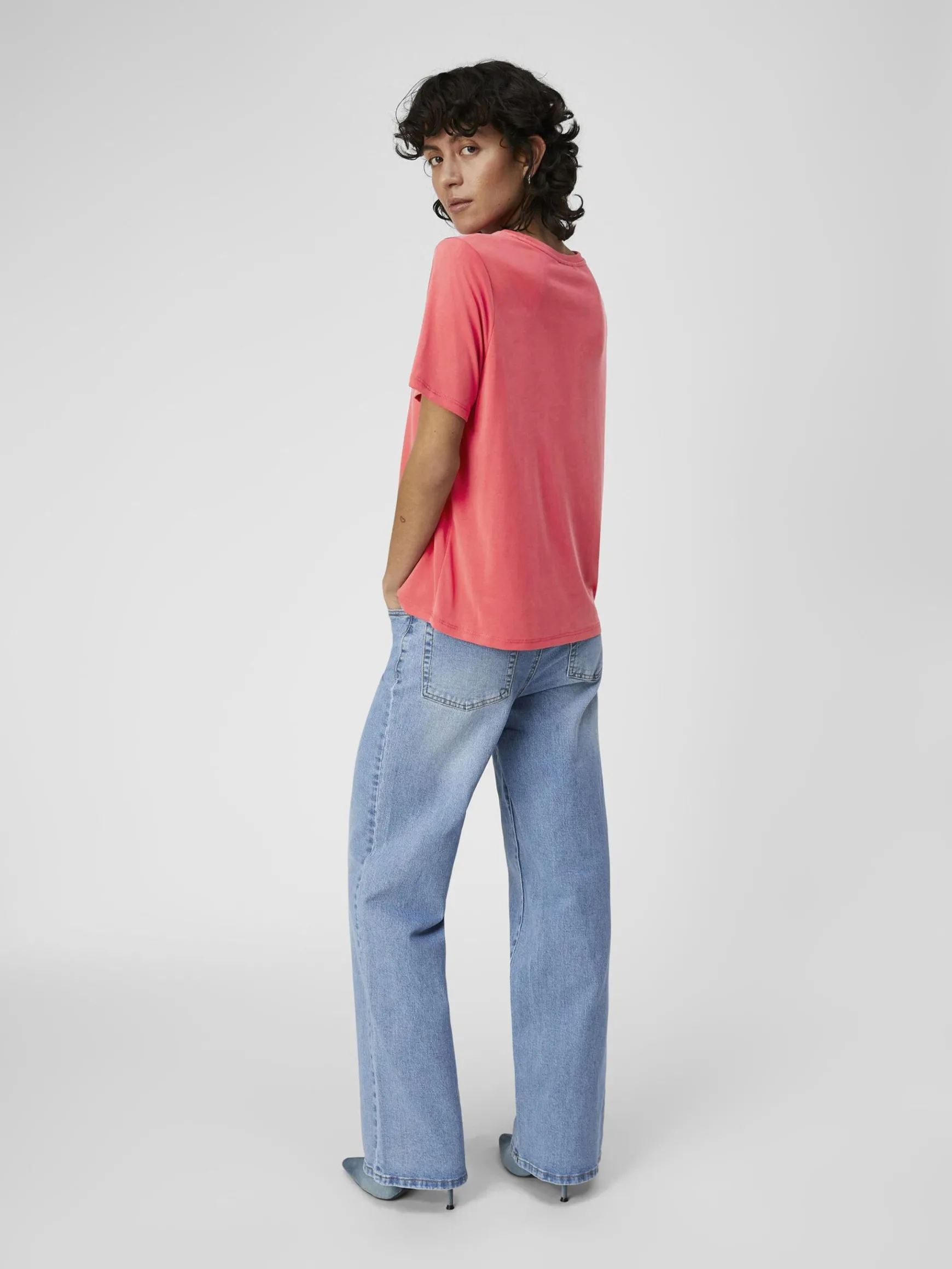 – Enkel t-shirt- Let materiale- O-hals- Længde: 98 cm i str. M – Ærmelængde: 22 cm i str. M- Vores model er 178 cm høj og er iført str. M