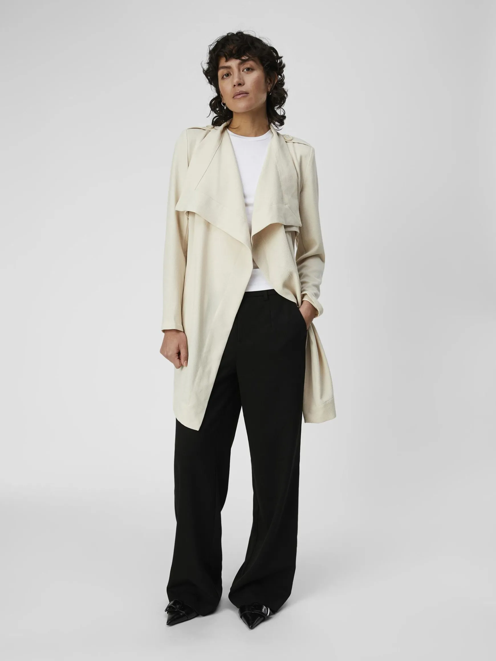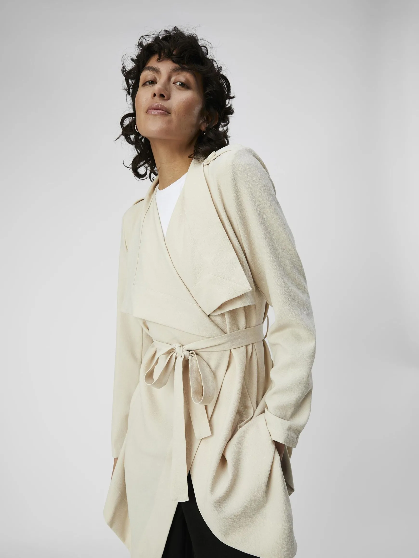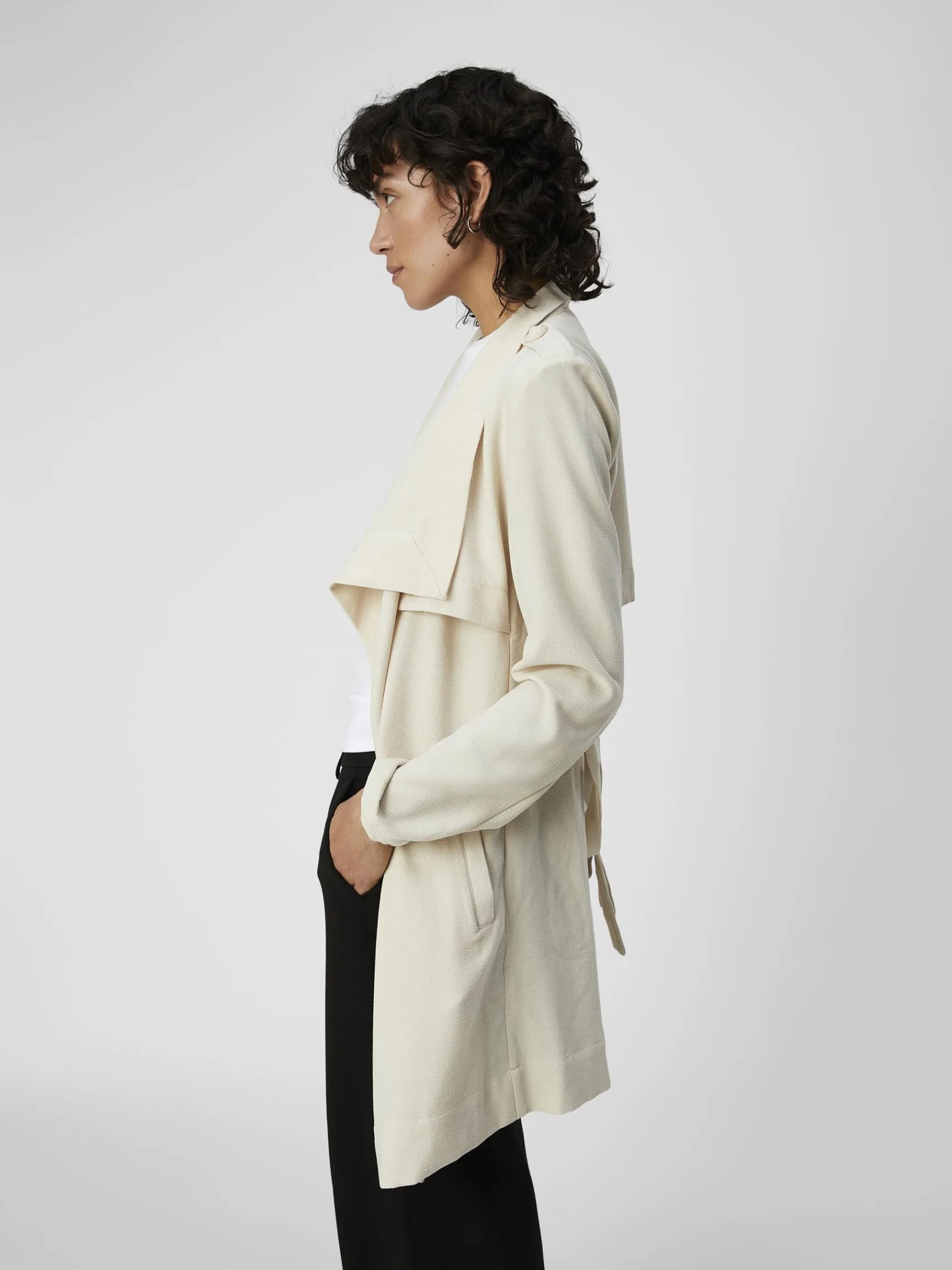 – Stylenavn: OBJANNLEE SHORT JACKET- Klassisk jakke- Bindebånd i taljen- Lommer foran- Skulderpuder- Detalje ved skuldr…