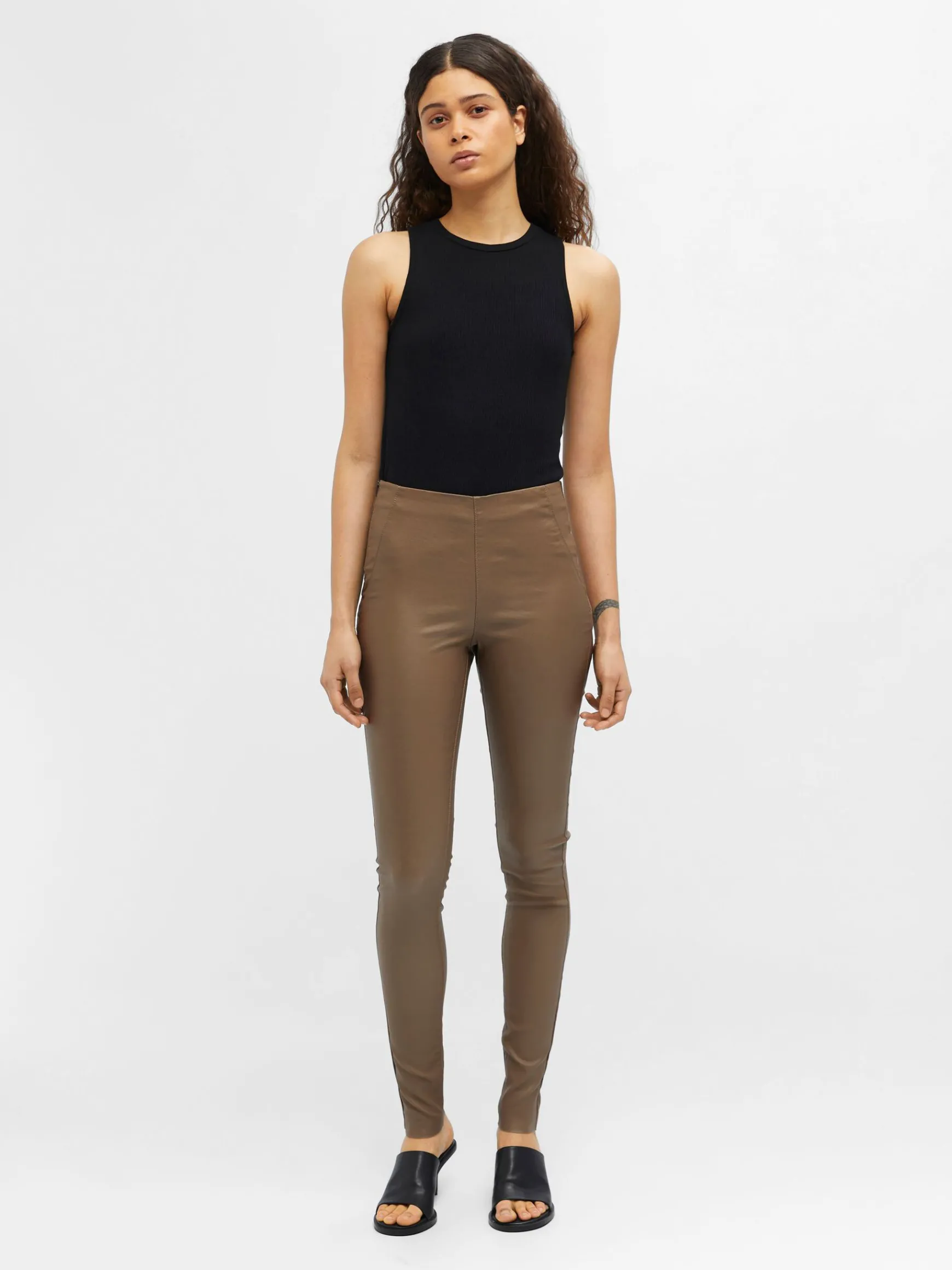 – Mid waisted, coated leggings- Skinnende materiale- Materiale med stræk- Kombineret lynlås- og knaplukning- Skridtsøm: 25 cm i str. 38- Indvendig benlængde: 81 cm i str. 38- Vores model er 178 cm høj og er iført str. 38