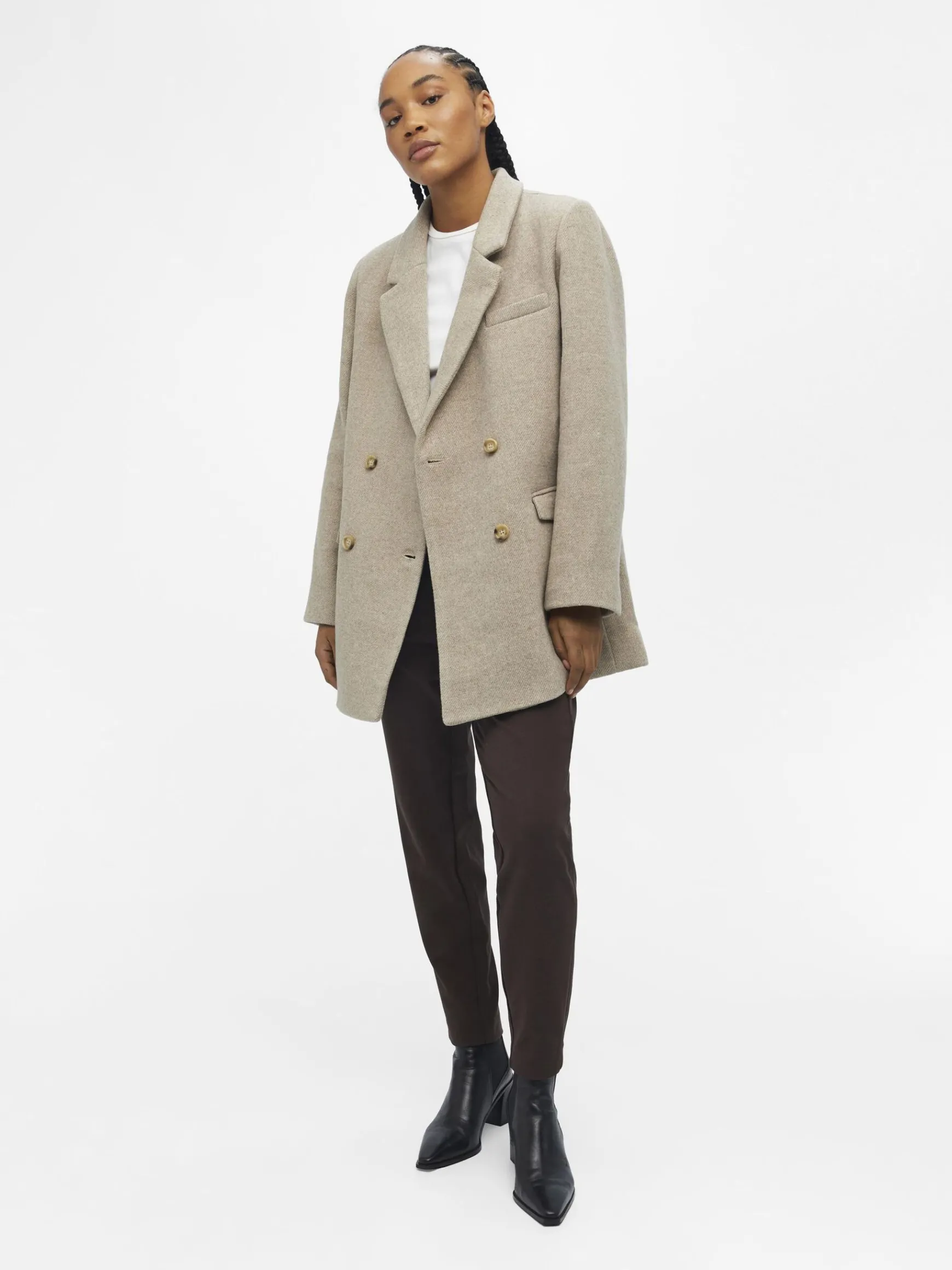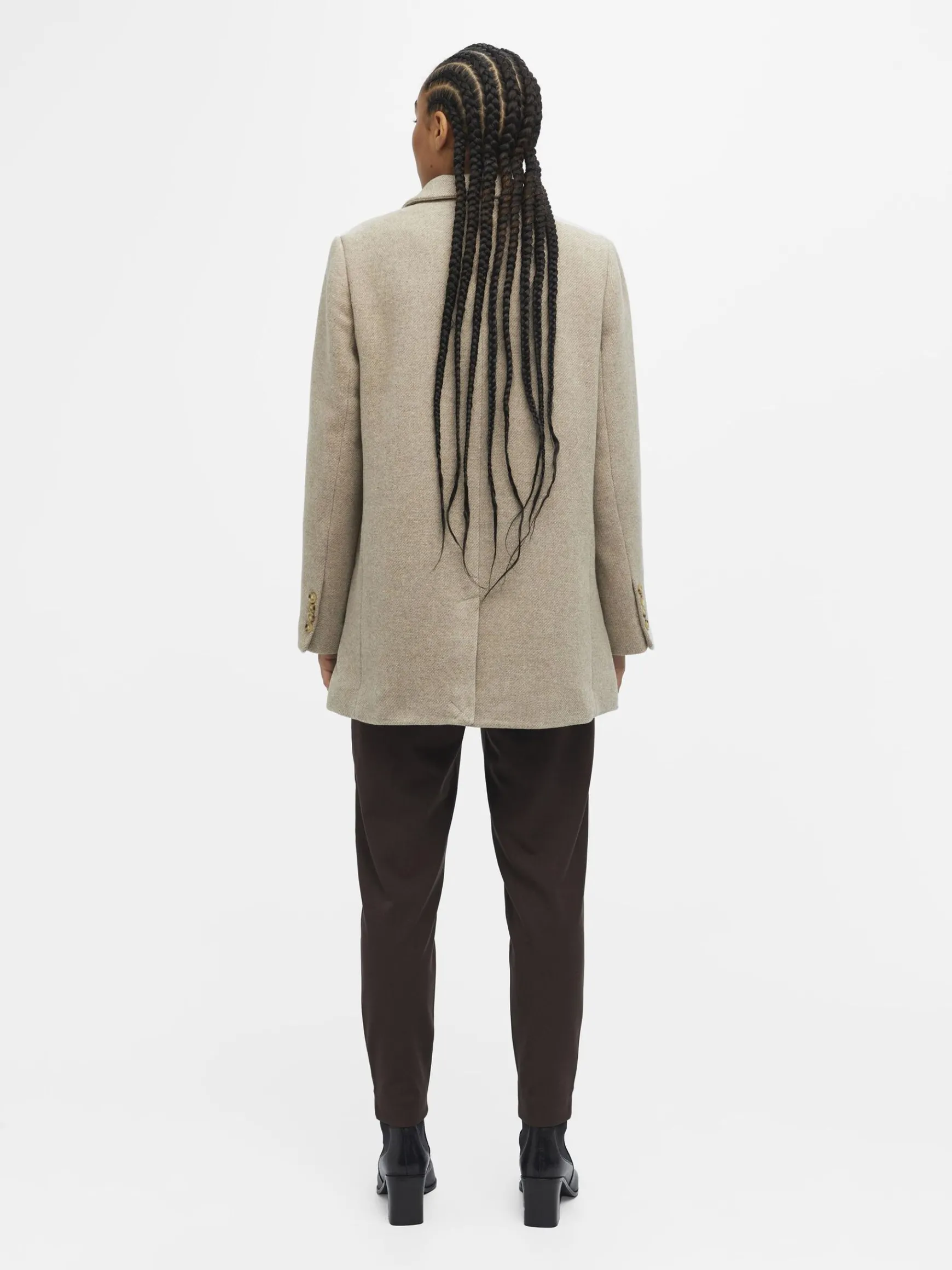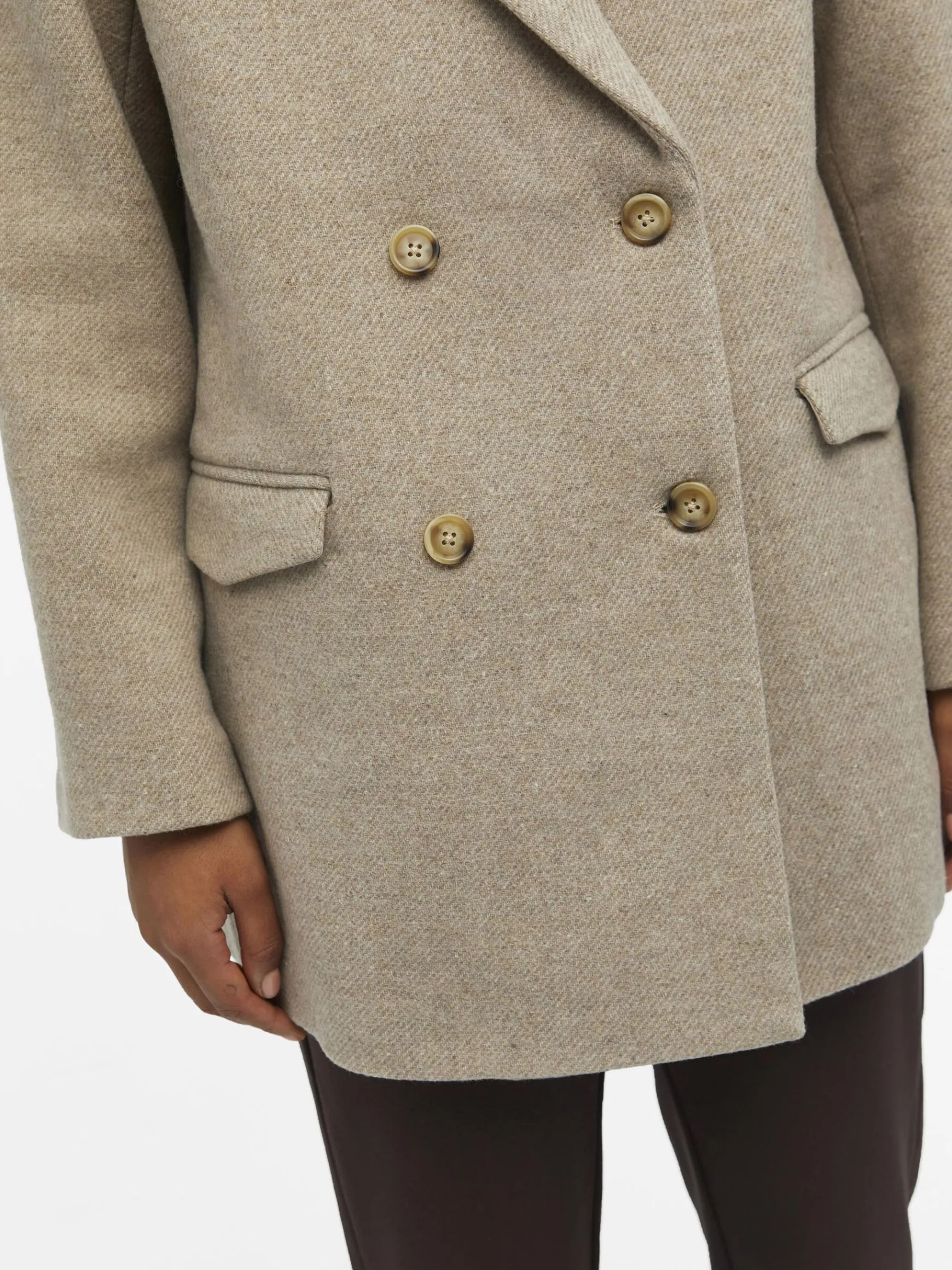 – Dobbeltradet- Hakket revers- Lange ærmer- Paspoleret brystlomme- Lukkes med knapper med skildpaddemønster- Stolpelommer foran med flapper- Firkantet pasform- Modellen er iført størrelse 36- Denne models højde er 173 cm