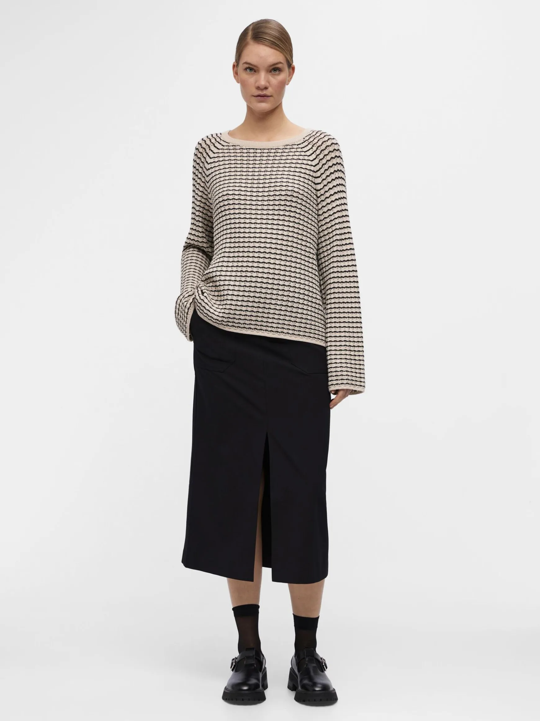 – Trøje med all-over strikket mønster- Rund halsudskæring- Lange løse raglanærmer- Aflangt fit- Fremstillet med mere ansvarligt stof