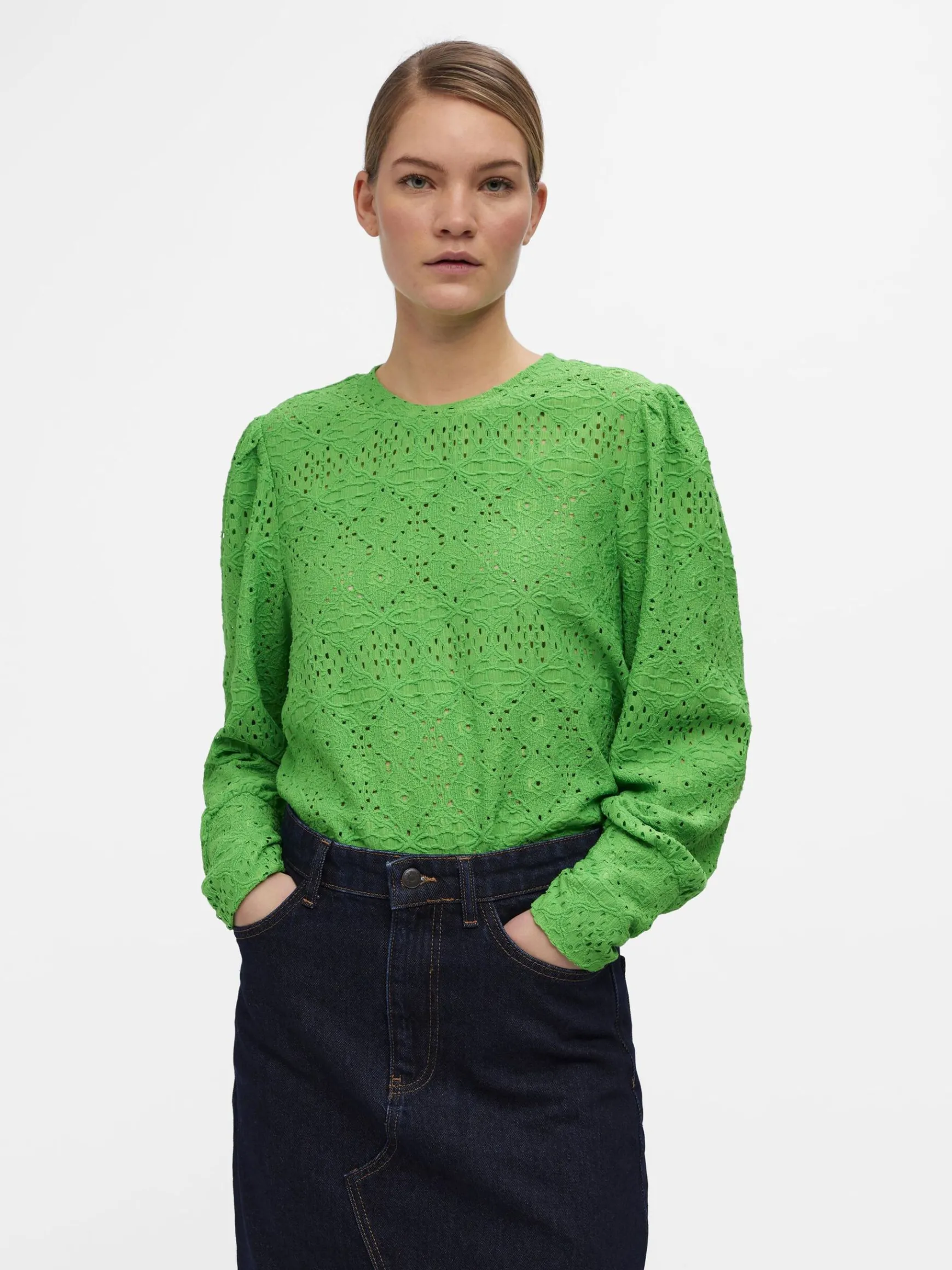 – Rund halsudskæring- Lange ballonærmer- Lange tætsiddende ærmekanter- Detalje med nåledråbe- Almindelig pasform- Fremstillet med mere ansvarligt stof