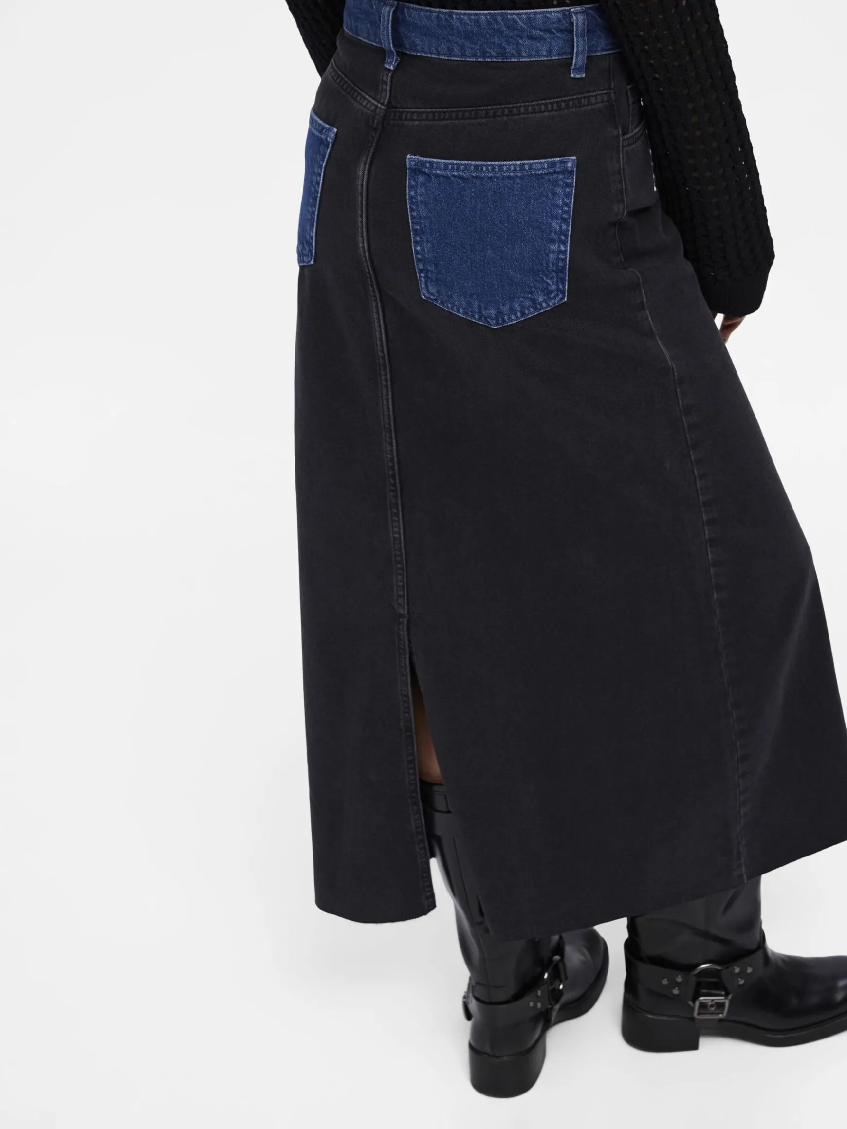 – Højtaljet denim-maxinederdel- A-form- Design med 5 lommer- Slidsdetalje bagpå- Lynlås i gylp med knaplukning- Almindelig pasform- Fremstillet med mere ansvarligt stof