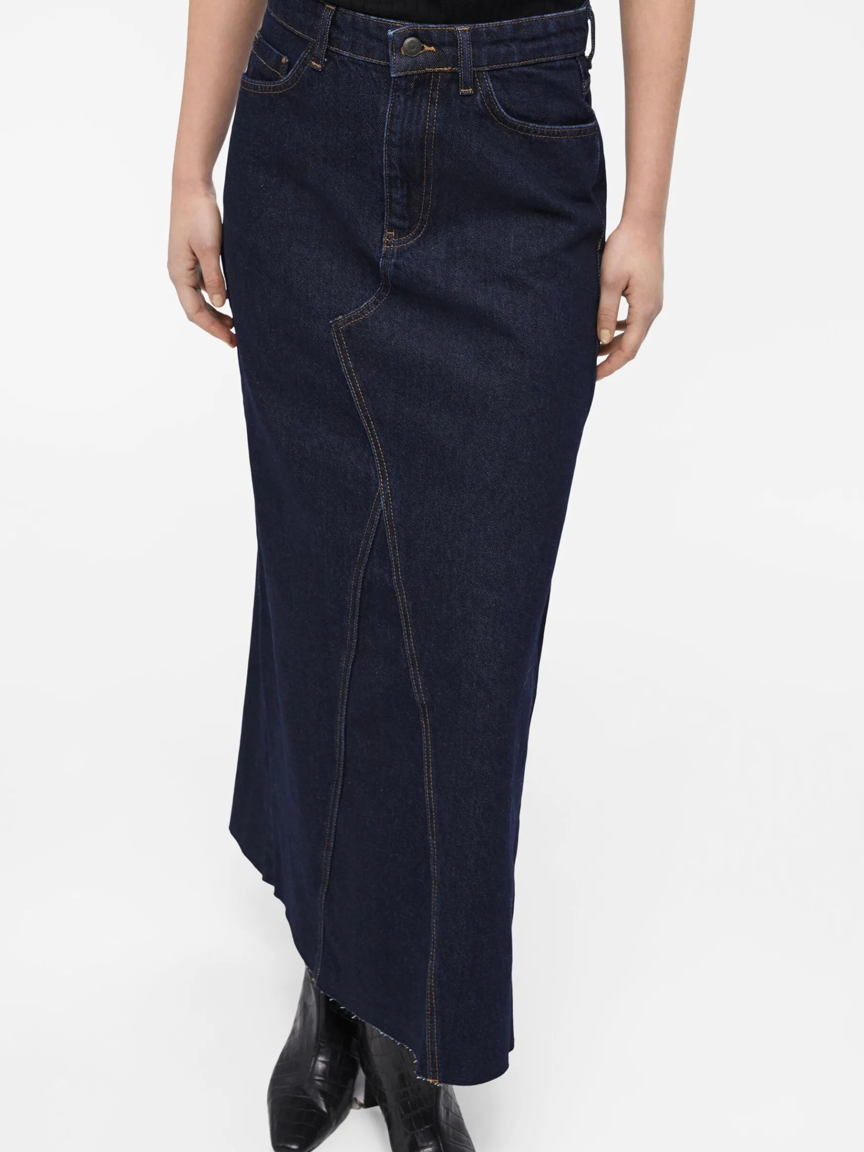 – Højtaljet denim-maxinederdel- A-form- Design med 5 lommer- Slidsdetalje bagpå- Lynlås i gylp med knaplukning- Almindelig pasform- Fremstillet med mere ansvarligt stof