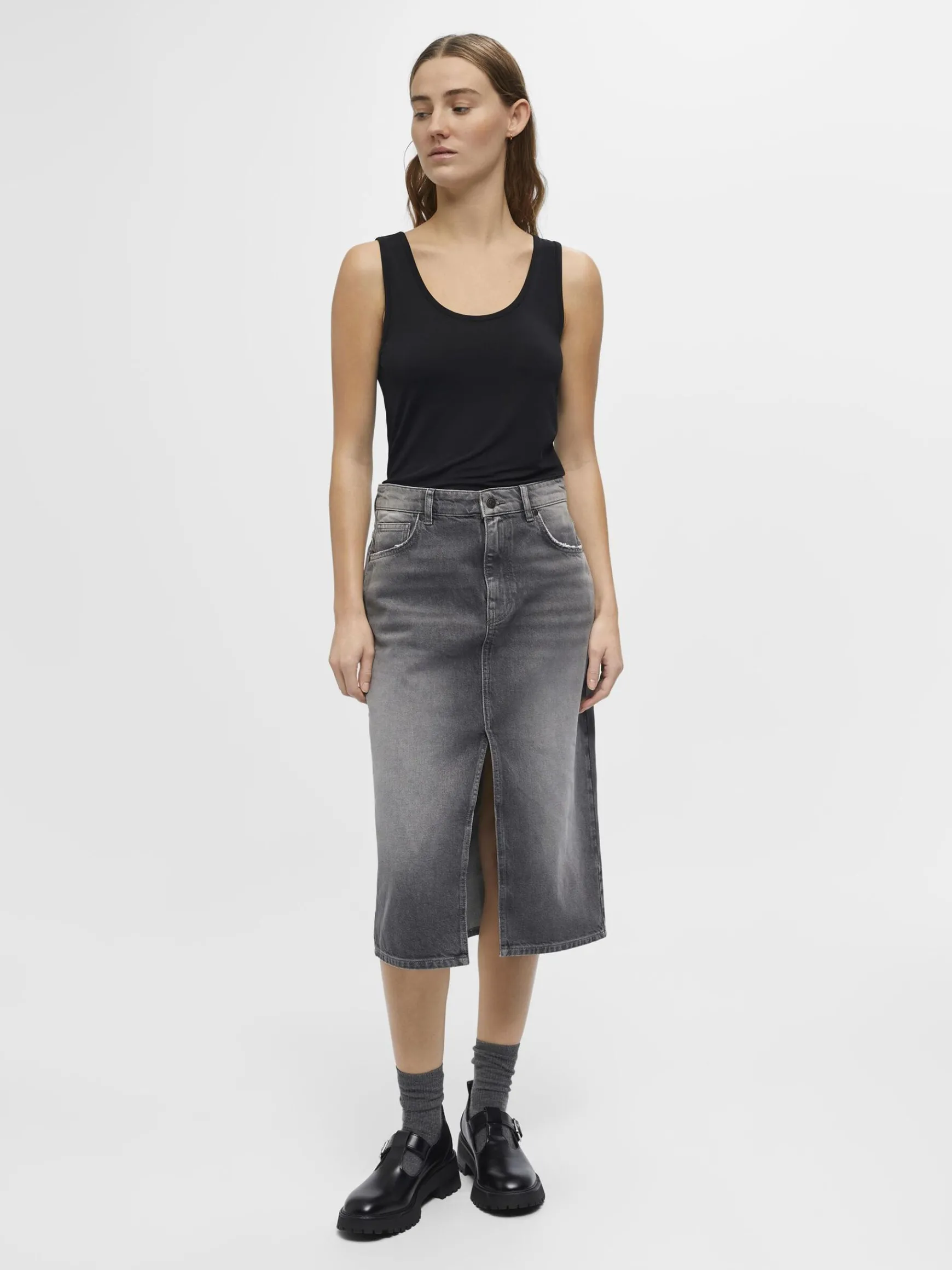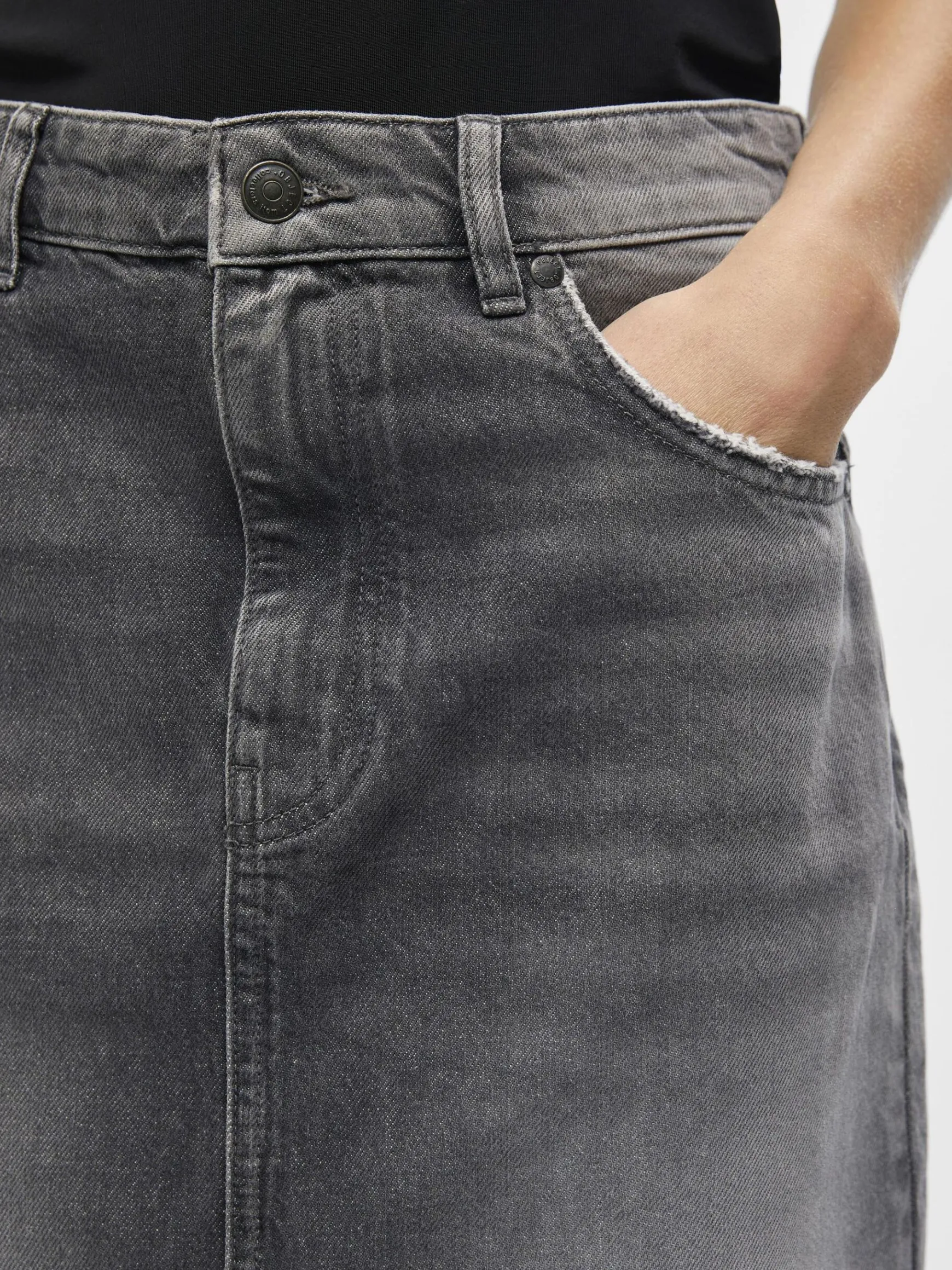 – Højtaljet denim-midinederdel- Lyseblå vask med falmede detaljer- Design med 5 lommer- Slidsdetalje foran- Lynlås i gylp med knaplukning- Almindelig pasform- Fremstillet med mere ansvarligt stof