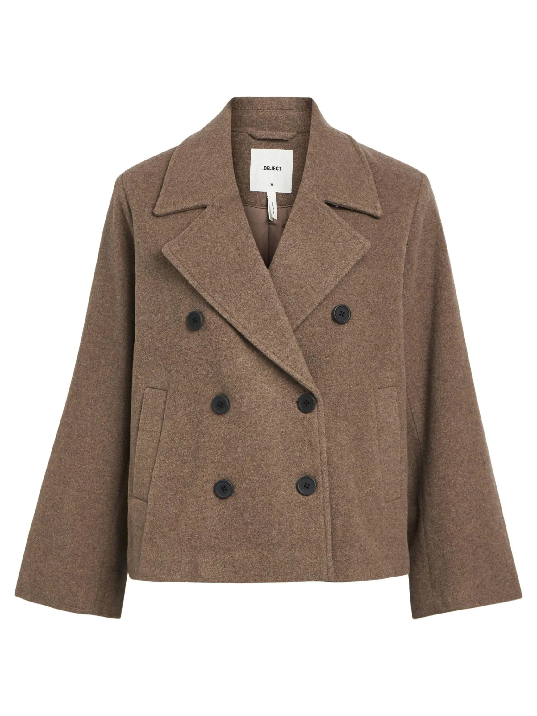 – Dobbeltradet- Notched lapel- Knaplukning- Lange ærmer- Oversized manchetter- Lommer i siden- Uldblanding- Fuldt foret…