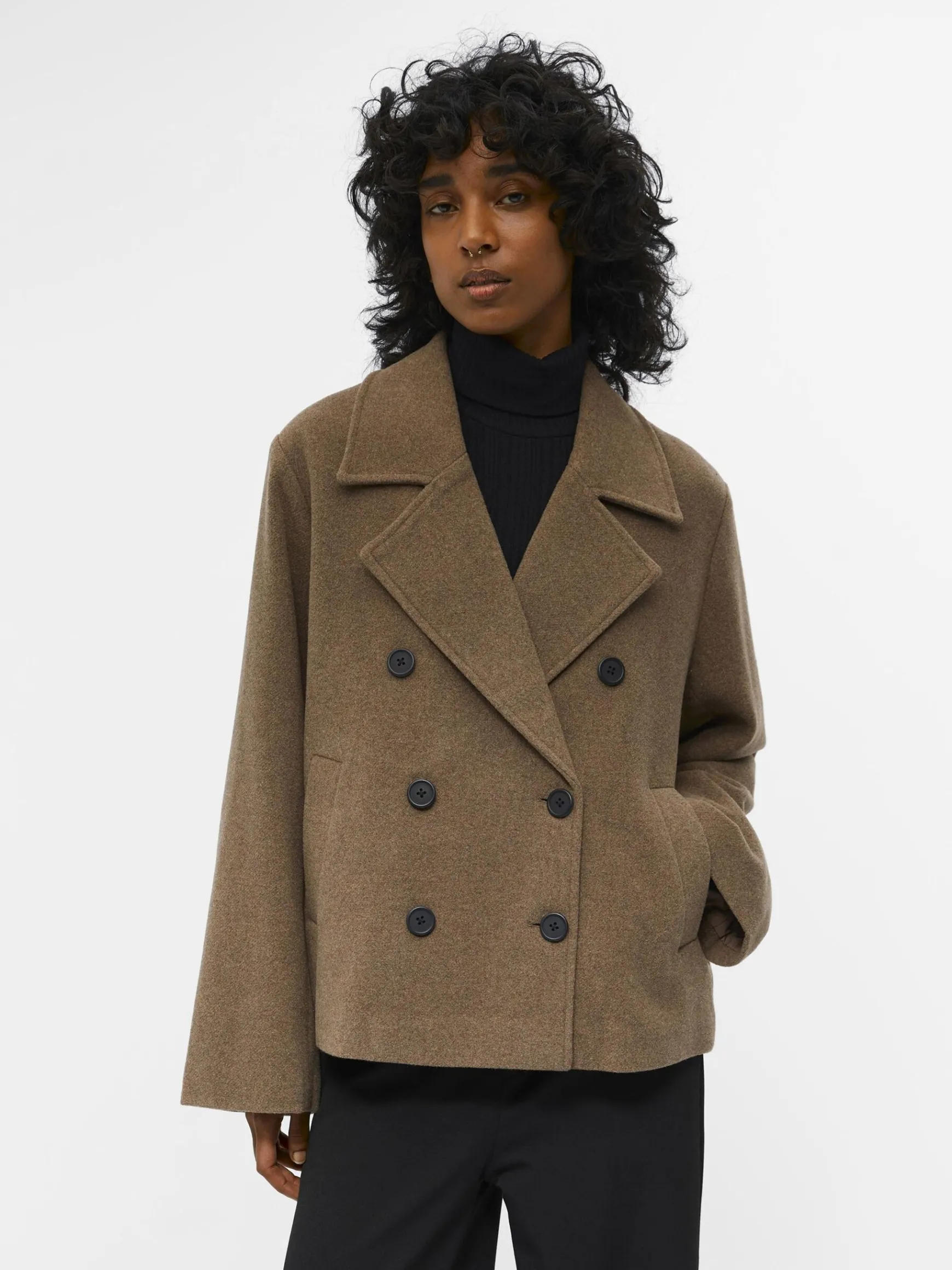 – Dobbeltradet- Notched lapel- Knaplukning- Lange ærmer- Oversized manchetter- Lommer i siden- Uldblanding- Fuldt foret- Pasform med struktur- Fremstillet med mere ansvarligt stof- Modellen er iført størrelse 36- Denne models højde er 172 cm