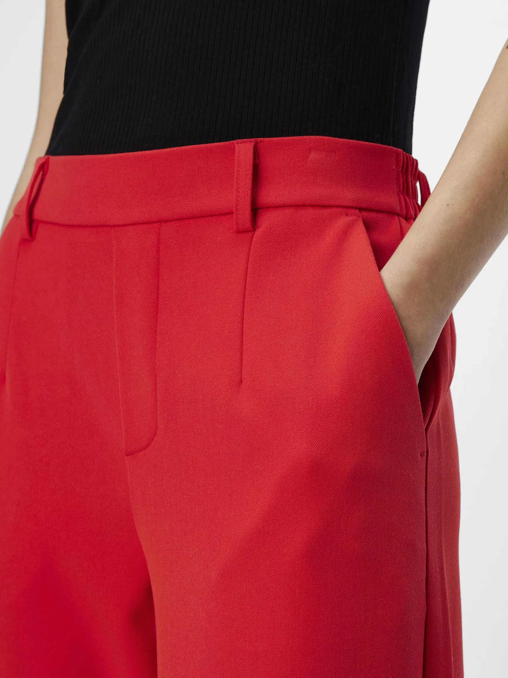 – Mellemhøj talje med elastik- Bæltestropper- Plisseret front- Ankellængde- Denne vare er stor i størrelsen- Lavet i et ansvarligt materiale- Modellen er iført størrelse 36