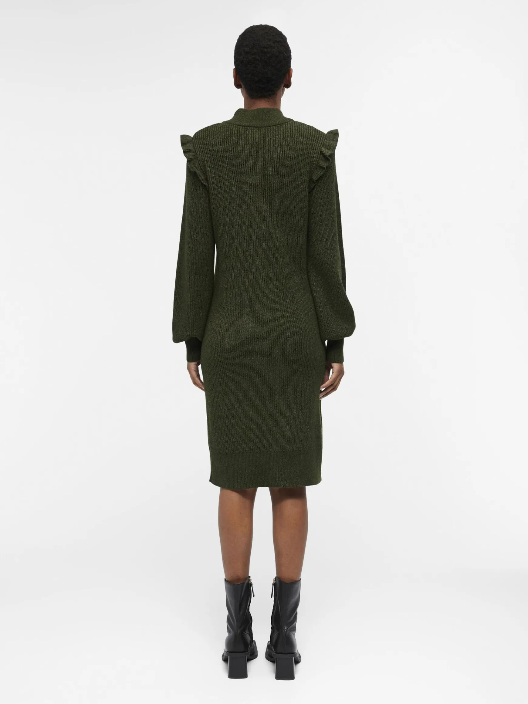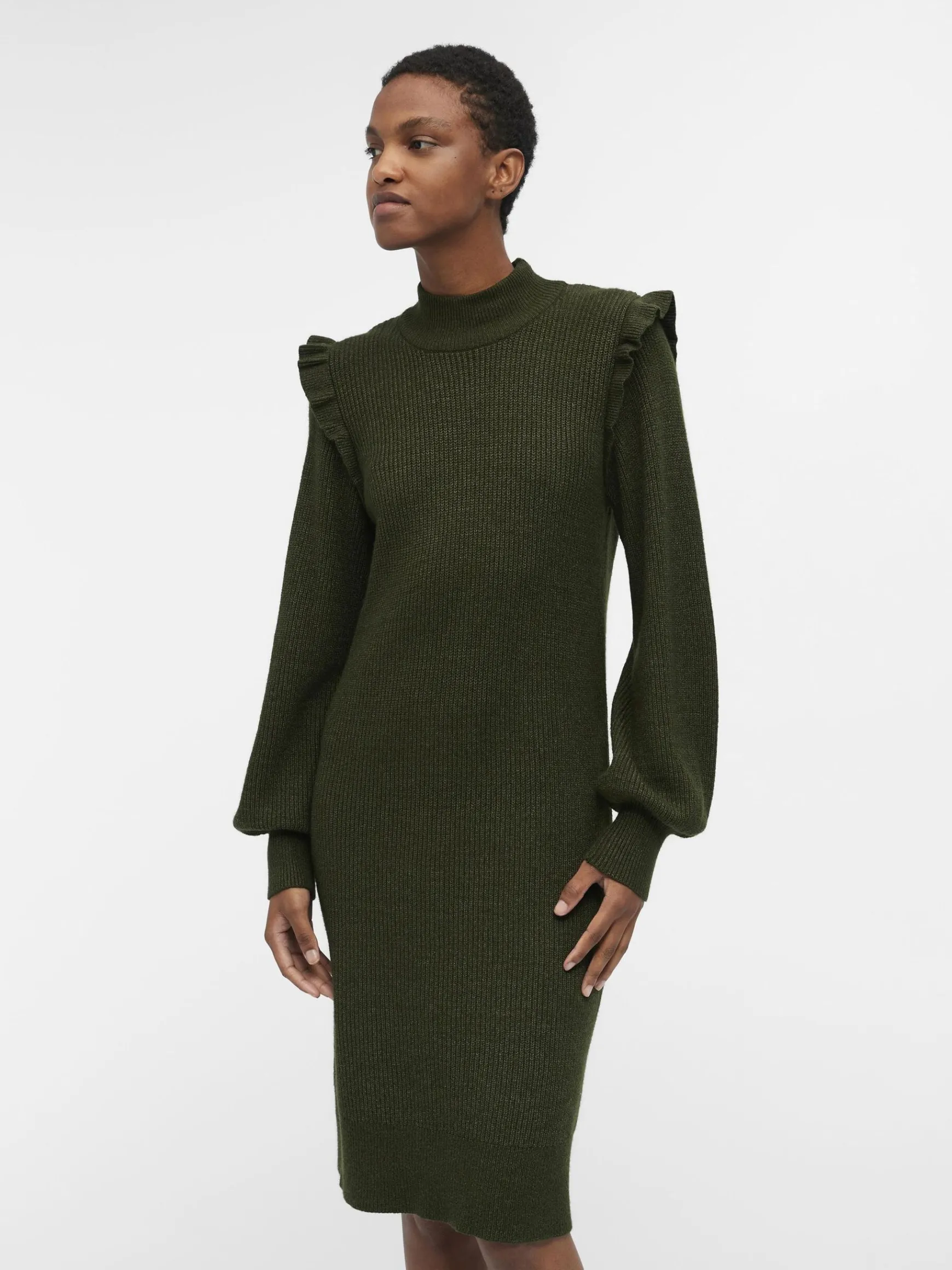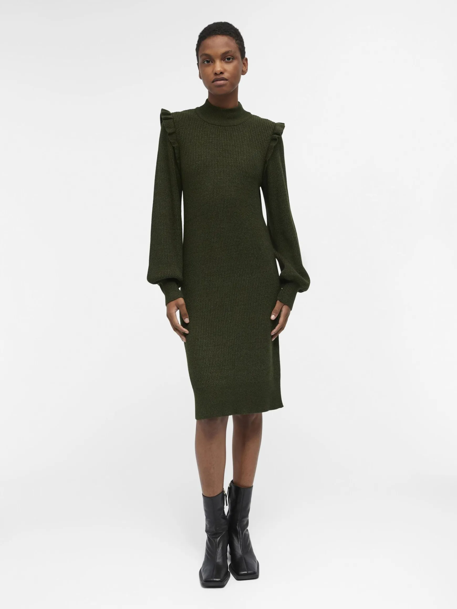 – Strikket midikjole med flæser ved skuldrene- Ballonærmer med aflange ærmekanter- Ribbet tekstur- Afslappet pasform- Fremstillet med mere ansvarligt stof