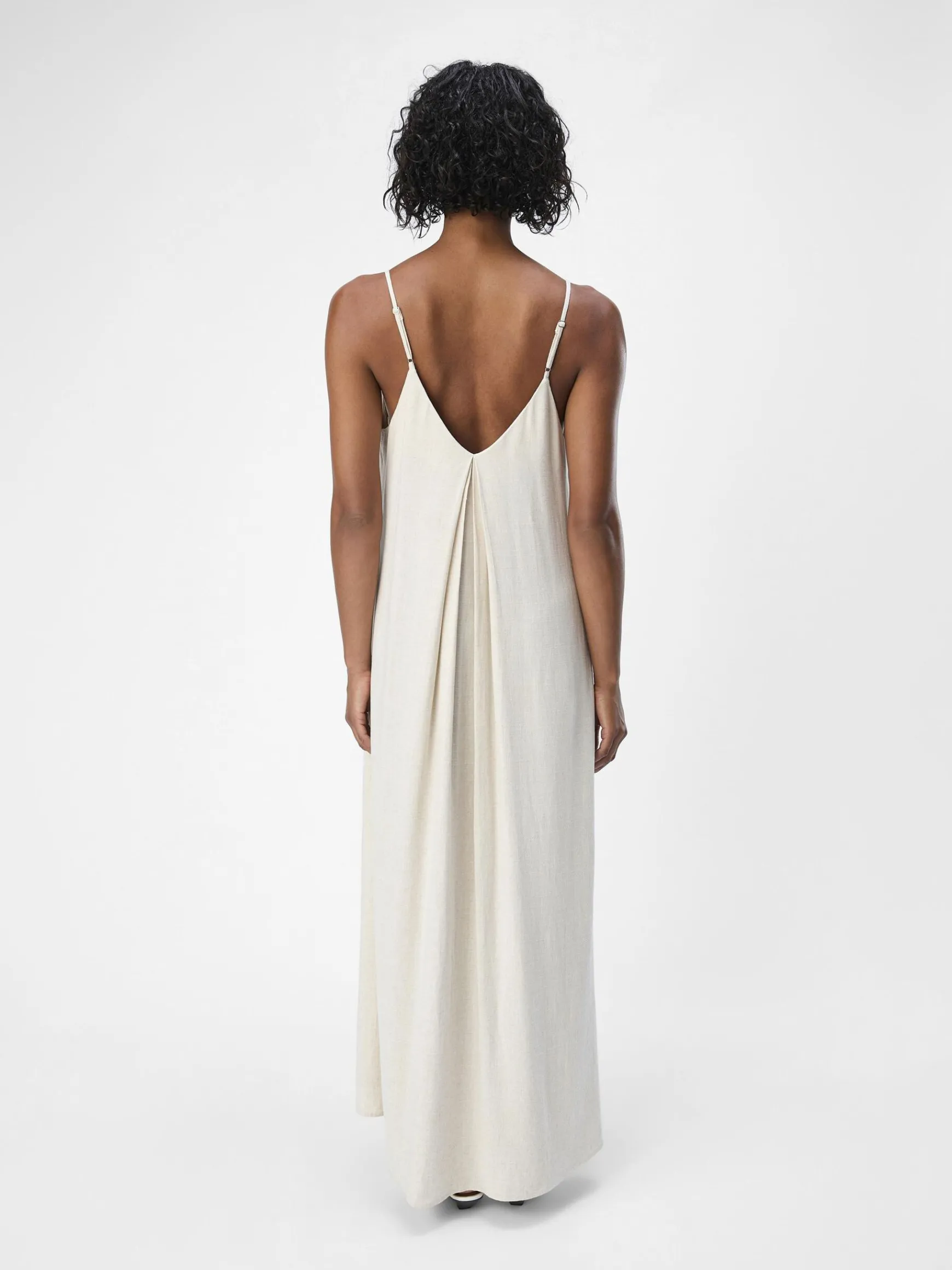 – Maxikjole i hørblanding- V-udskæring foran og bagpå- Justerbare spaghettistropper- Plisseret detalje foran og bagpå- Almindelig pasform- Modellen er iført størrelse 36