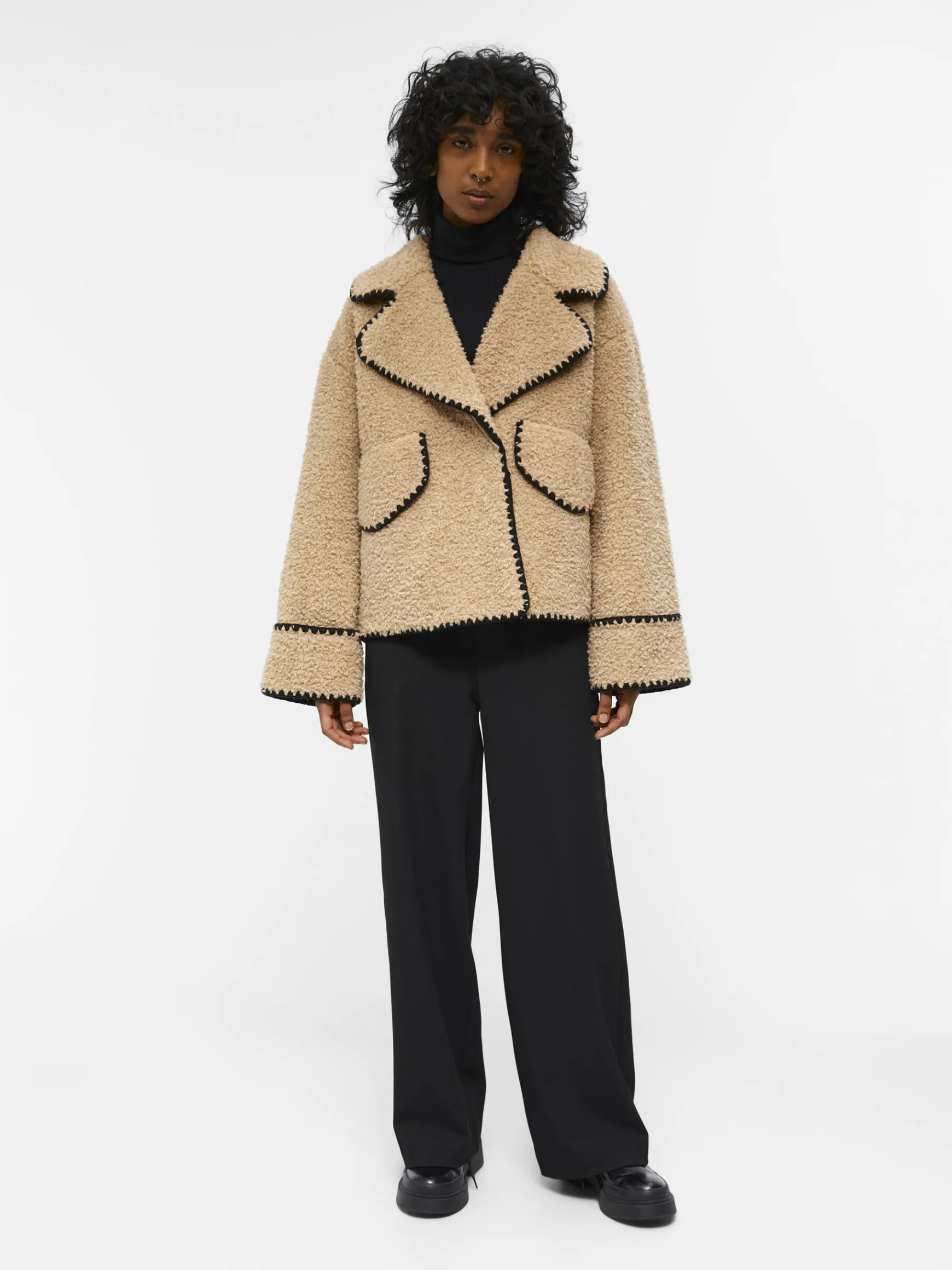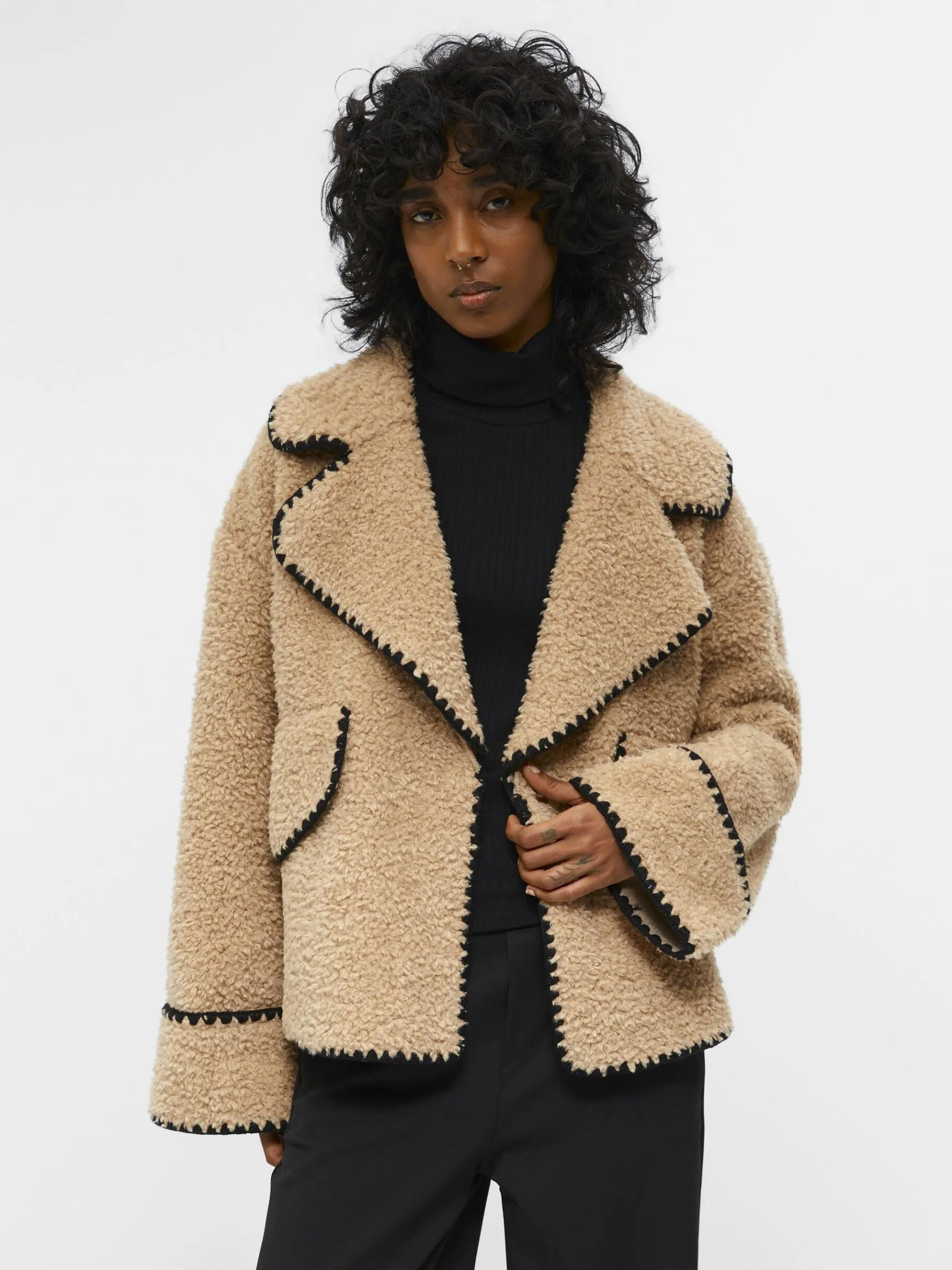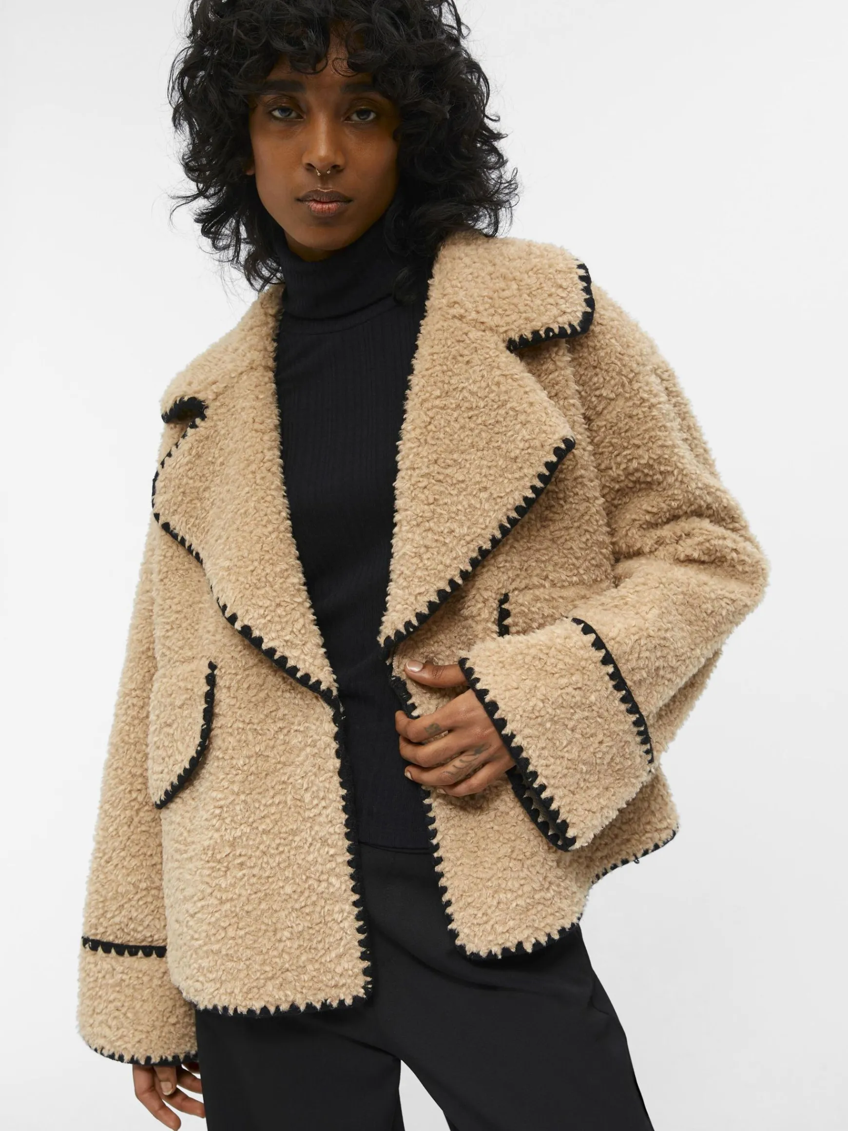 – Kort teddyjakke- Oversized krave med runde kanter- Syninger i kontrast i kanterne- Forlommer med klapper- Lange ærmer…