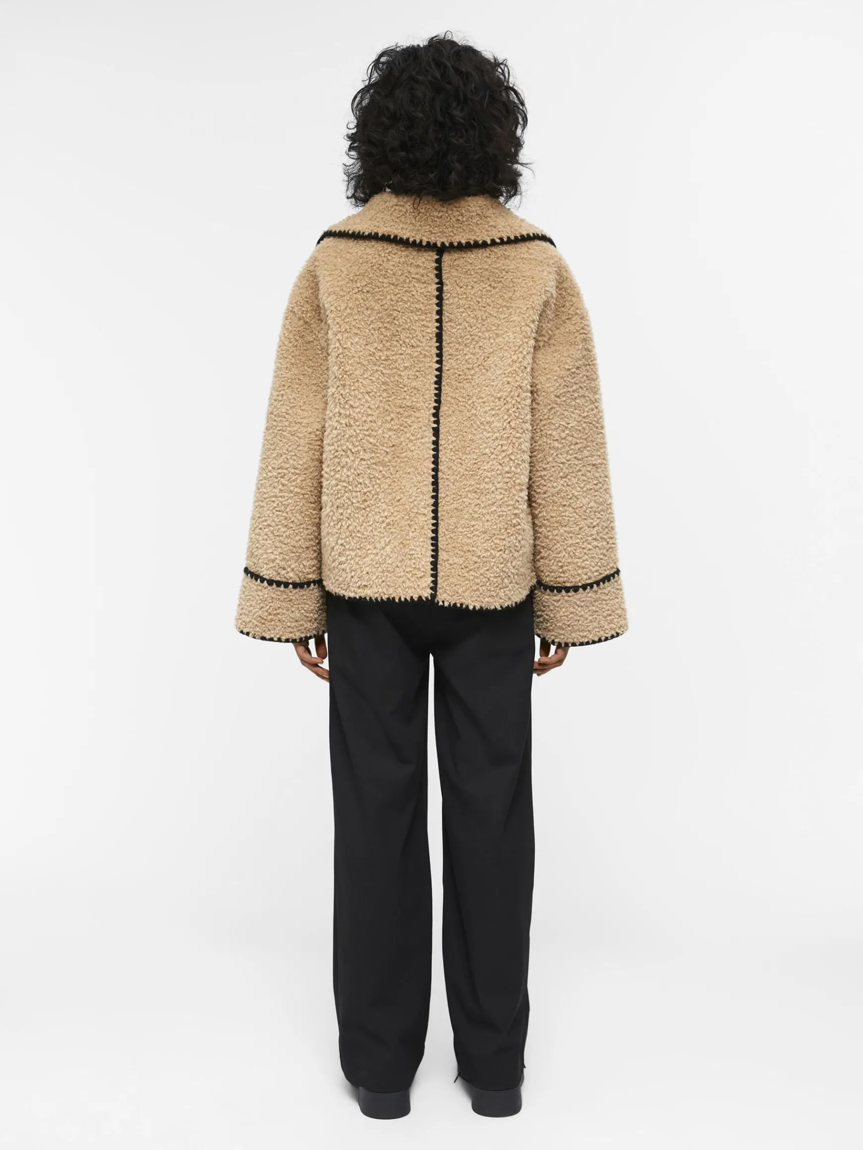 – Kort teddyjakke- Oversized krave med runde kanter- Syninger i kontrast i kanterne- Forlommer med klapper- Lange ærmer med sænkede skuldre- Skjulte trykknapper- Uforet- Afslappet pasform- Modellen er iført størrelse 36