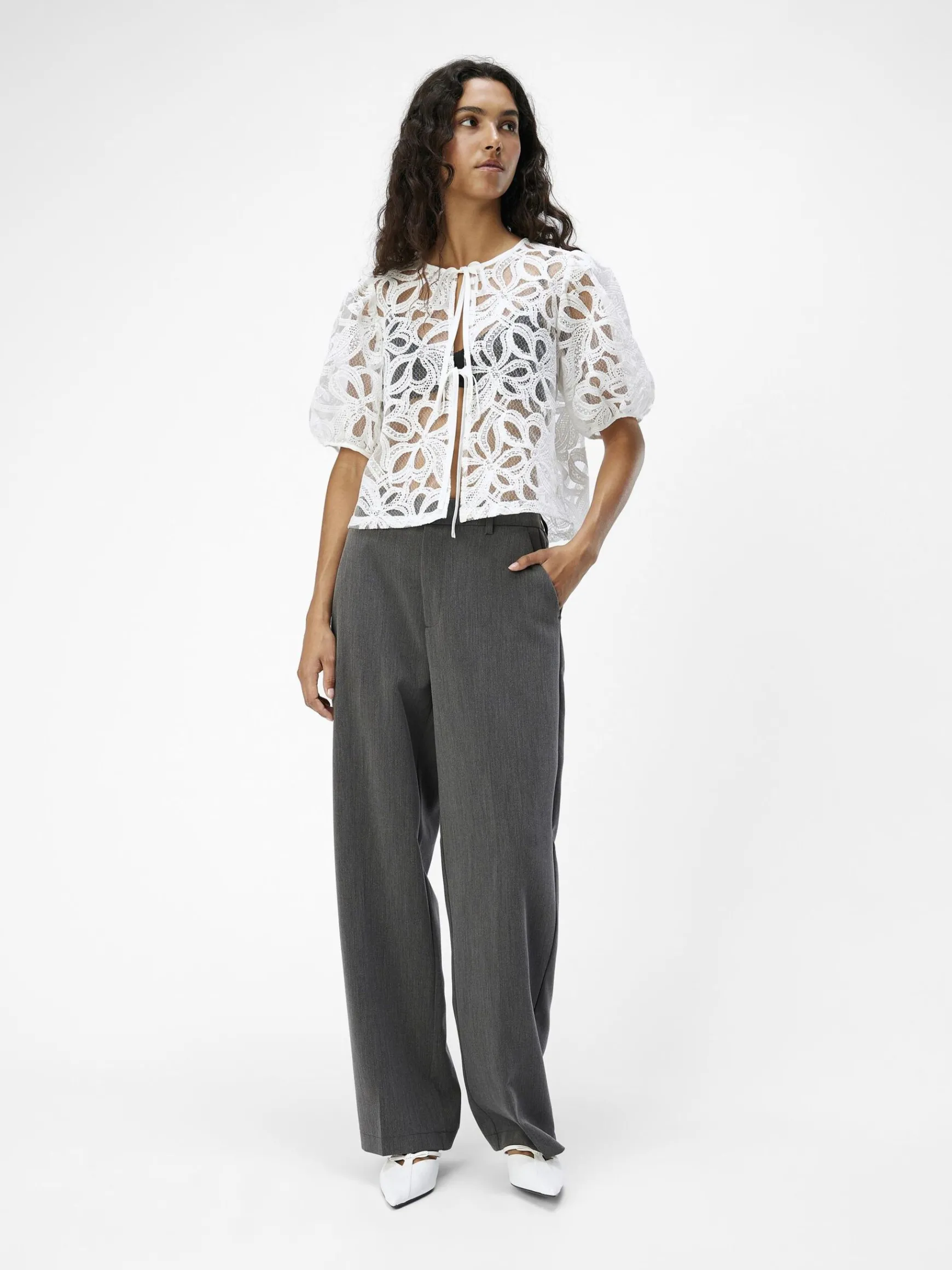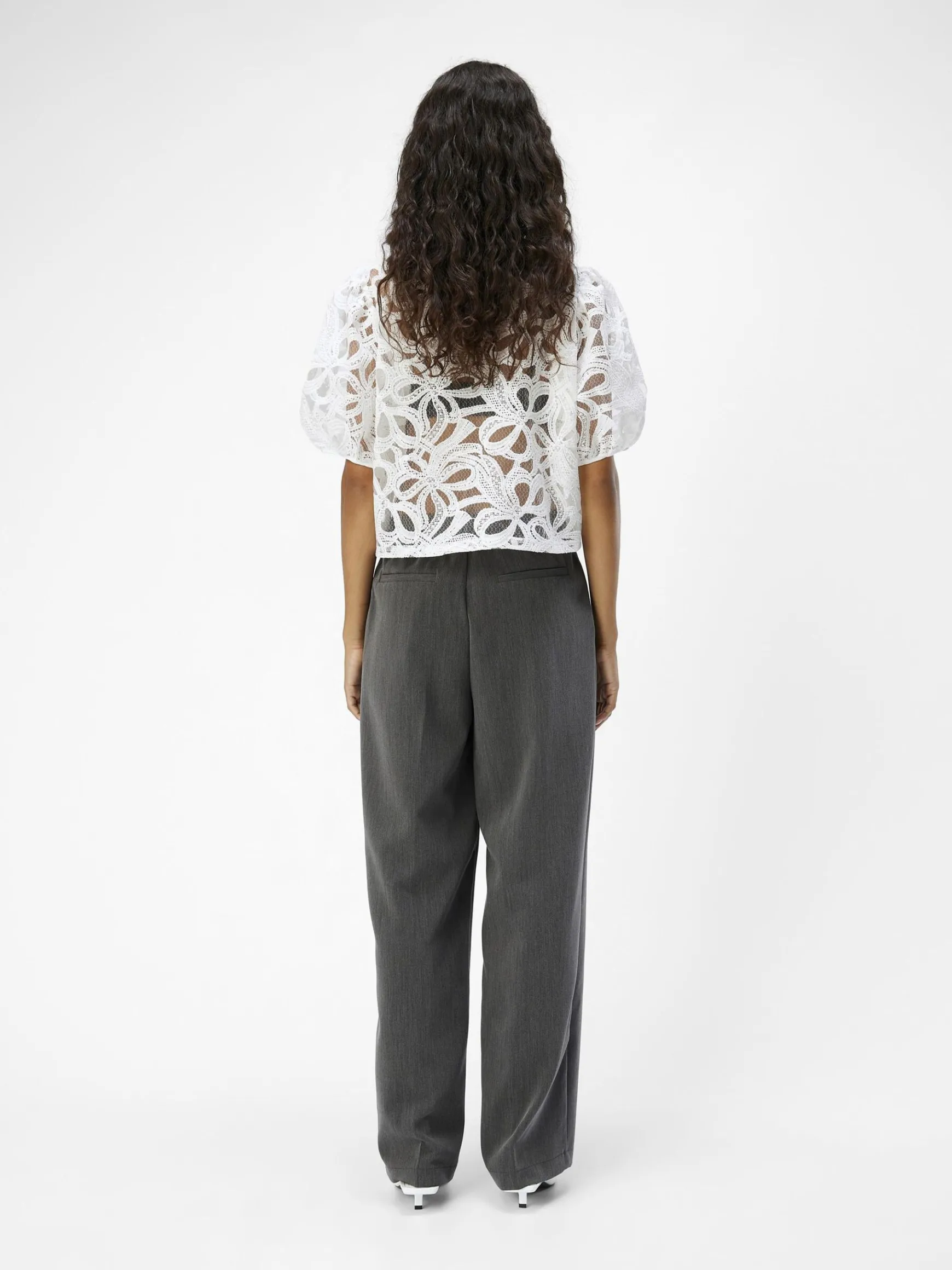 – Mid waist med elastik bagpå- Bæltestropper- Sidelommer i sømmen- Skjult lynlås- Lige ben- Oversized fit- Fremstillet med mere ansvarligt stof