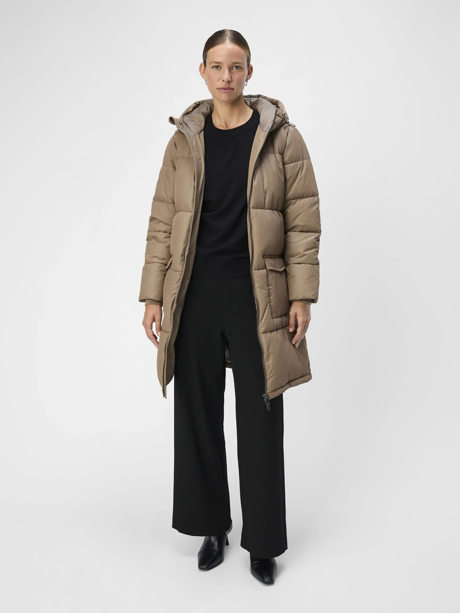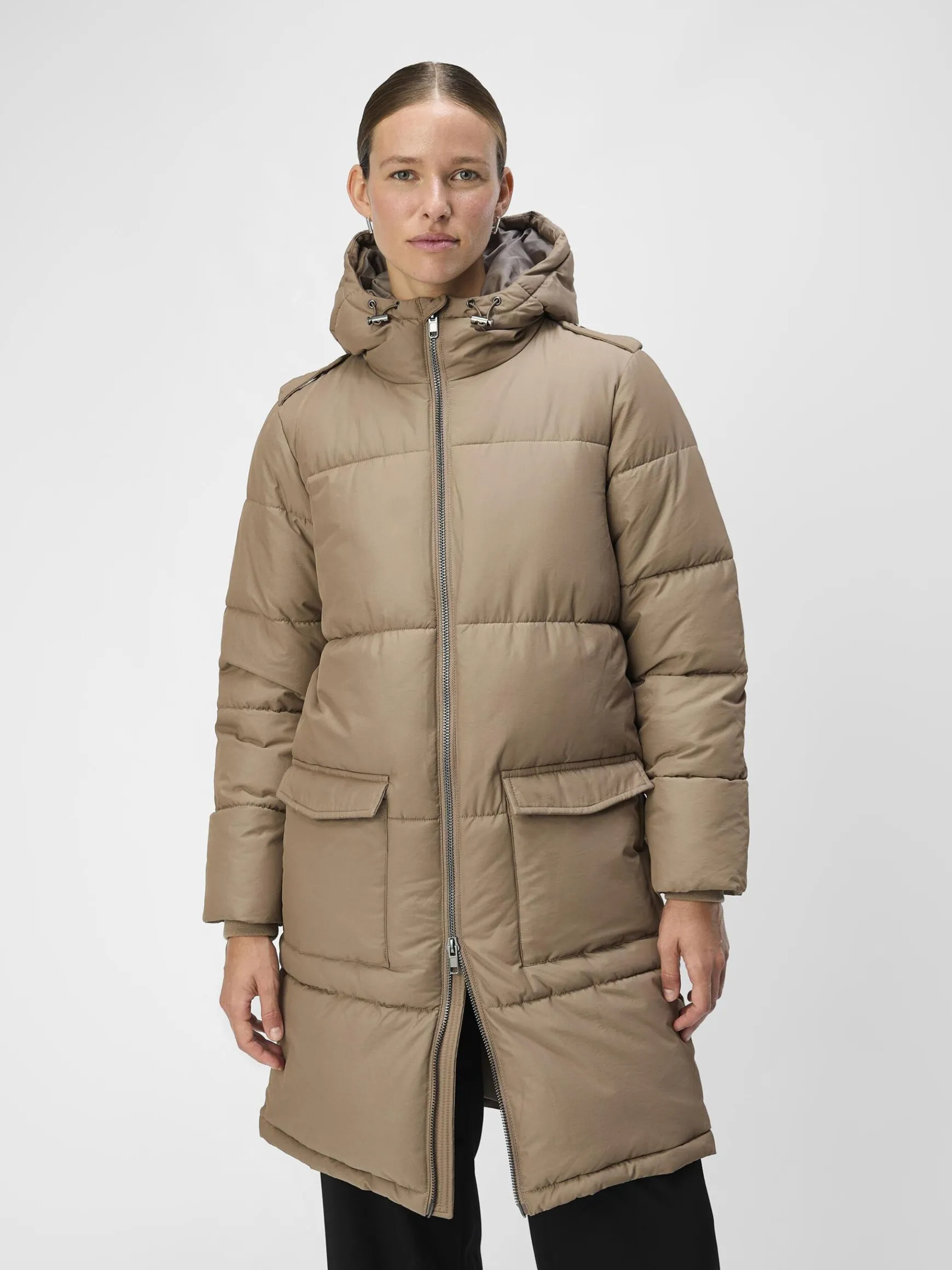 – Quiltet jakke med hætte- To lommer foran- Lynlåslukning- Længde: 97 cm i str. 38 – Ærmelængde: 66 cm i str. 38- V…