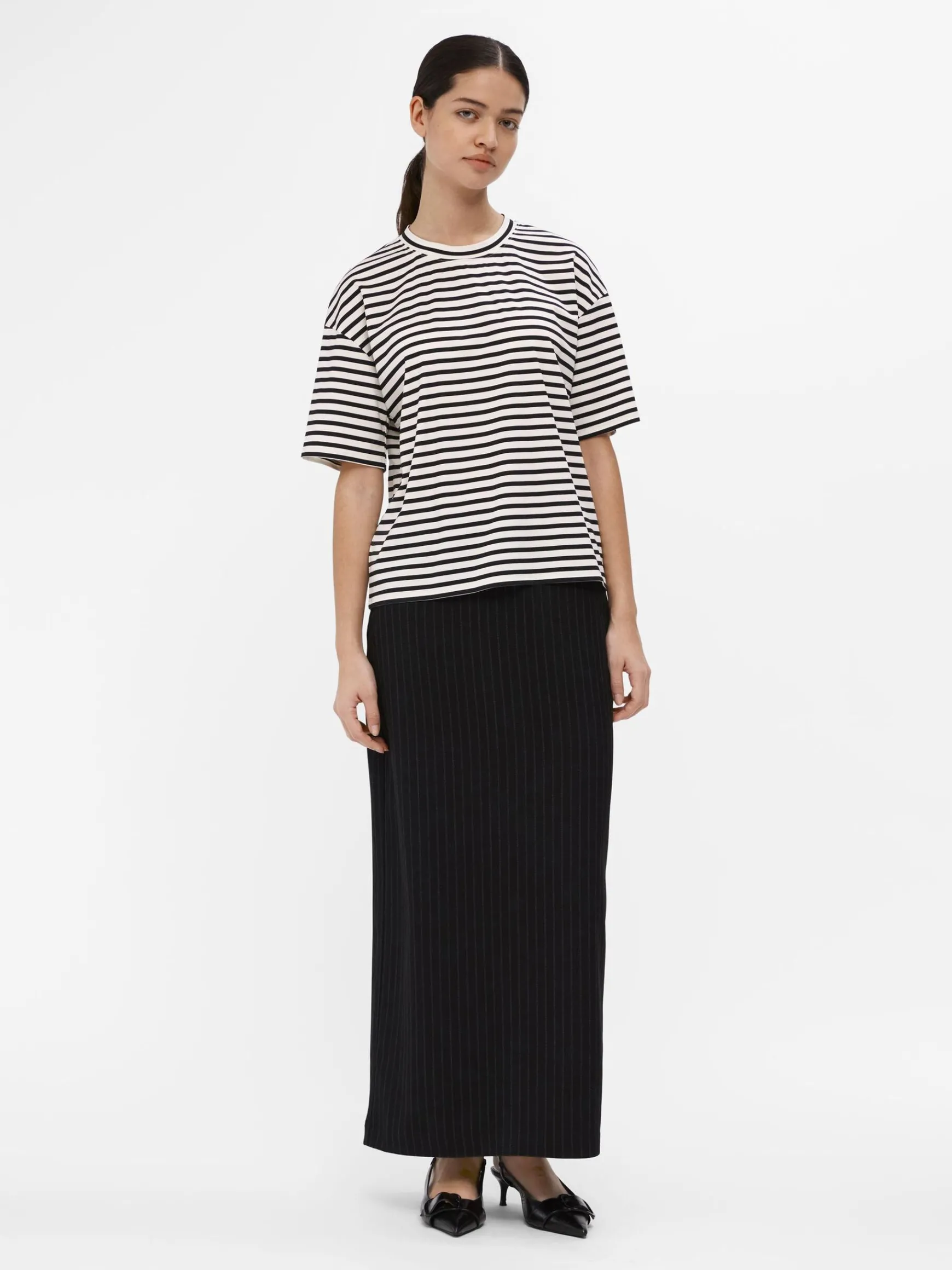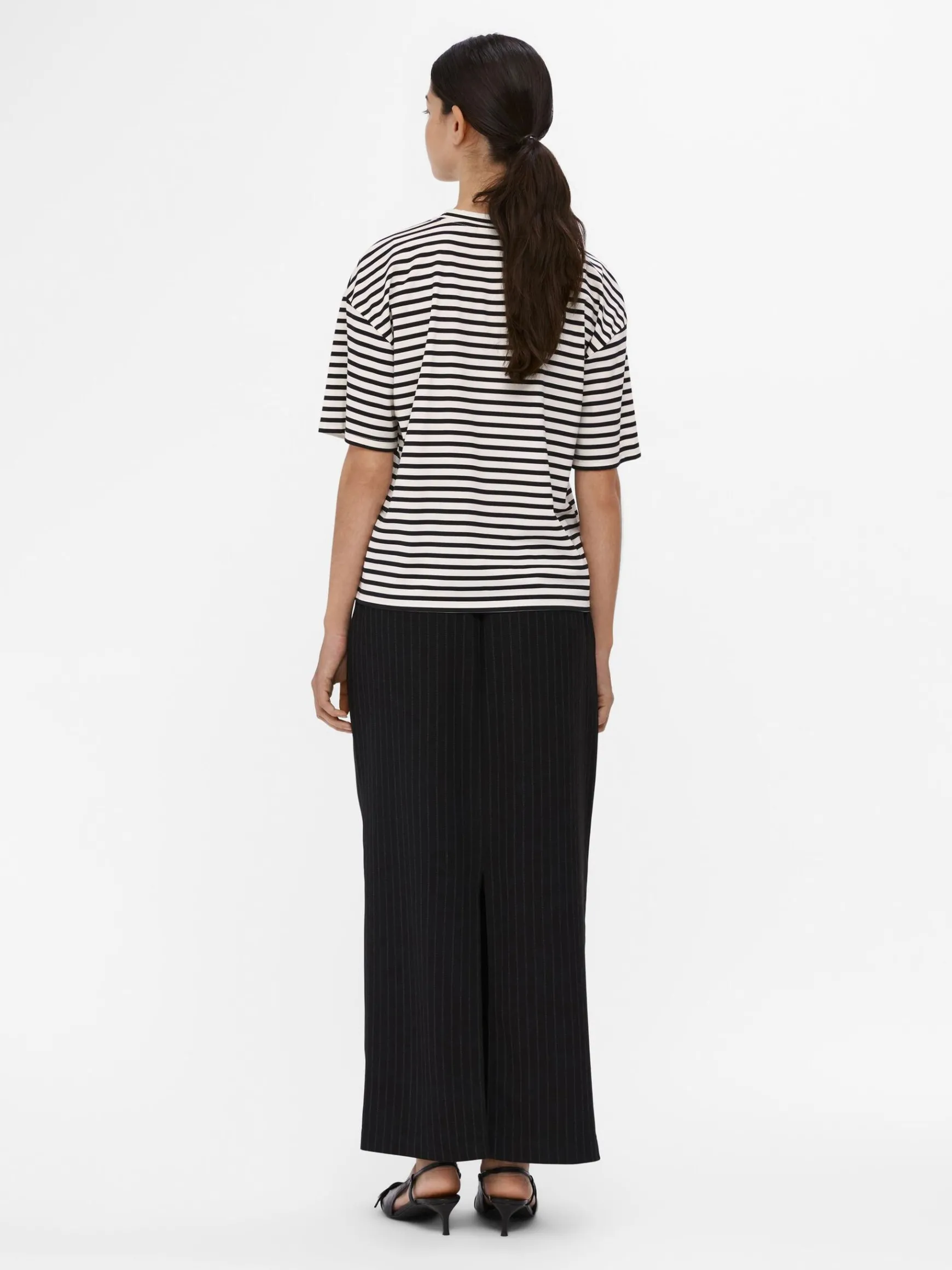 -Oversized stribet T-shirt-Rund halsudskæring-Sænkede skuldre-Korte ærmer-Oversize croppet fit-Lavet med mere ansvarlige materialer
