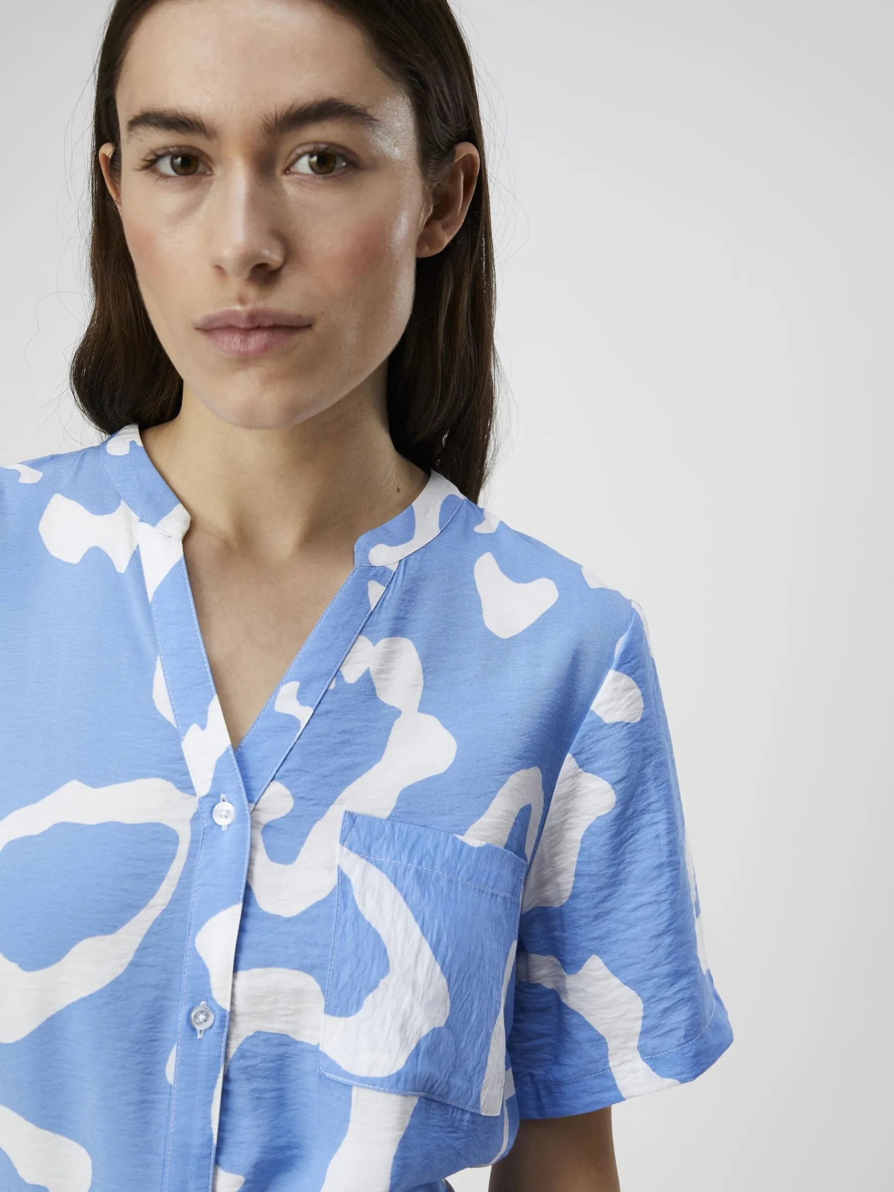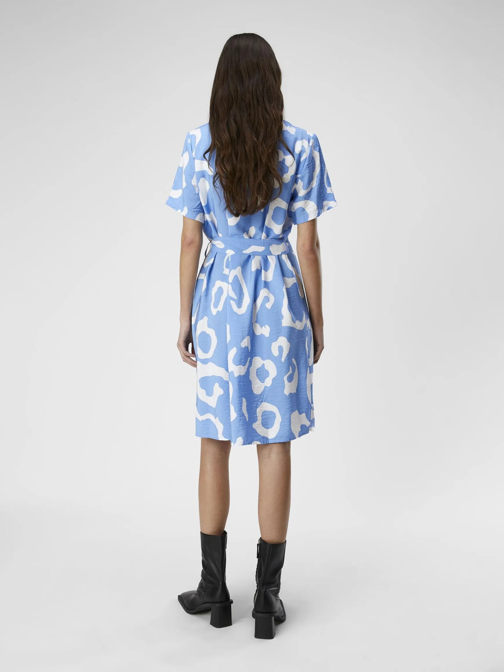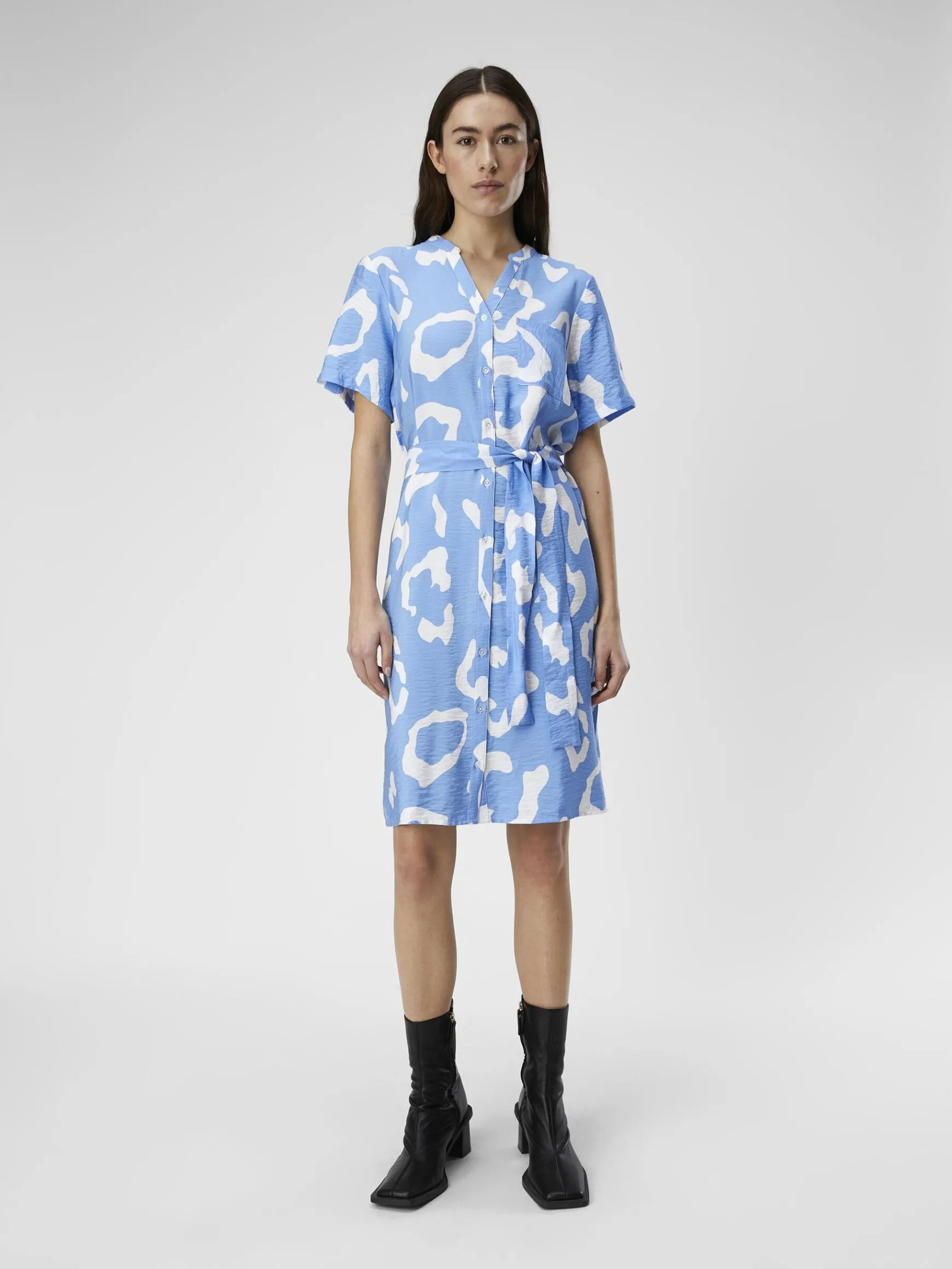 -Printet mini-skjortekjole-V-udskæring med båndet krave-Knappet foran-Bindebælte i taljen-Korte ærmer-Regular fit-La…