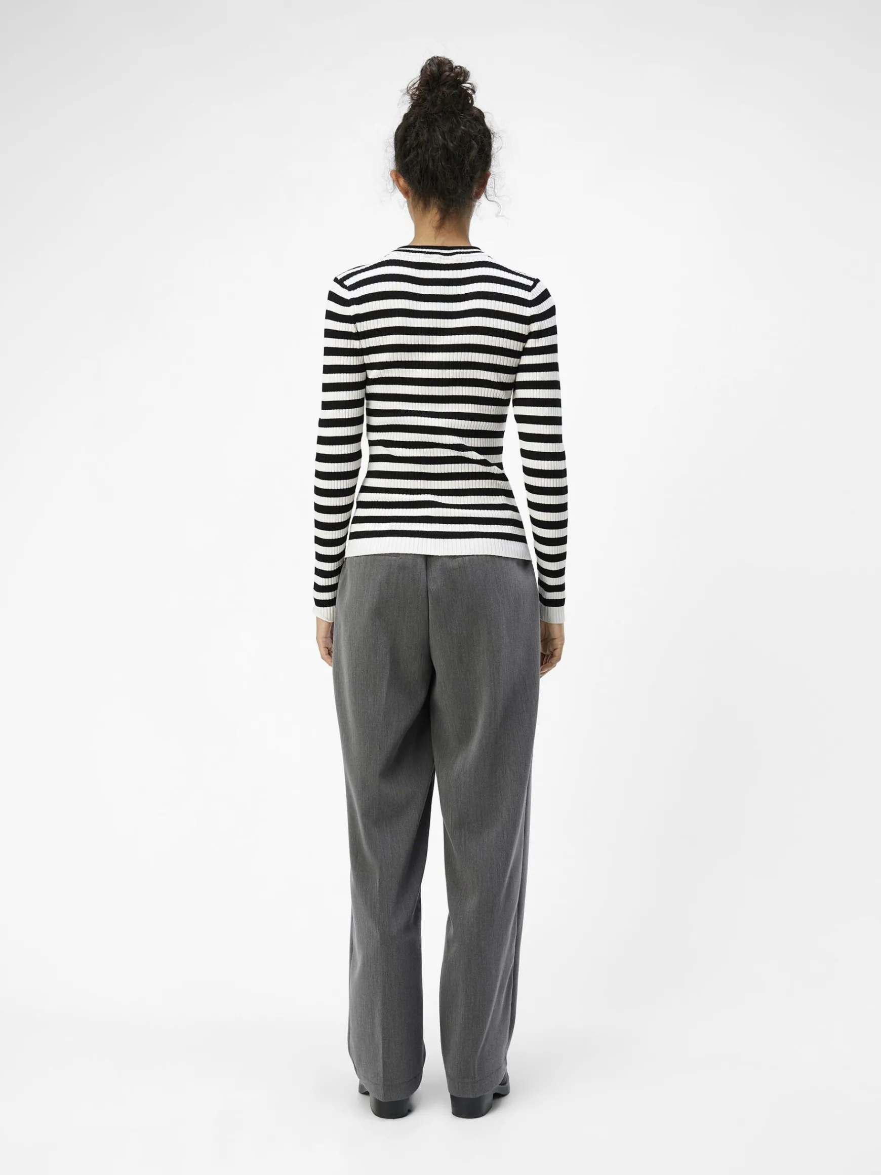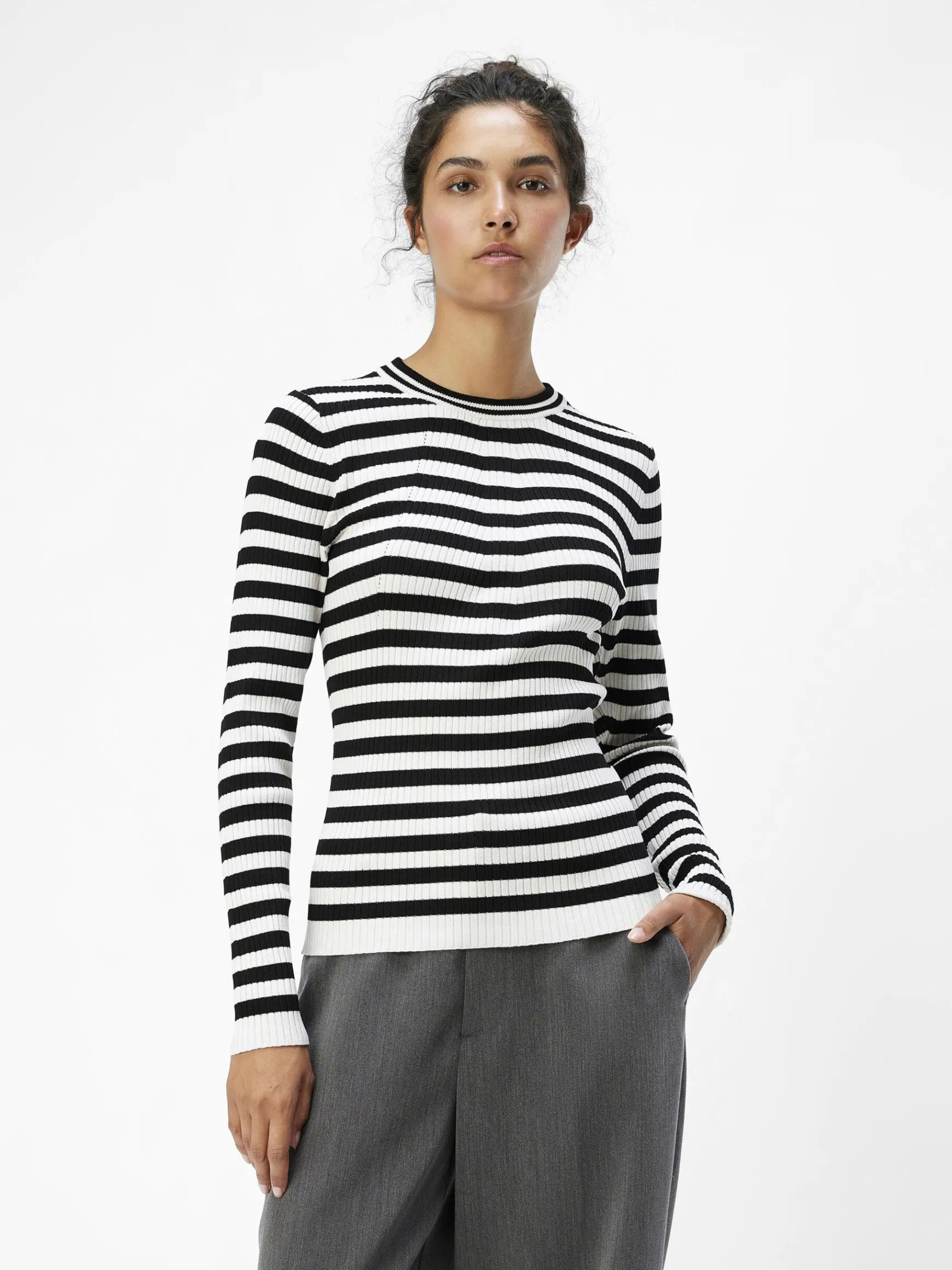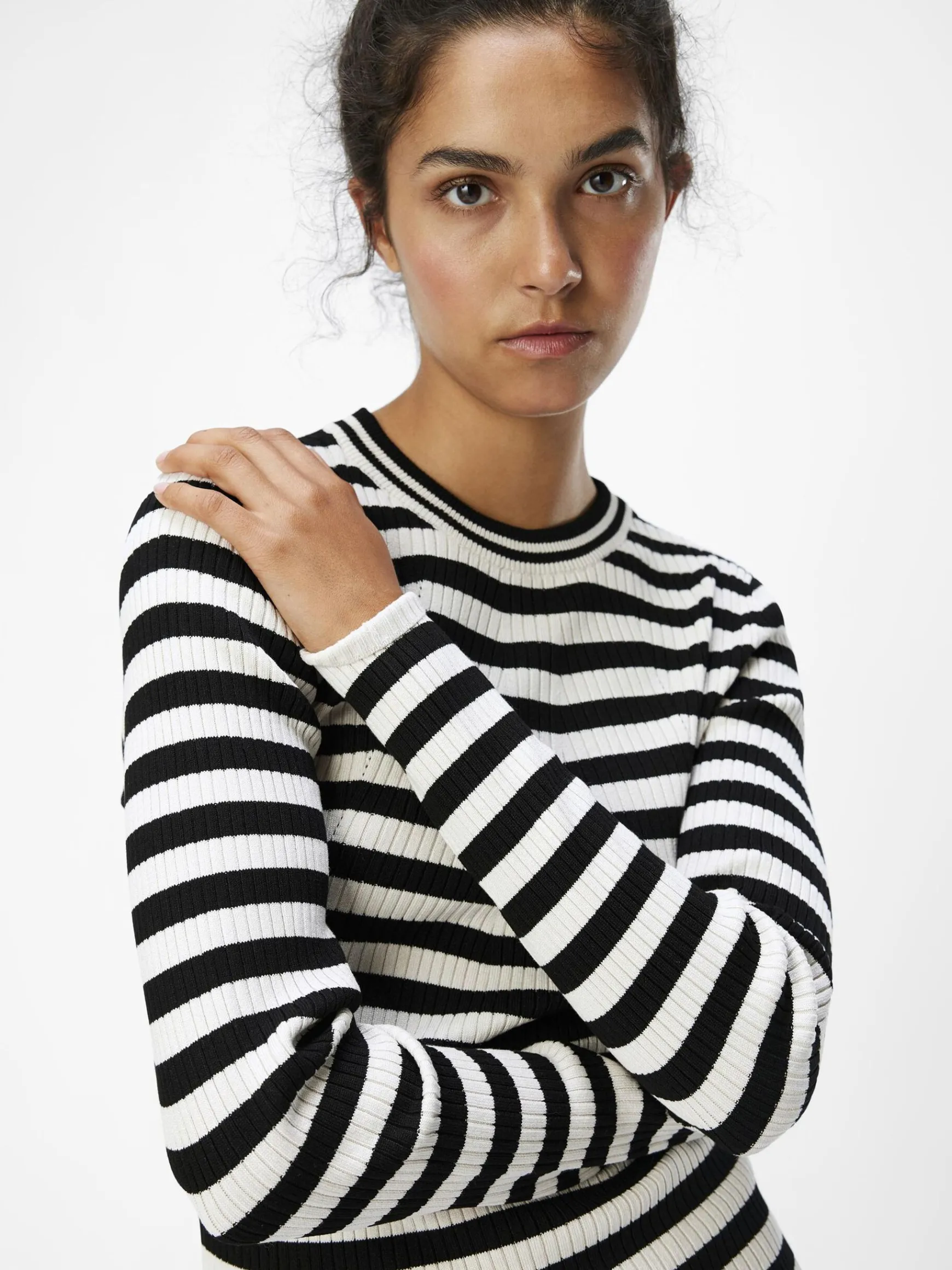 – Ribstrikket trøje- Rund hals- Lange ærmer- Slim fit- Fremstillet med mere ansvarligt stof