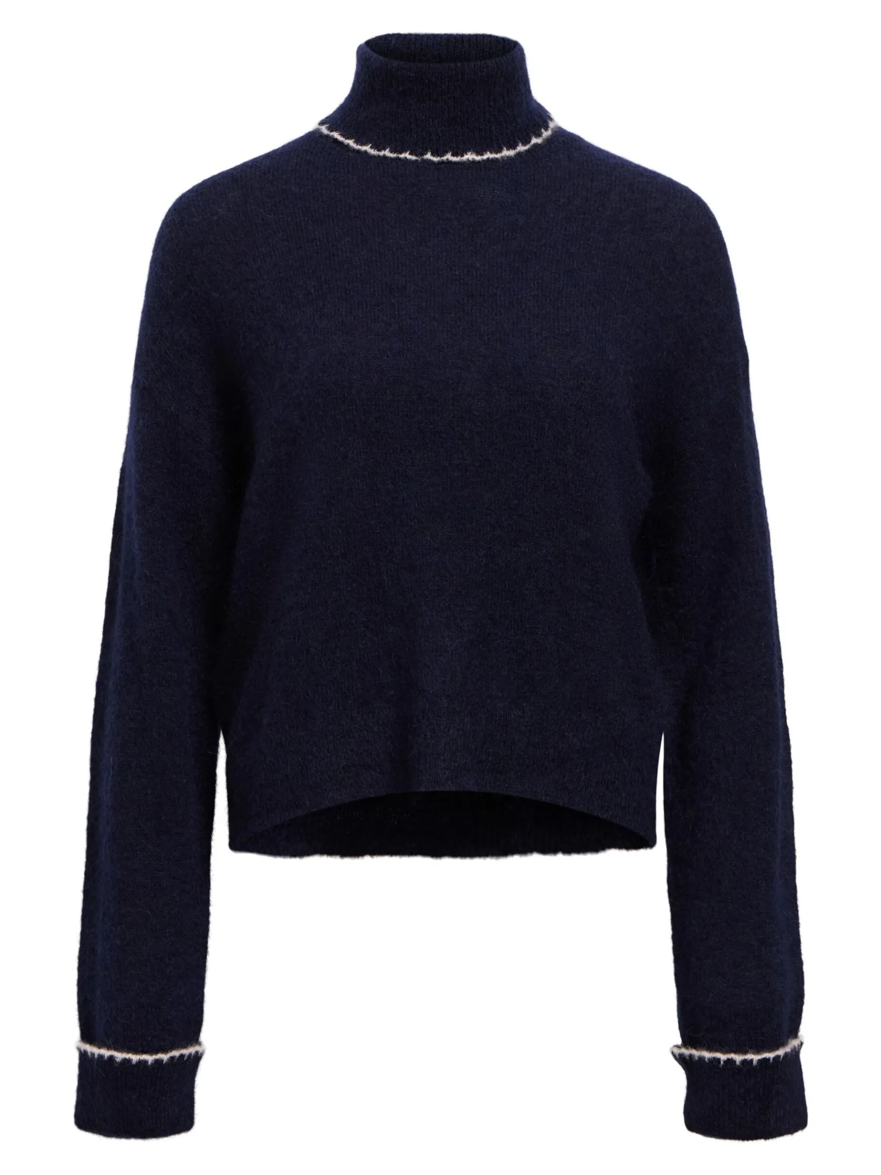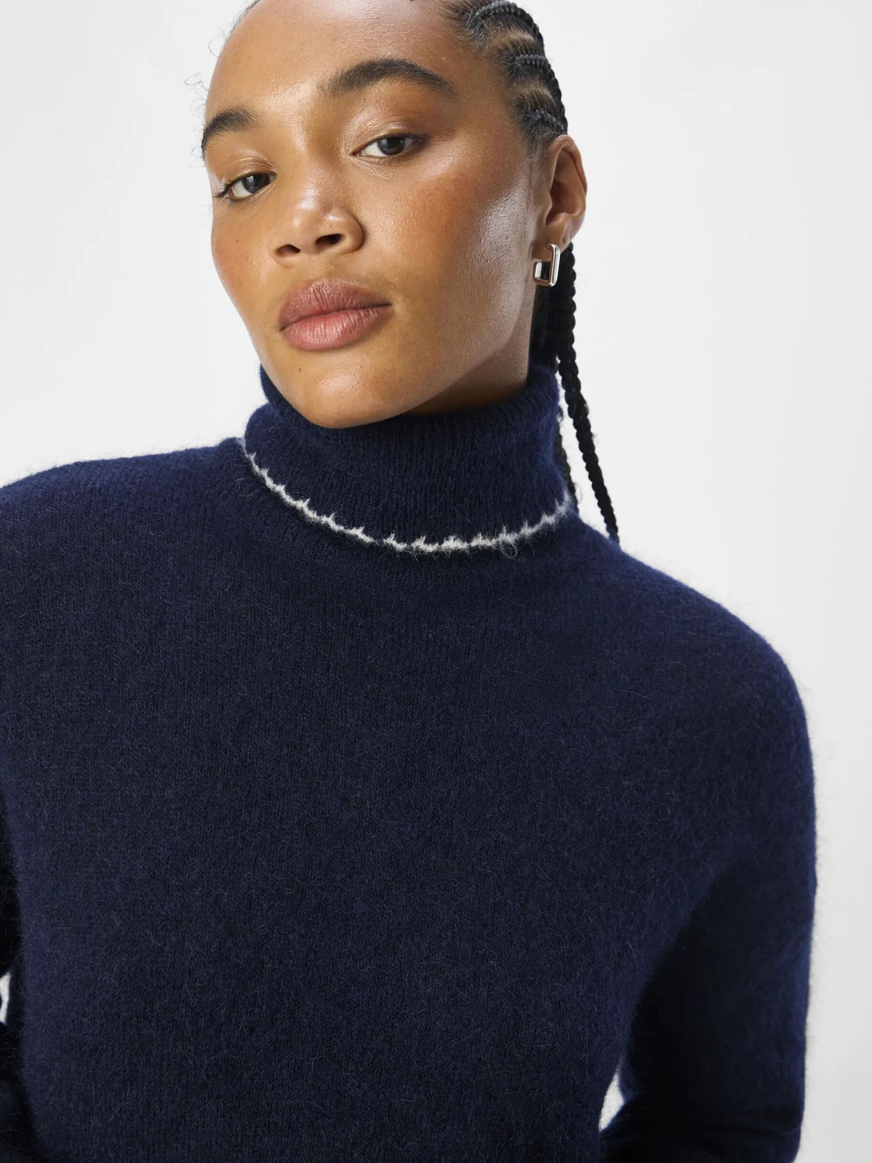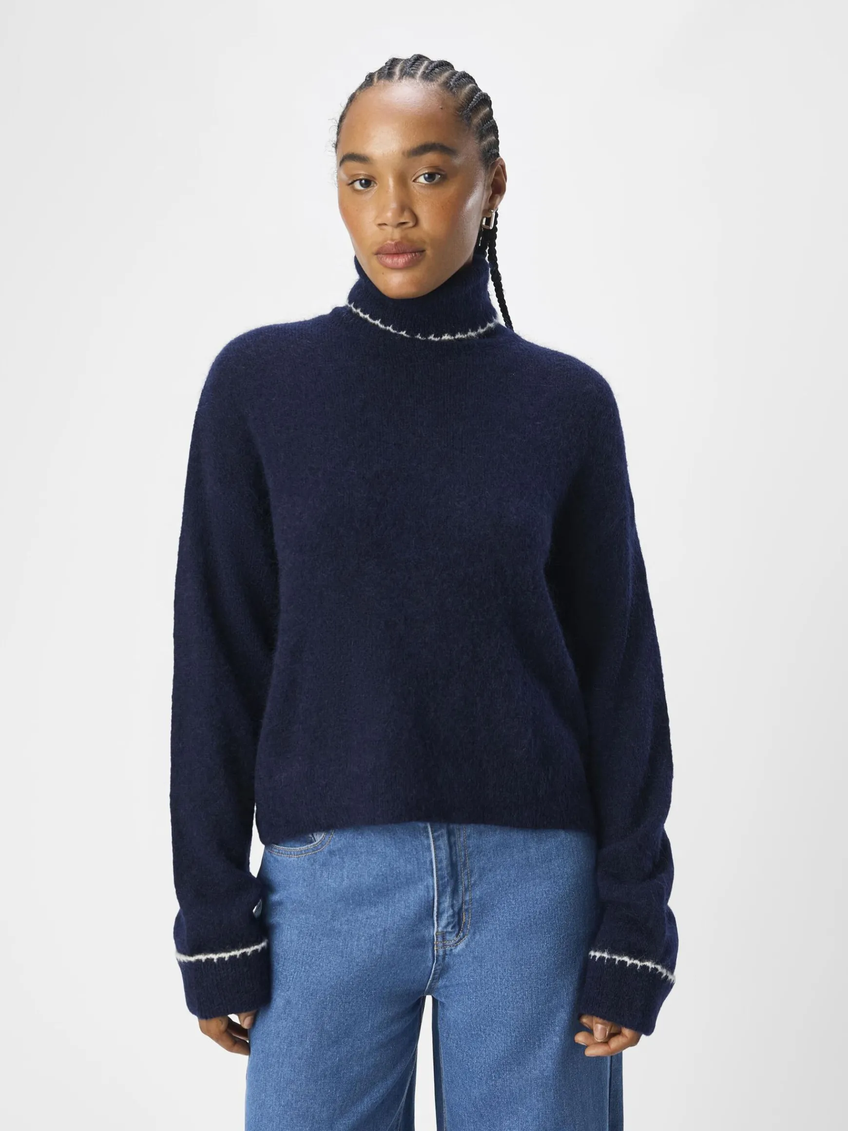 – Meleret trøje med rullekrave- Uld- og mohairblanding- Sænkede skuldre- Lange ærmer- Opsmøgede ærmer- Kontrastkanter- Regular fit
