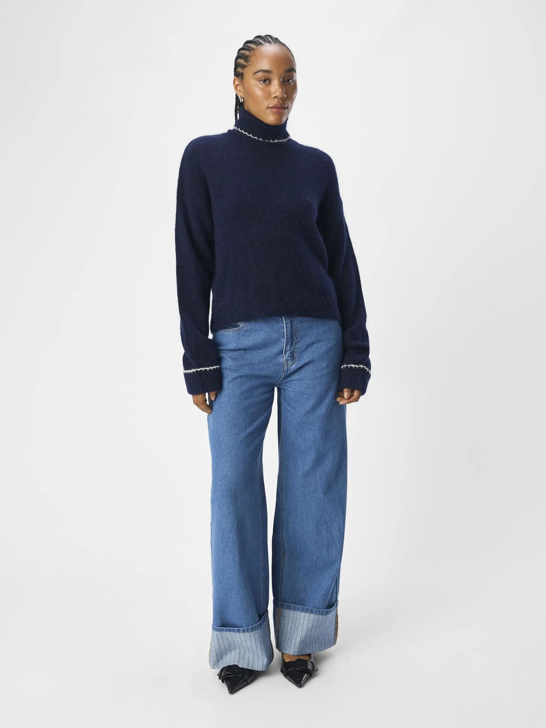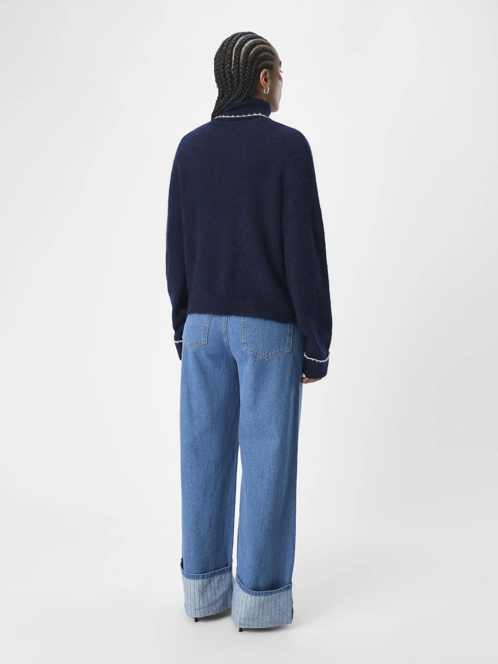 – Meleret trøje med rullekrave- Uld- og mohairblanding- Sænkede skuldre- Lange ærmer- Opsmøgede ærmer- Kontrastkant…