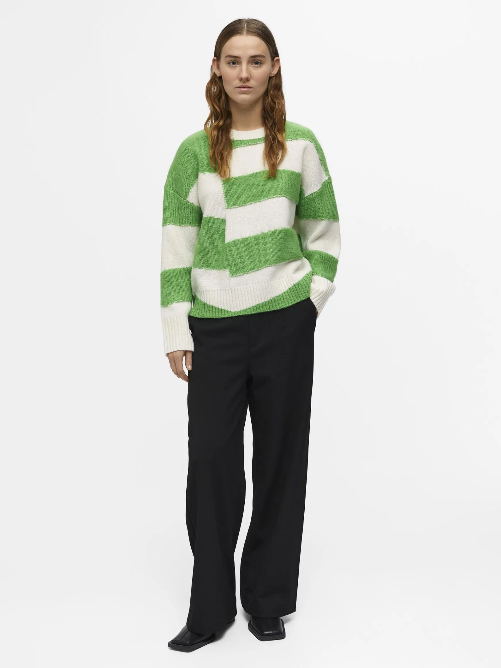 – Stribet trøje i alpacauldblanding- Rund halsudskæring- Lange ærmer med sænkede skuldre- Ribbede kanter- Relaxed fit- Fremstillet med mere ansvarligt stof