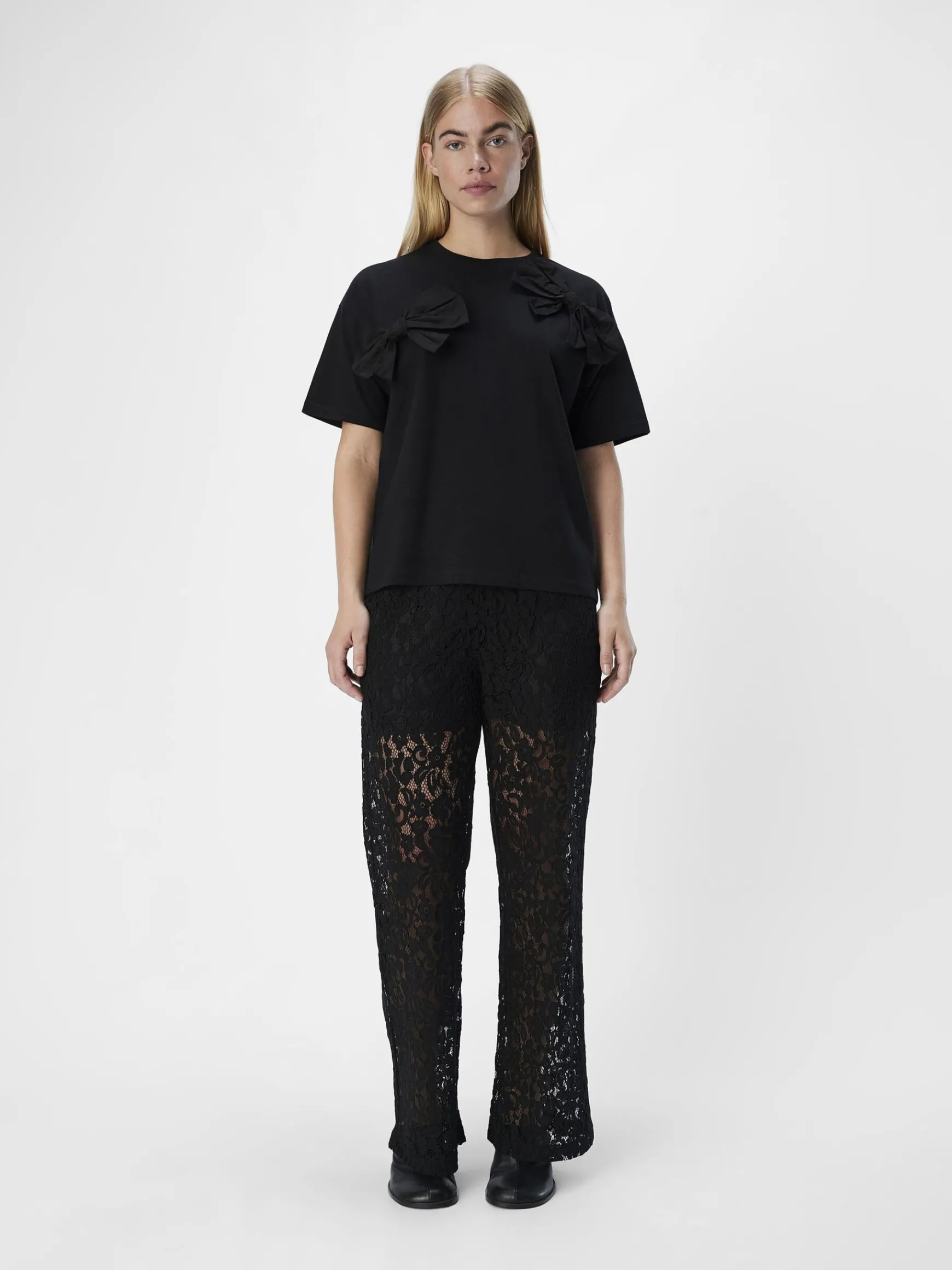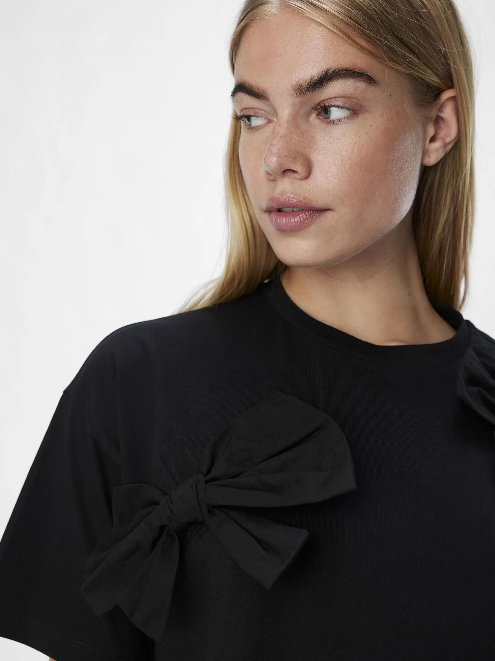 – T-shirt med sløjfedetalje- Rund hals- Korte ærmer- Lave skuldre- Almindelig pasformStylenavn: OBJKLARA