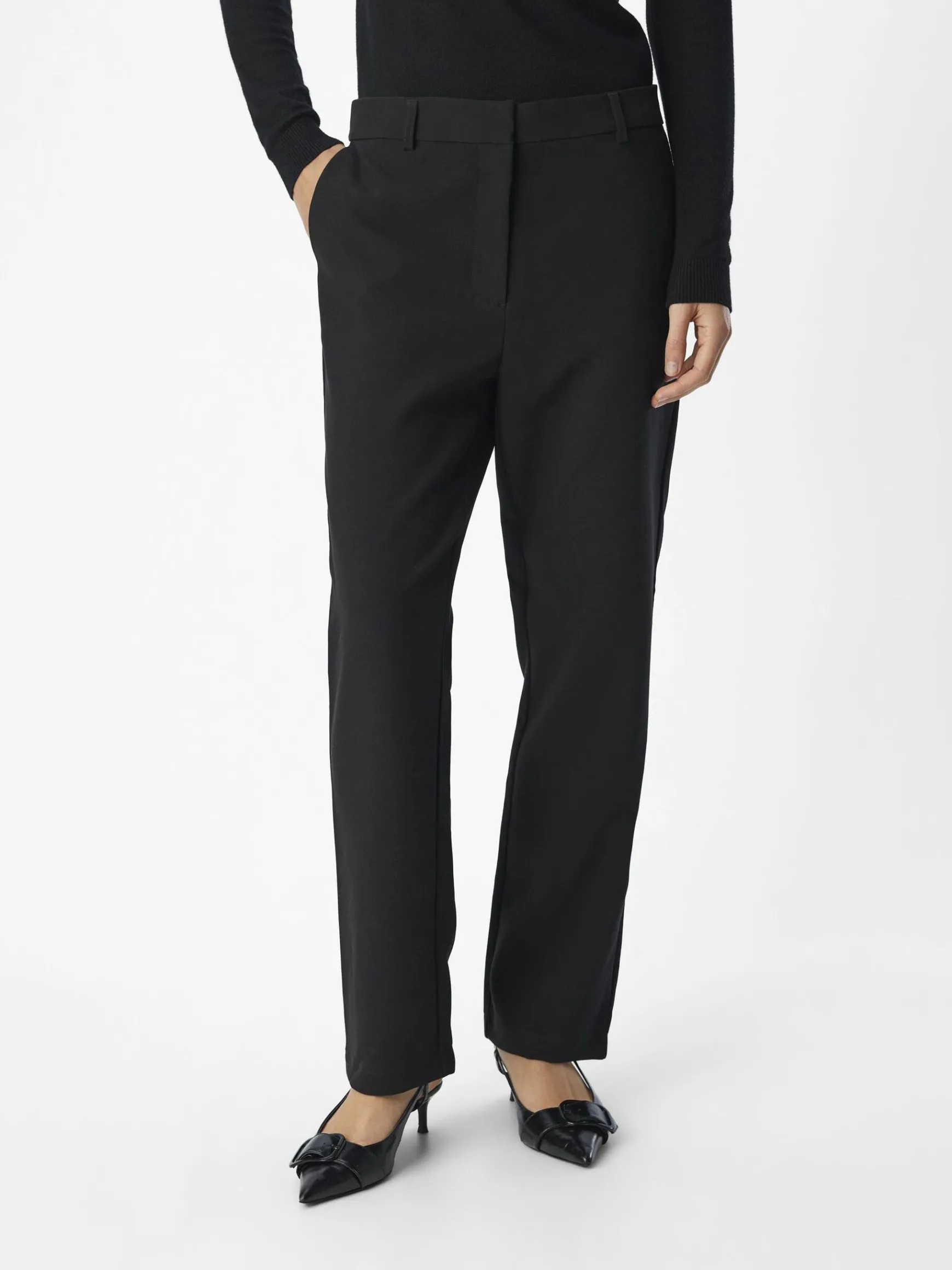 – Højtaljede bukser- Bæltestropper- Lynlås i gylp med off-center knaplukning- Store forlommer- Straight fitINDEHOLDER…